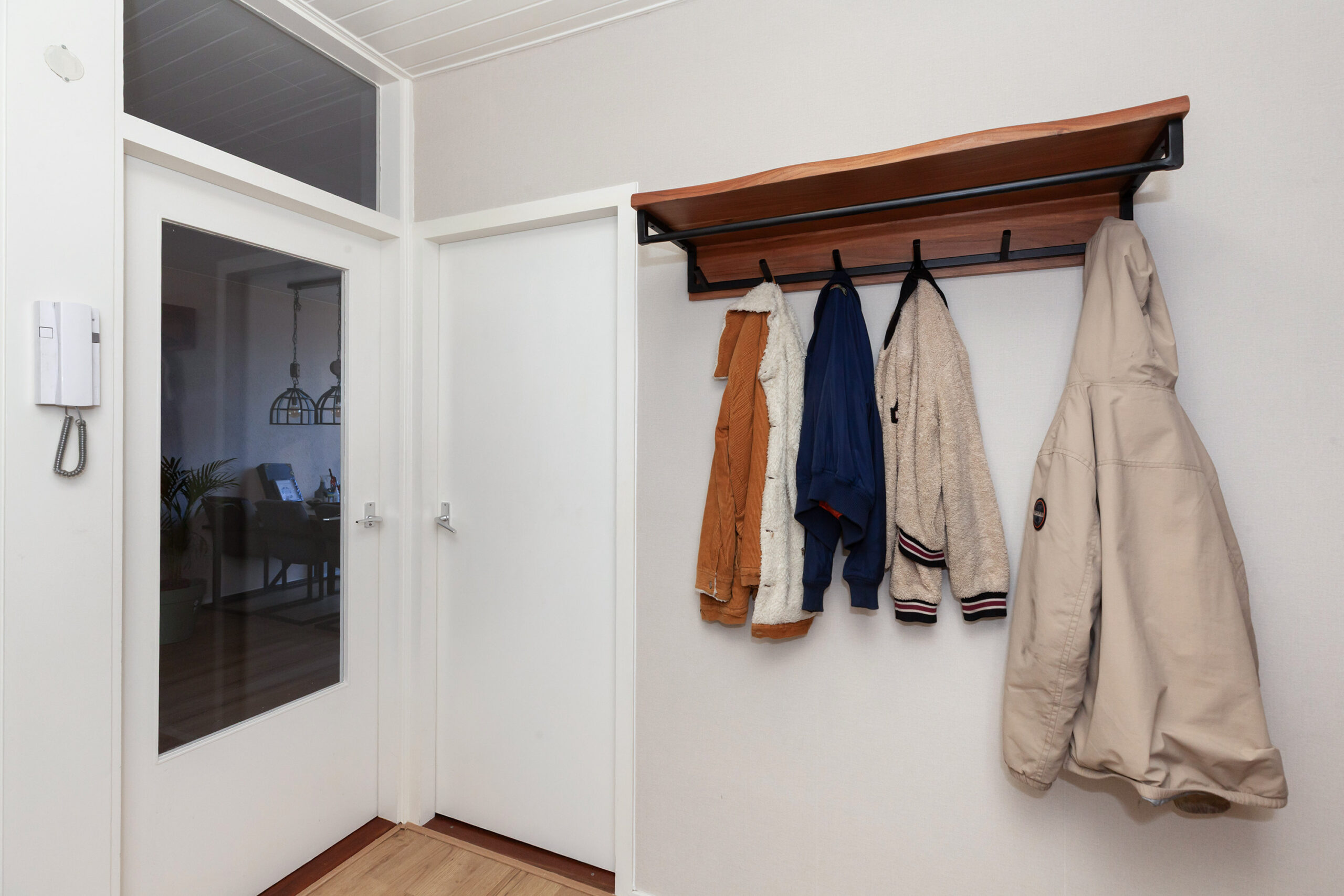 De hal heeft een centrale ligging in het appartement en geeft toegang naar nagenoeg alle vertrekken.