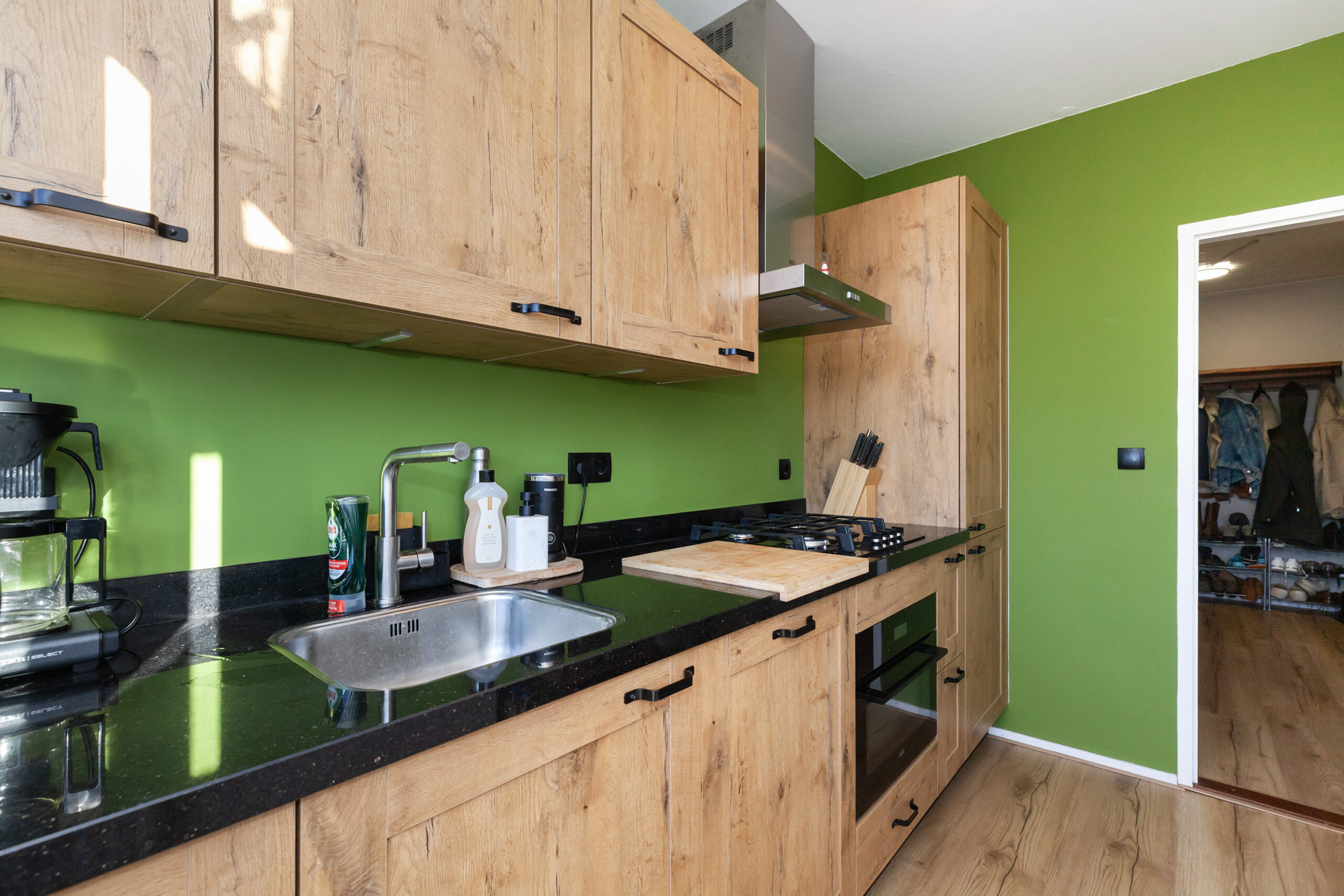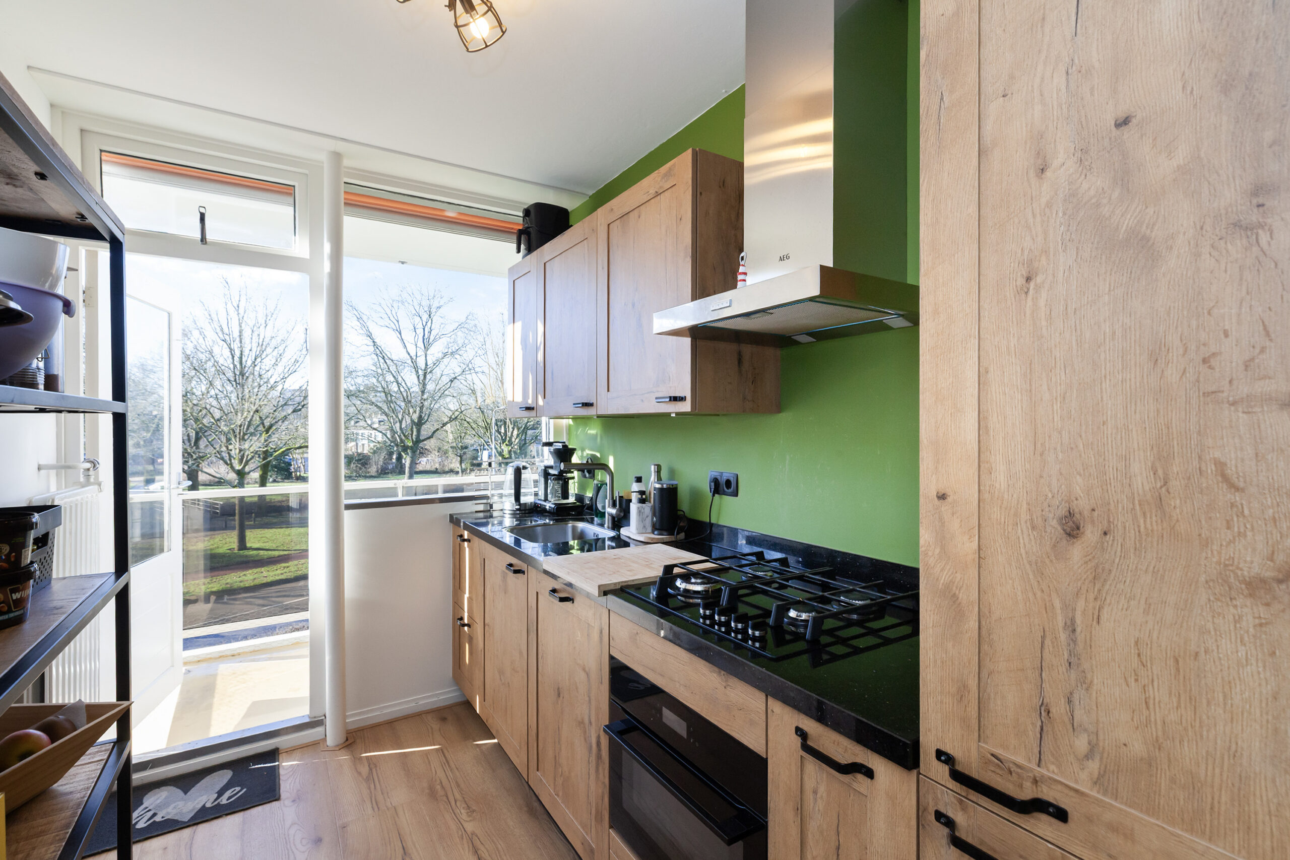 Zoals eerder gezegd is de keuken in 2023 geplaatst en keurig onderhouden. U treft een rechte opstelling met aan inbouwapparatuur een 4-pits gaskookplaat, afzuigkap, vaatwasser, combimagnetron en een koel-/vriescombinatie. Ook vanuit de keuken kunt u naar het balkon.