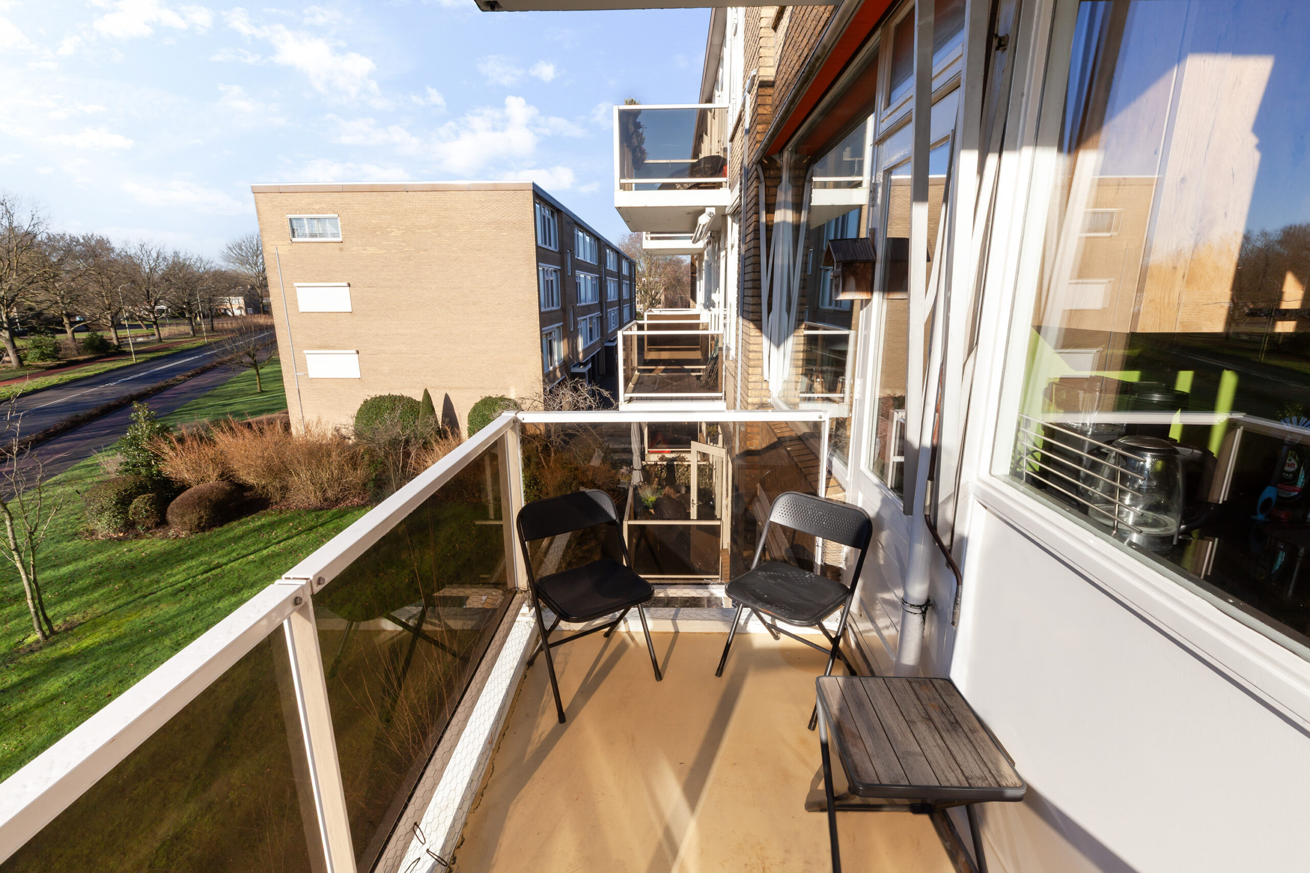 Het balkon van circa 2.97 x 1.51m heeft een zonnige ligging op het zuidwesten. In het vroege voorjaar kunt u al de eerste zonnestralen opvangen hier. In de onderbouw van het complex is er een berging van circa 3.54 x 2.01m.