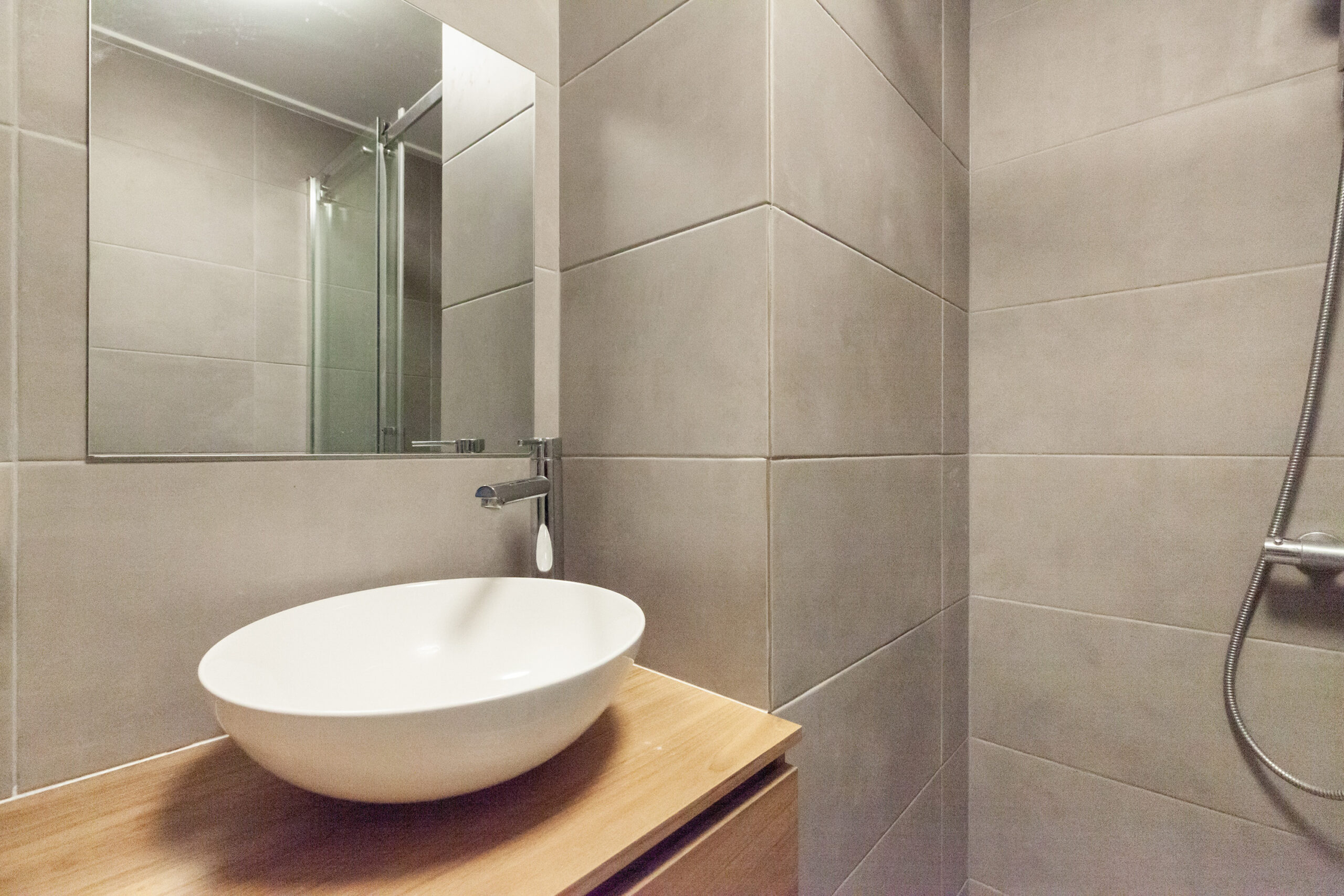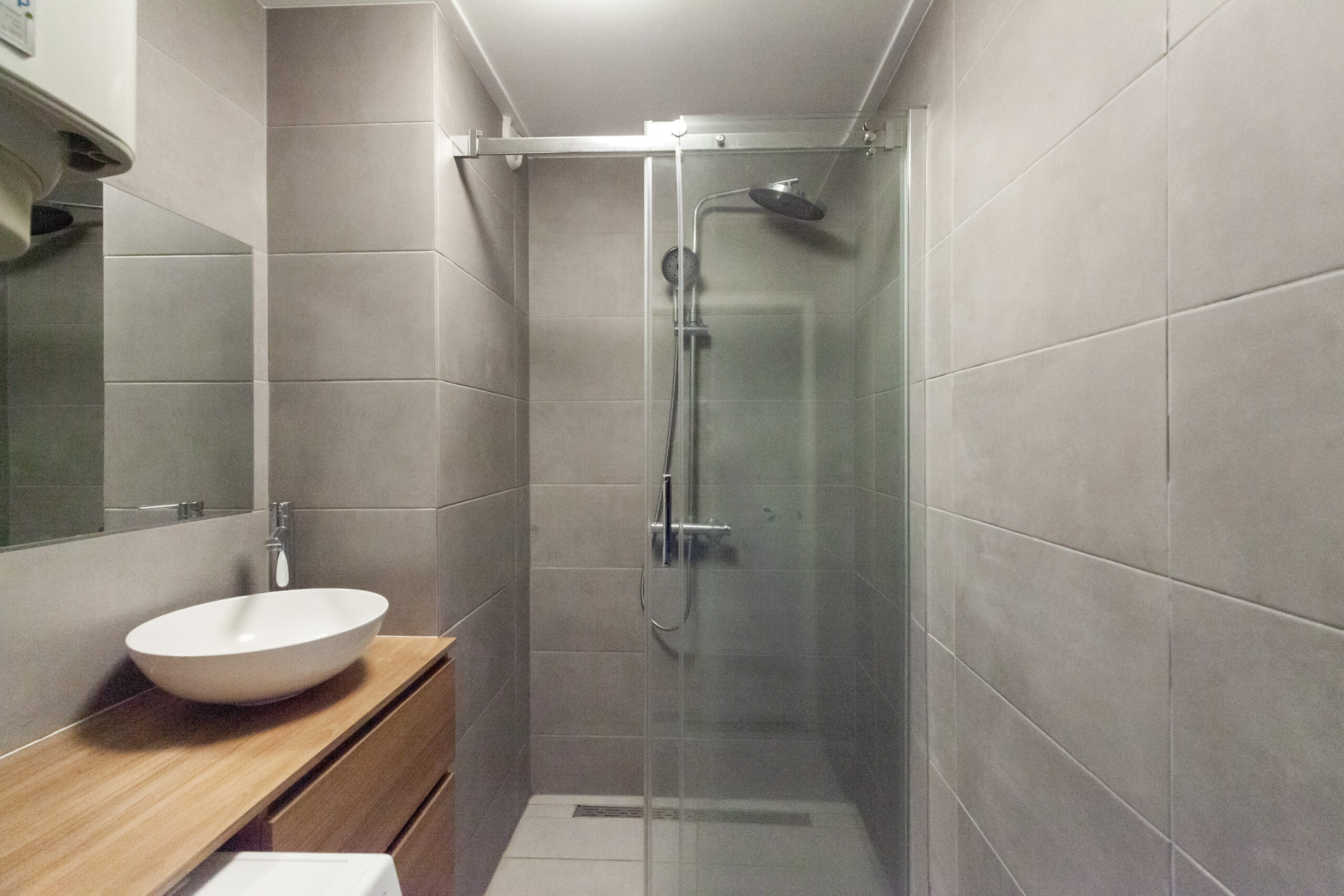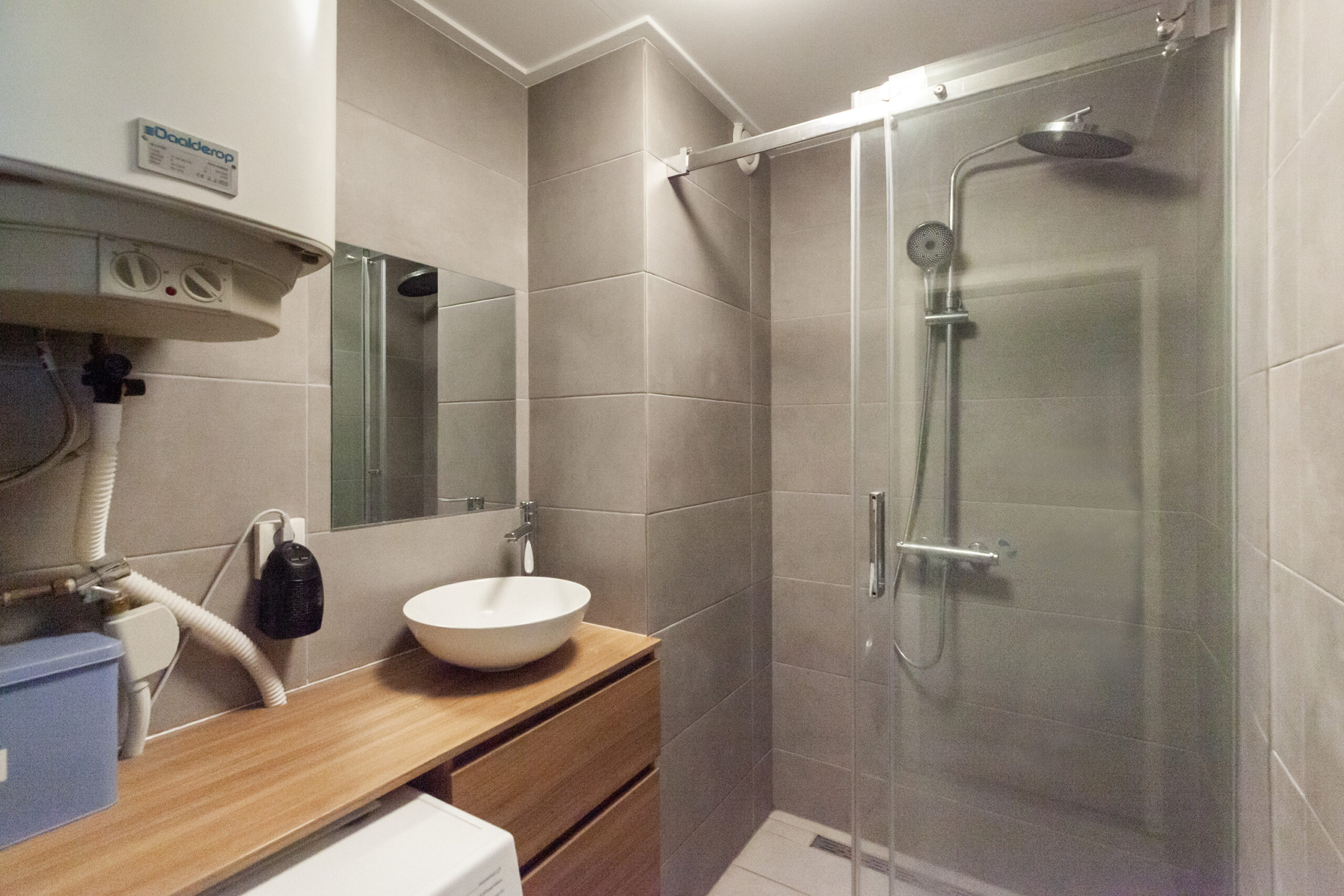 Gelijktijdig met de keuken is ook de badkamer vernieuwd en in een hedendaagse stijl afgewerkt. Er is een inloopdouche, wastafelmeubel en de aansluitingen voor uw wasapparatuur. Daarnaast hangt hier ook de elektrische boiler welke gehuurde wordt van Eneco voor € 15,- per maand.