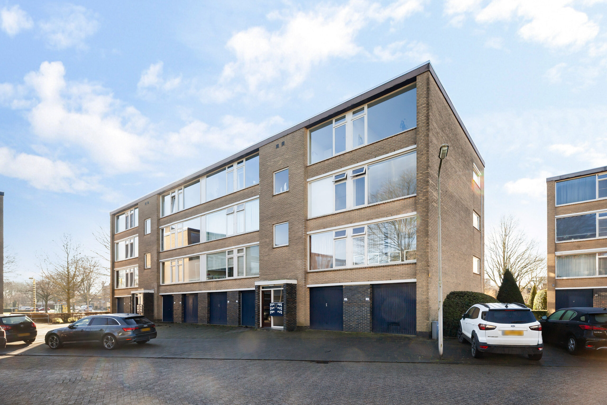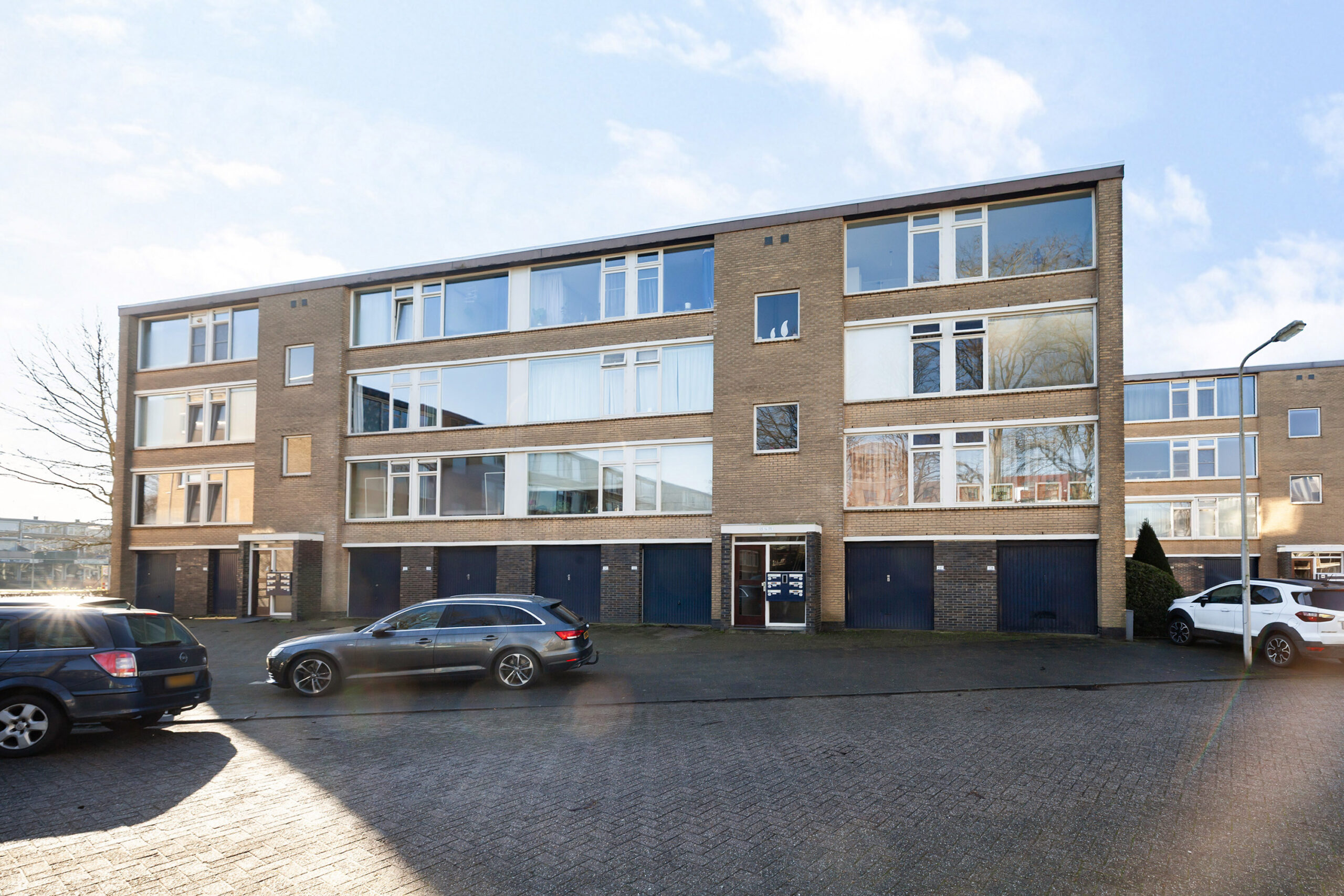 Rondom het complex is er parkeergelegenheid voor de auto. Via de portiek neemt u de trap naar de tweede verdieping. Naast de voordeur heeft u de meterkast.