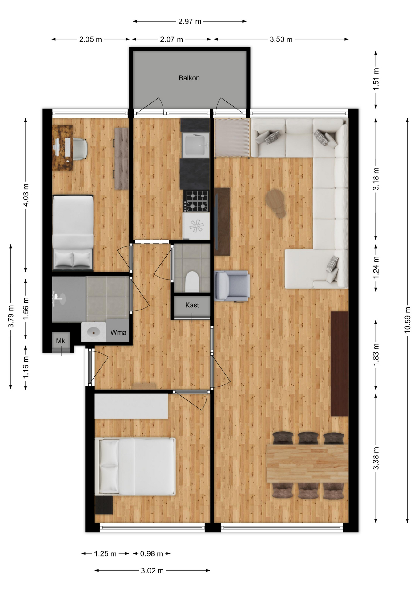 Maatvoering: Circa 10.59 x 3.53m
