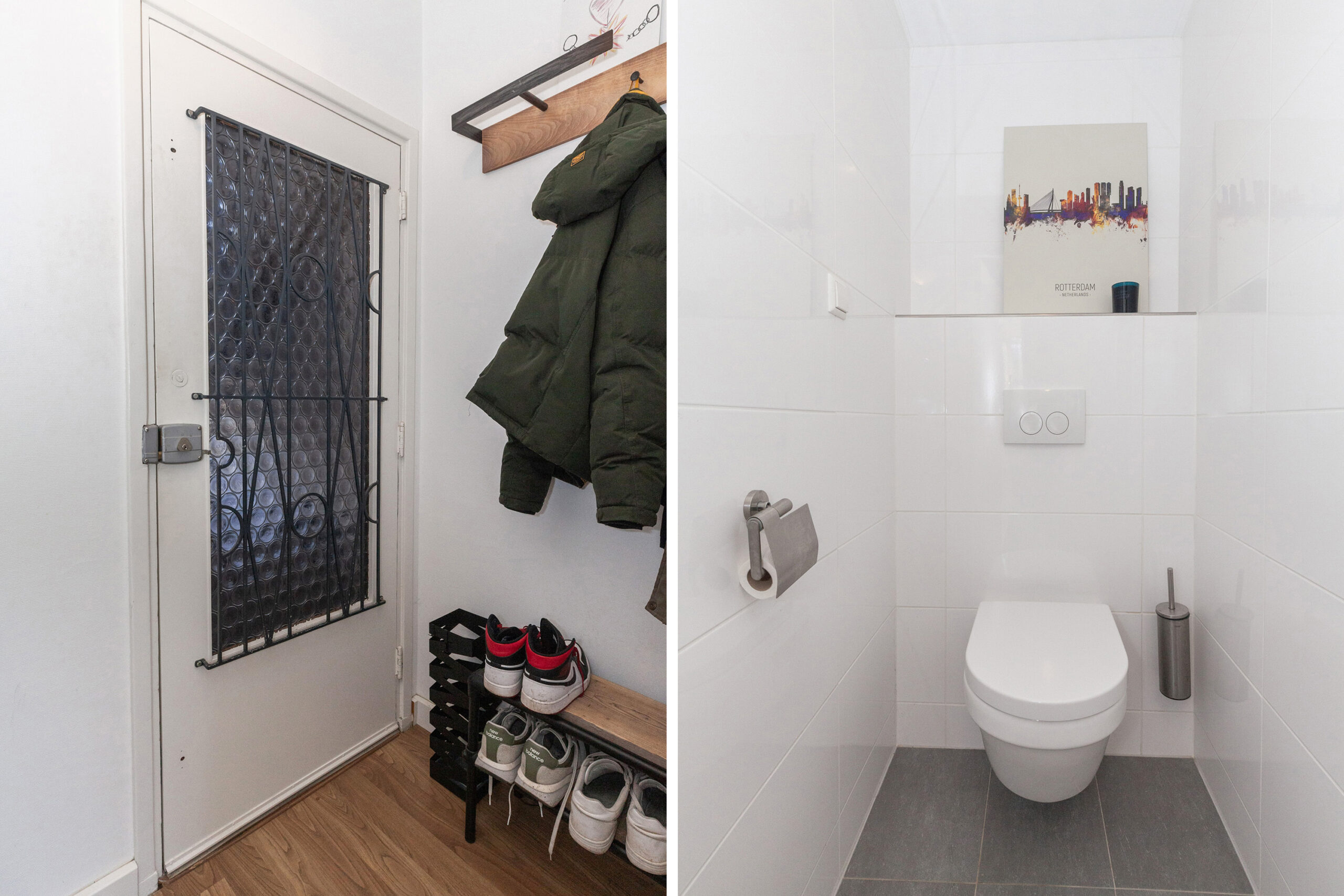 Voor en naast het complex is er parkeergelegenheid voor het parkeren van de auto. Via de afgesloten portiek neemt u de trap naar de eerste verdieping waar de voordeur zich bevindt. Naast de voordeur heeft u de meterkast.