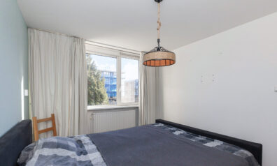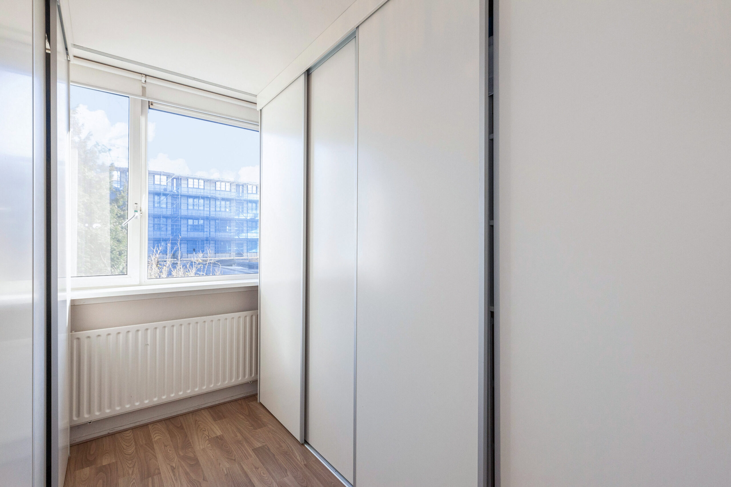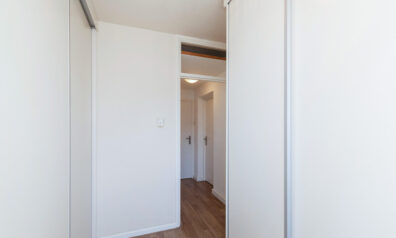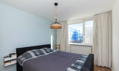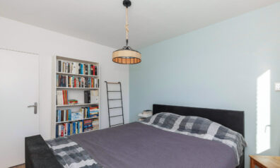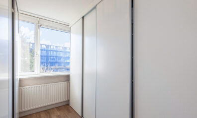 Deze slaapkamer is aan de achterzijde gesitueerd en voorzien van een tweetal grote kasten met schuifdeuren. In één van de kasten zijn de aansluitingen voor uw wasapparatuur.