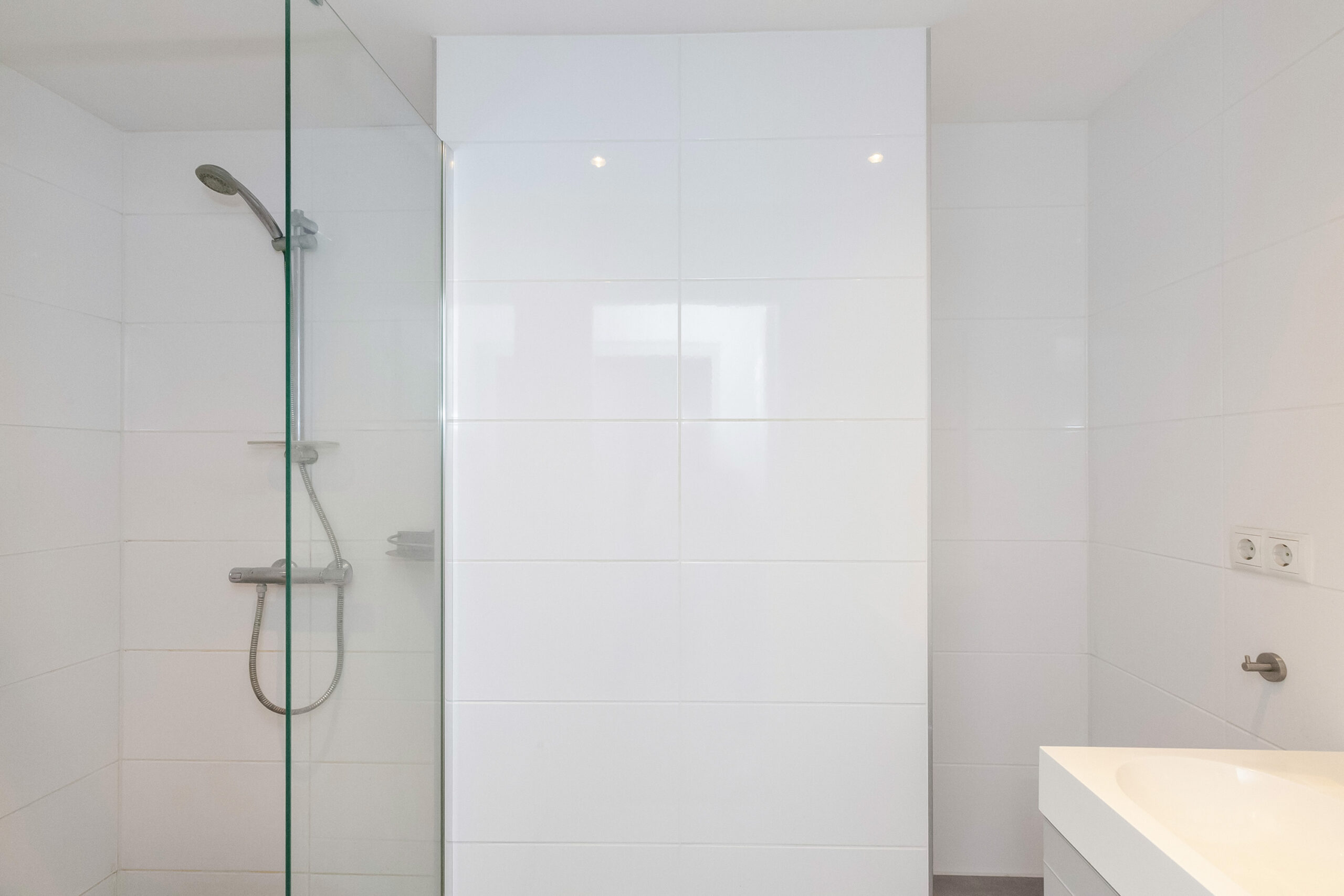 Nette badkamer voorzien van een inloopdouche en een wastafelmeubel.