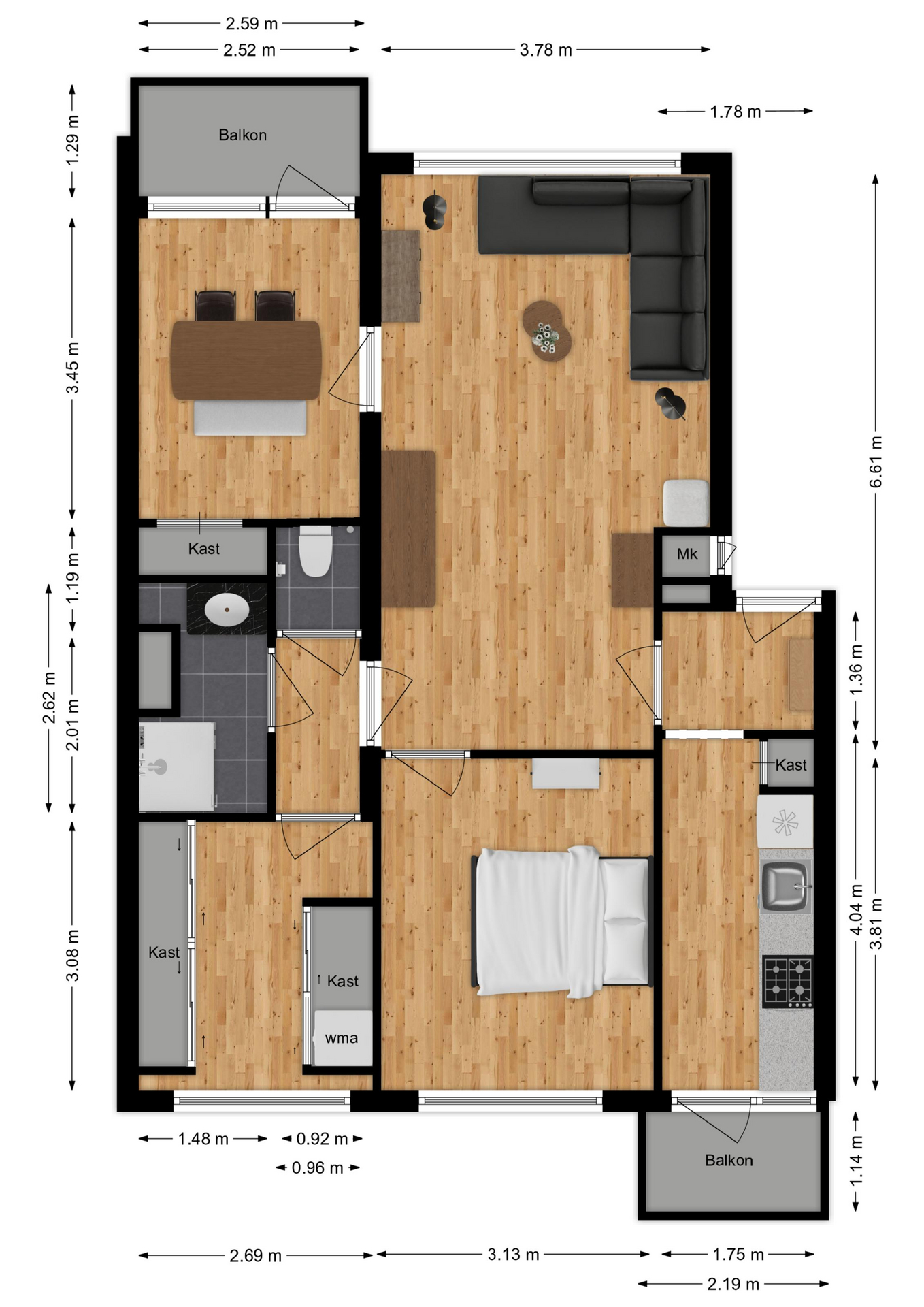 Maatvoering: Circa 6.61 x 3.78/3.13m