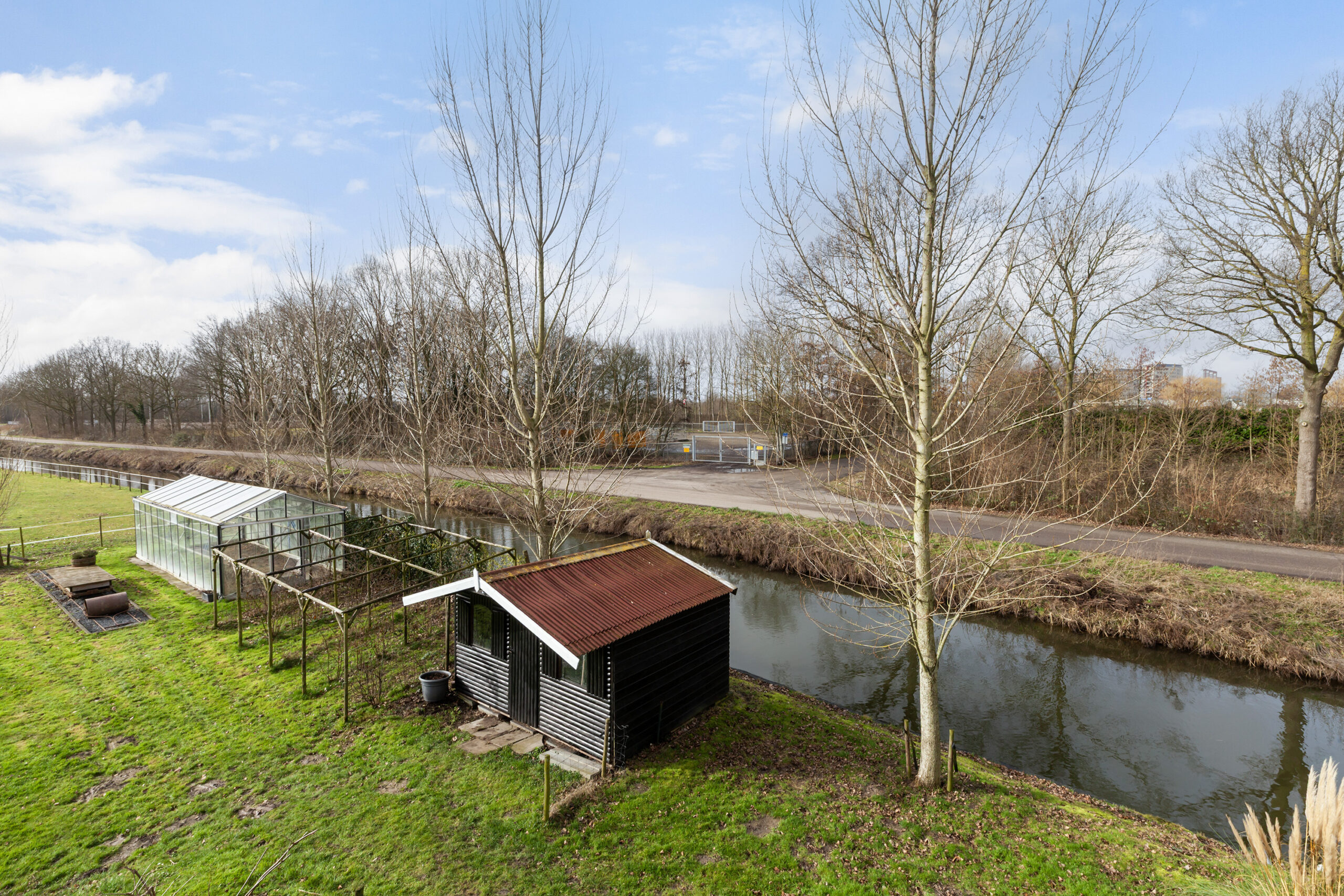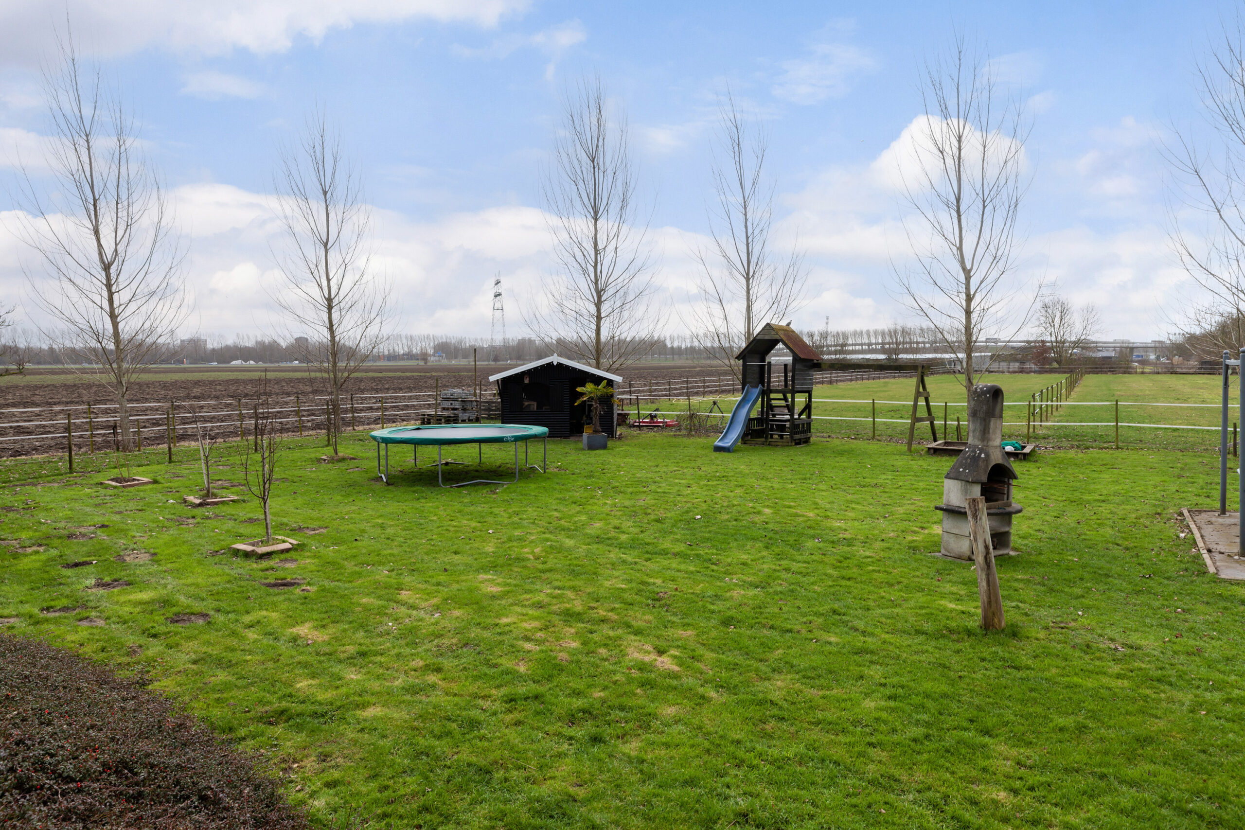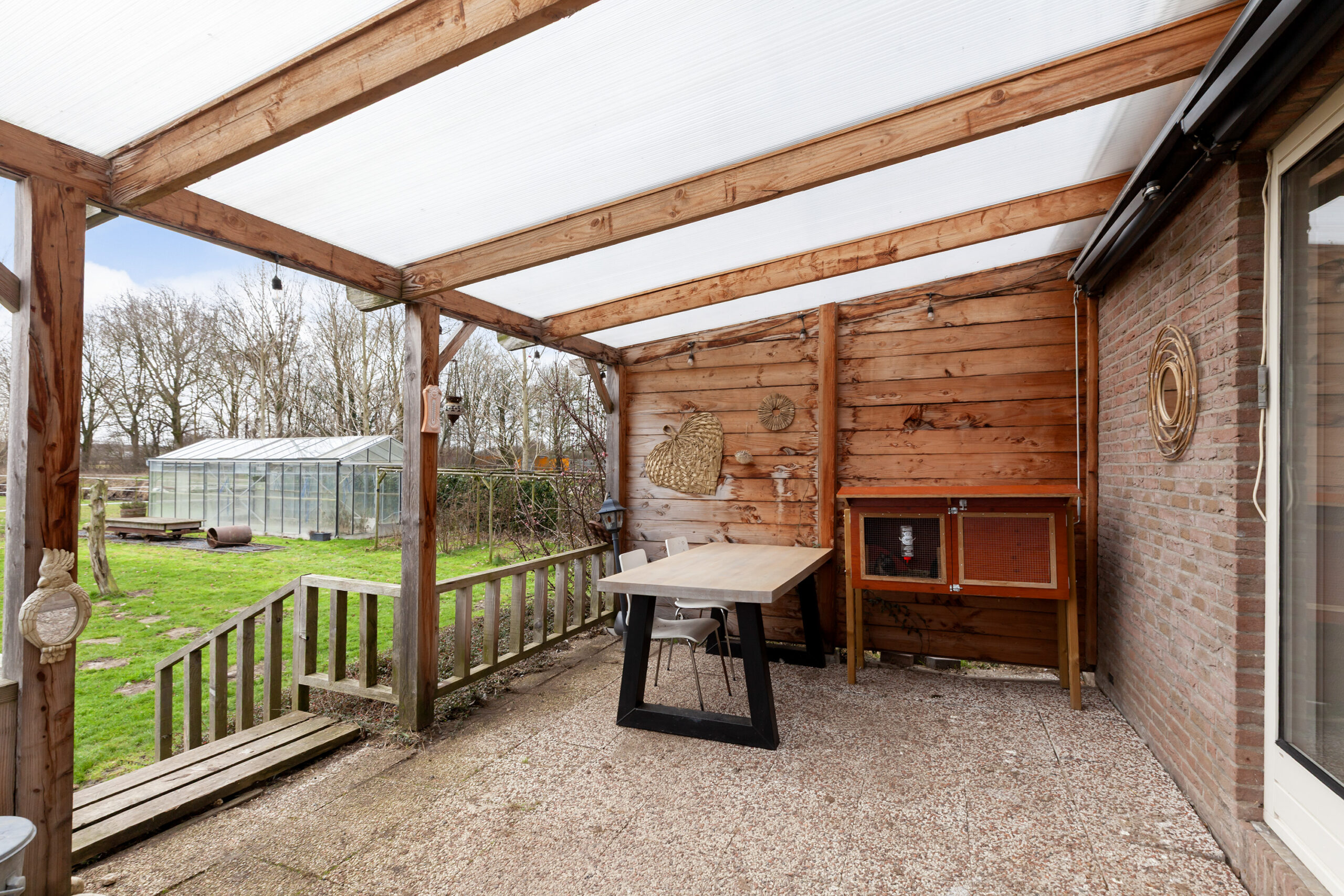 Dan het royale gazon! Dat is toch genieten! Er zijn een tweetal houten bergingen en er staat een leuk prieeltje. Plaats enkele speeltoestellen voor kinderen en u ze zullen met rode wangen van het spelen aan het einde van de dag binnenkomen. Maar luister u zelf eens? Wat een stilte en rust ervaart u hier. De grote tuinkas van circa 9.00 x 3.50m is ter overname en wat dacht u ervan om eigen groenten te kweken?