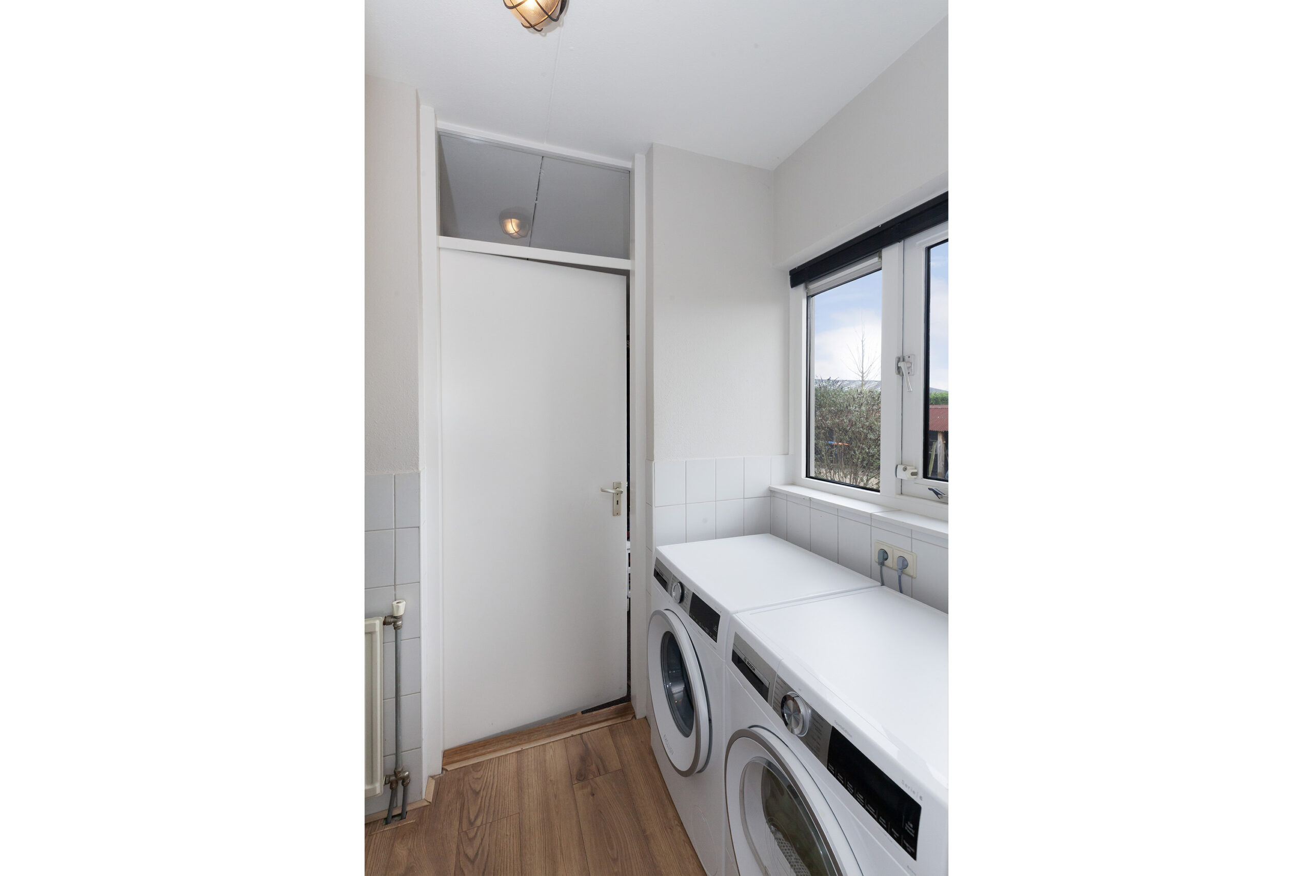 Een bijkeuken is altijd praktisch, deze zorgt voor een verbinding tussen de garage en de keuken. U heeft hier de aansluitingen voor uw wasapparatuur.