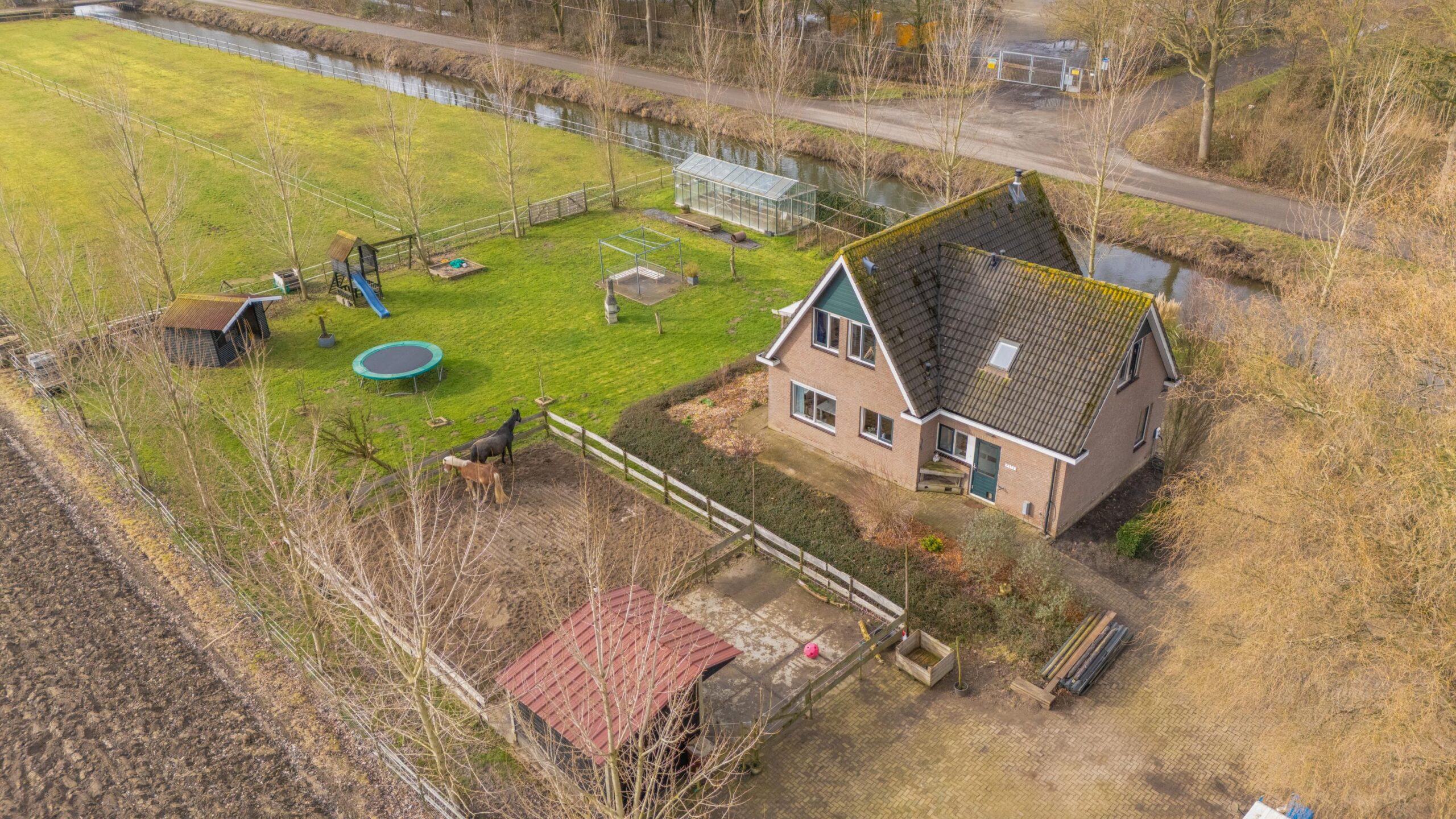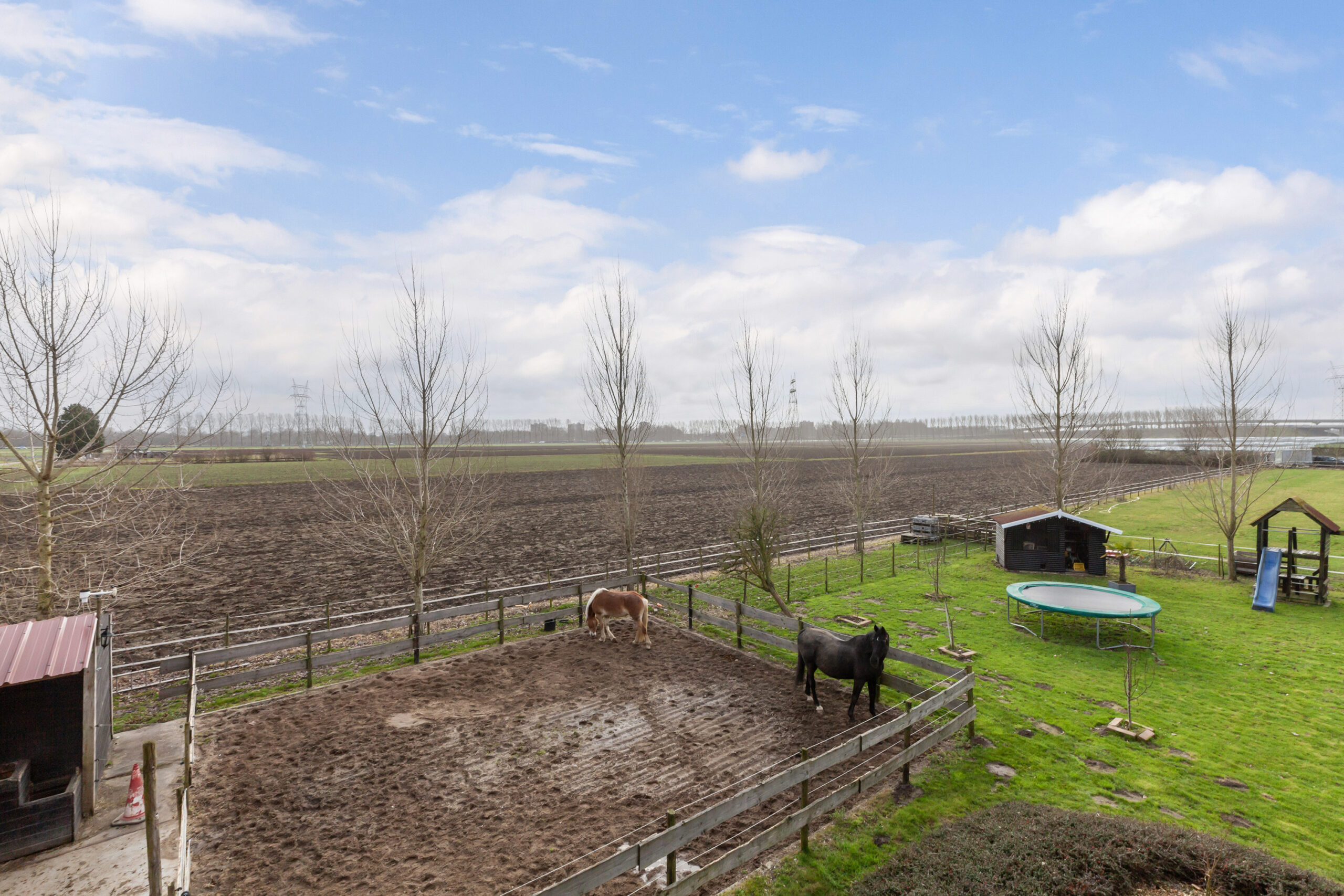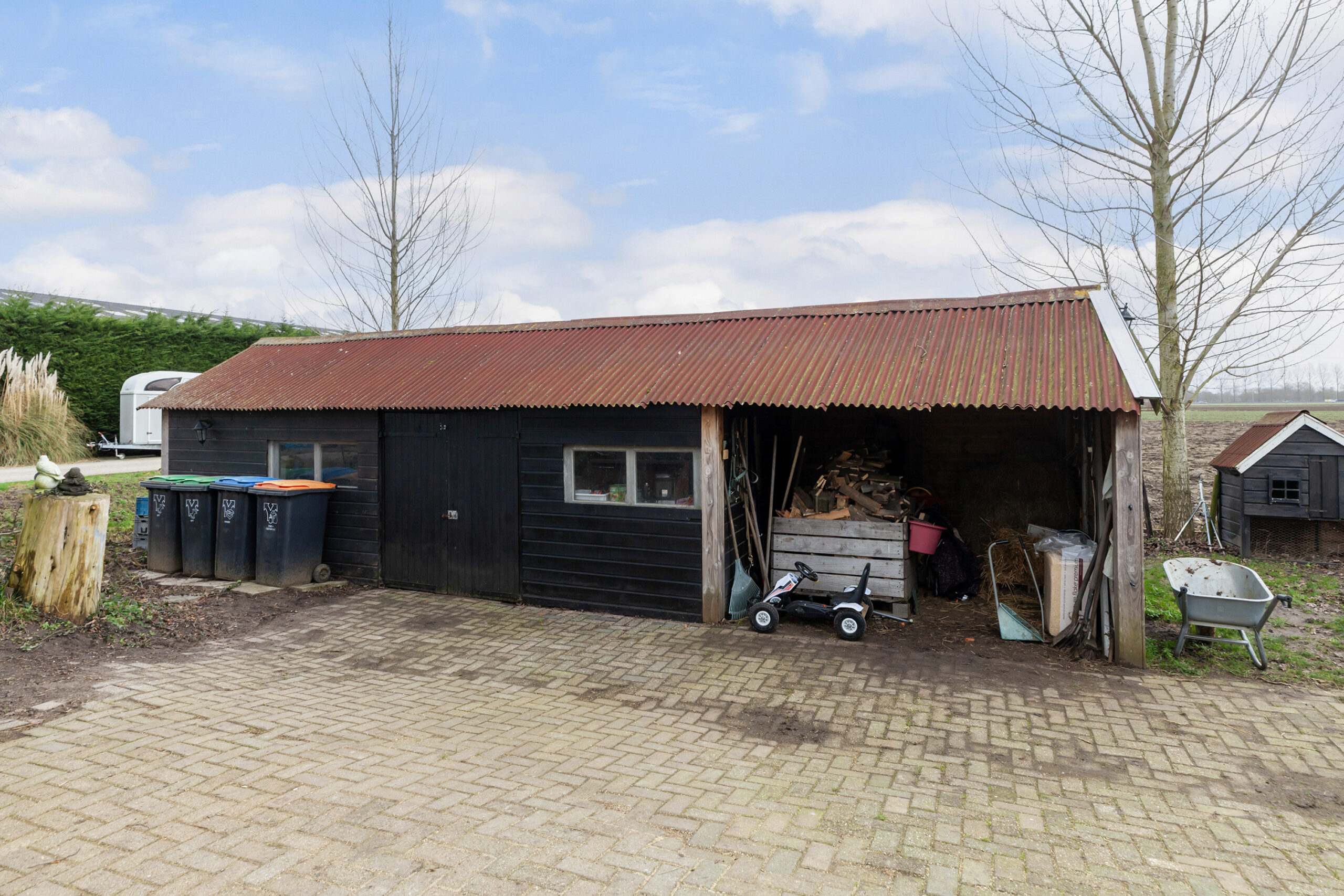Allereerst ziet u de grote stenen berging van circa 7.15 x 3.10m met een overkapping ernaast. Daarbij heeft u ook de paddock waar uw paarden heerlijk buiten kunnen zijn. Ook is er een stal voorzien van stroom en verlichting ter grootte van 4.00 x 3.00m.