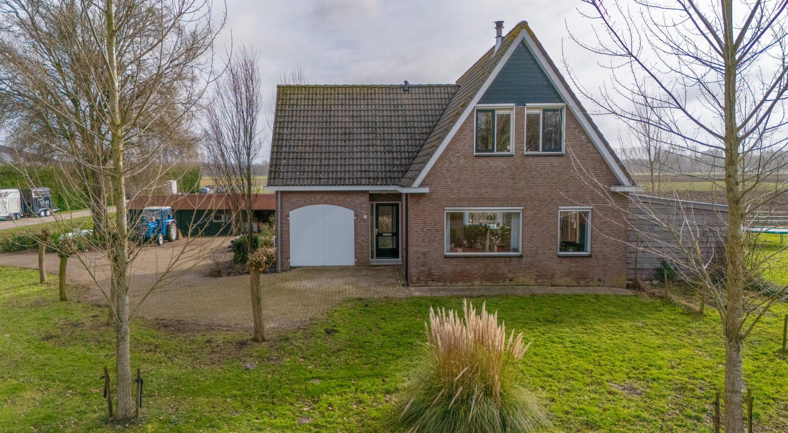 Aan de voorzijde van de woning is de voordeur, maar waarschijnlijk zult u deze weinig gebruiken en gaat u en uw gasten als snel achterom via de garage.