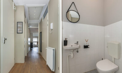 Komt u mee, binnen een kijkje nemen? Via de voordeur stapt u in deze ruime hal. Aan de linkerzijde heeft u de toiletruimte, meterkast en toegang tot de woonkamer. De wasruimte, badkamer en slaapkamer bevinden zich aan de andere zijde. Met de vlizotrap komt u op de royale bergzolder.