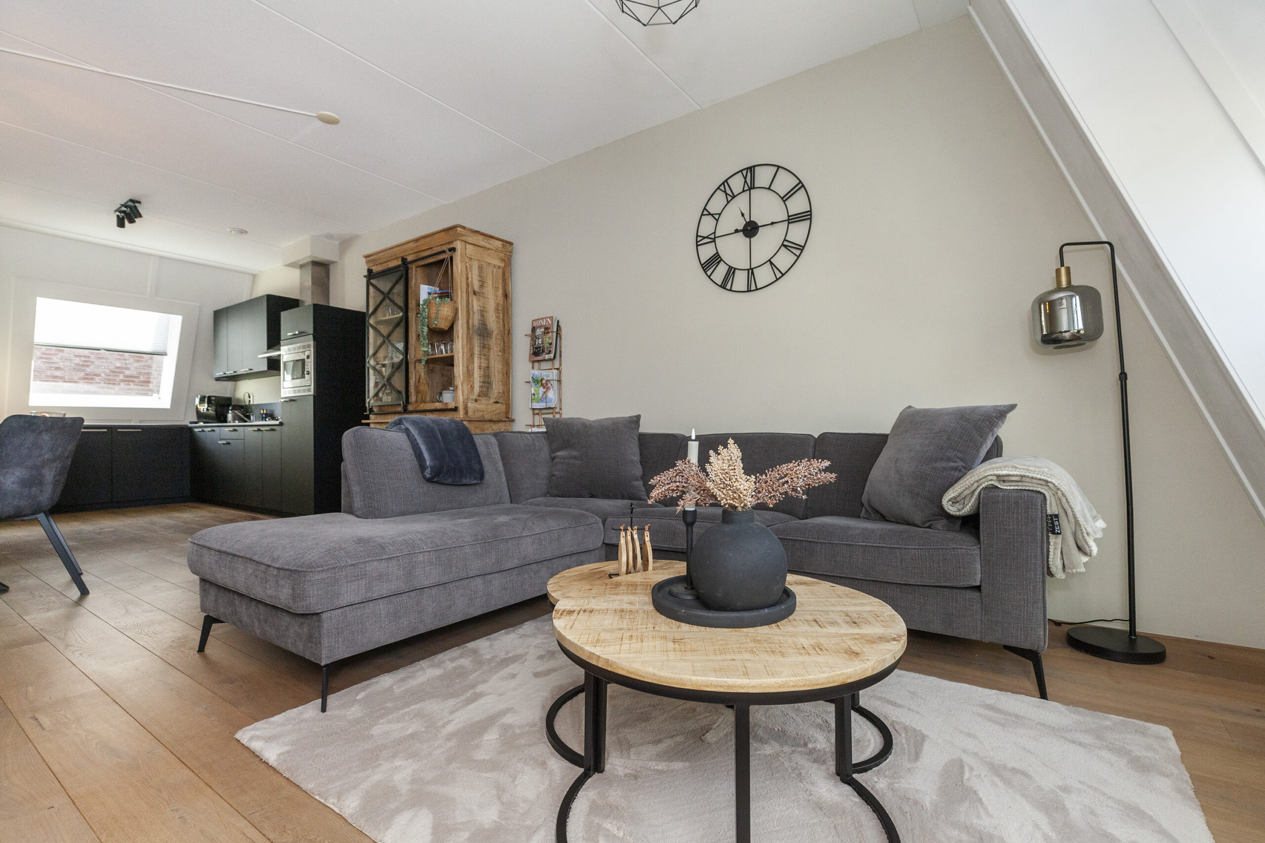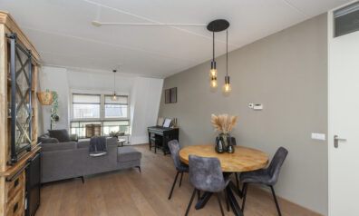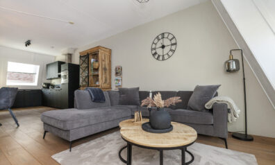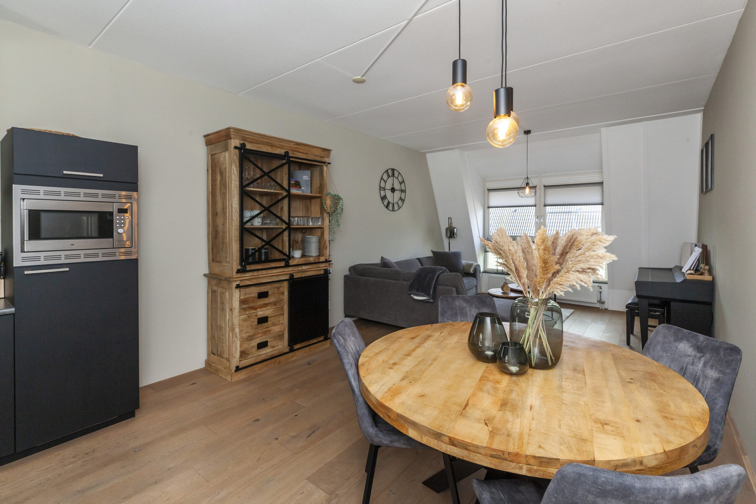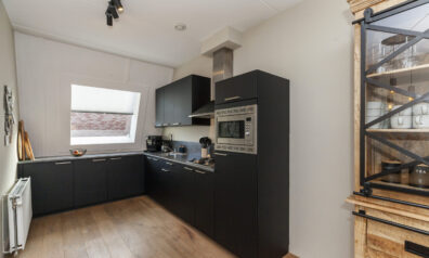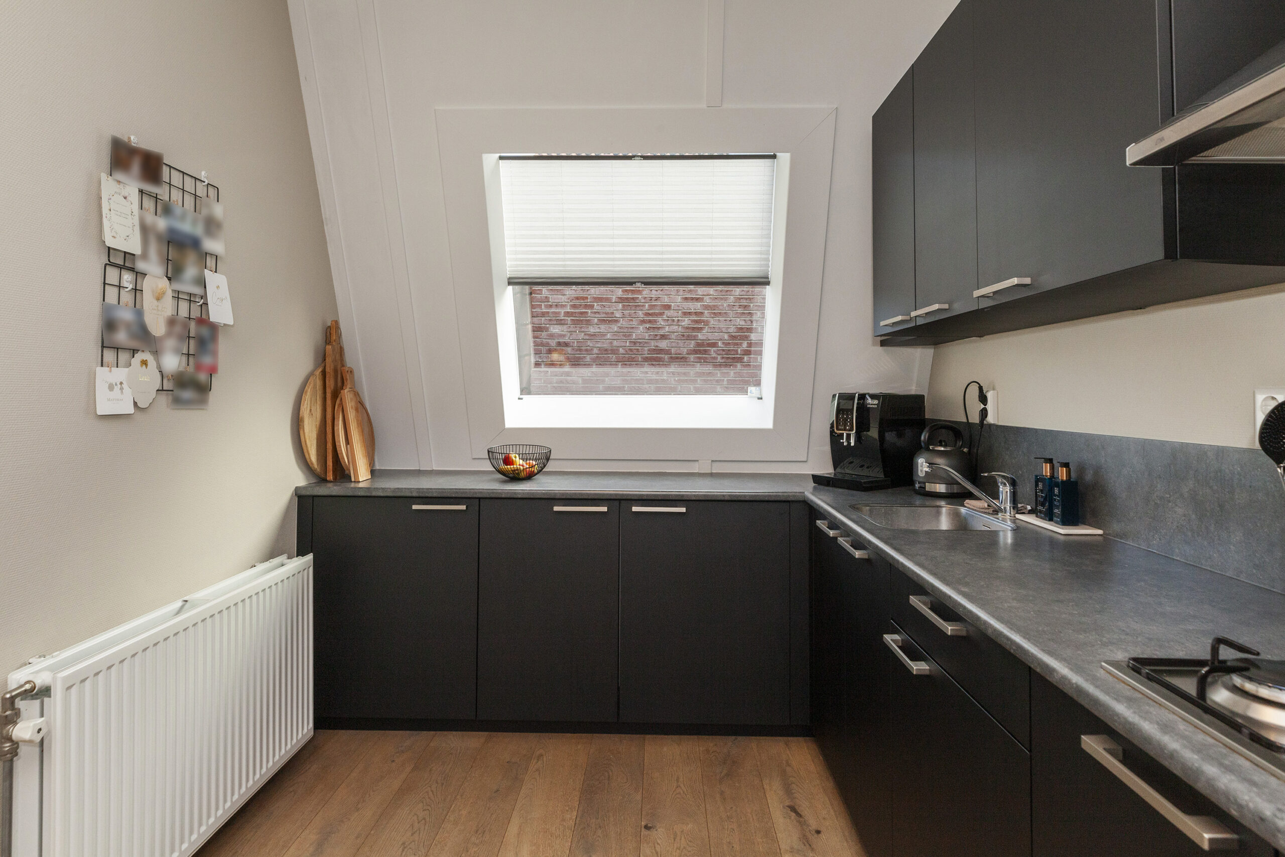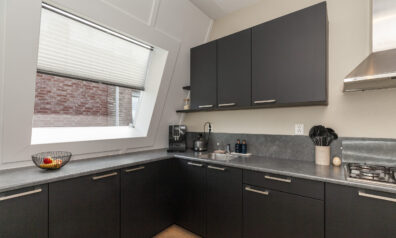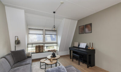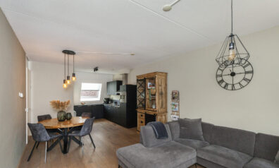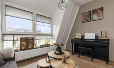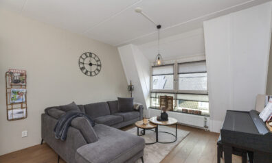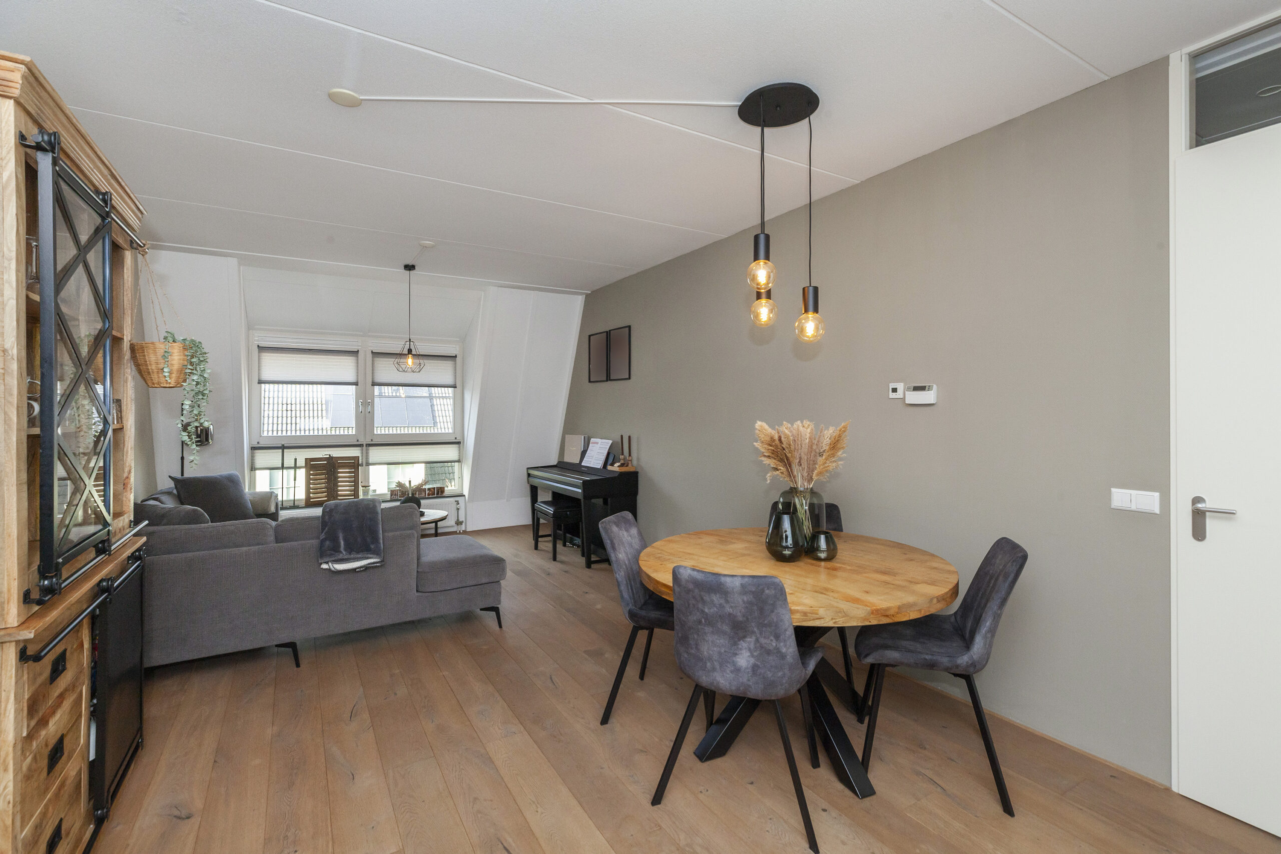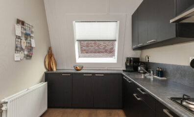 De woonkamer en open keuken vormen één geheel waar het heerlijk genieten is! Door het dakkapel kijkt u leuk weg over de straat. U heeft alle ruimte om een gezellige zithoek en eethoek te creëren.