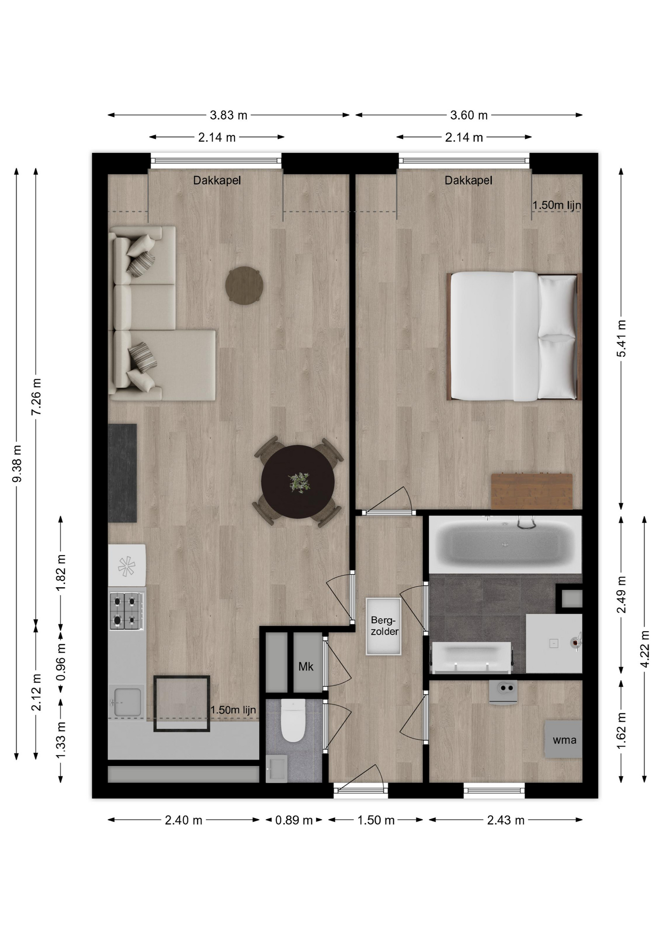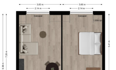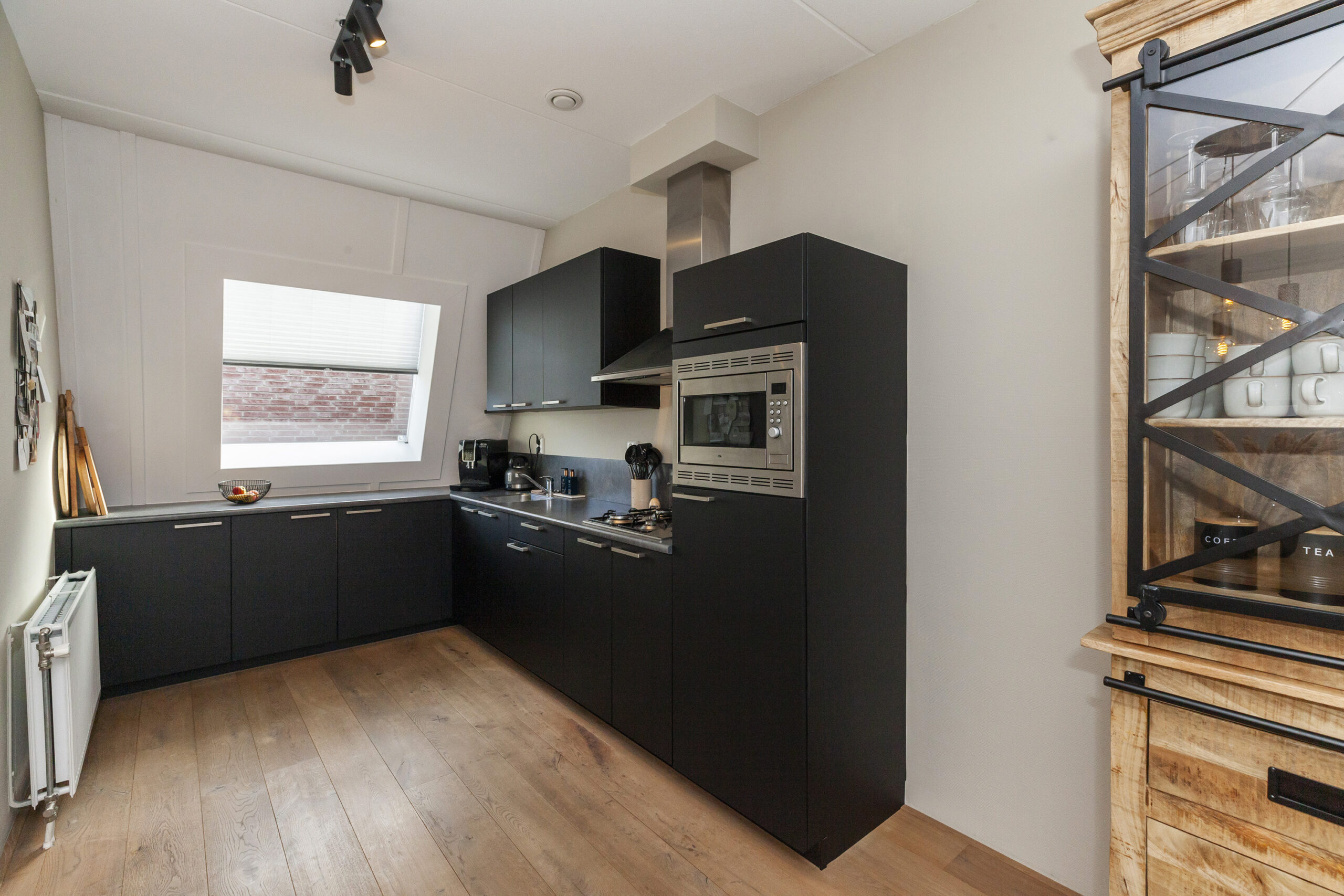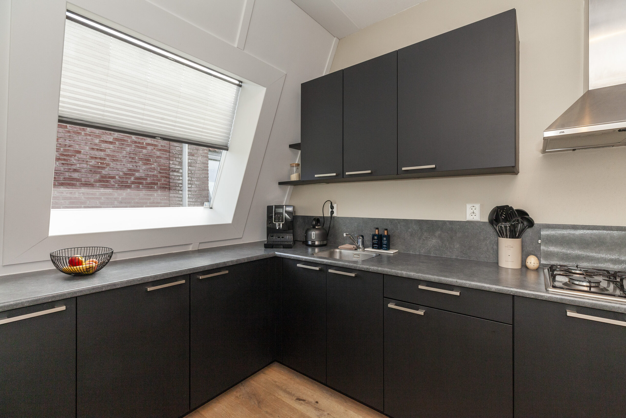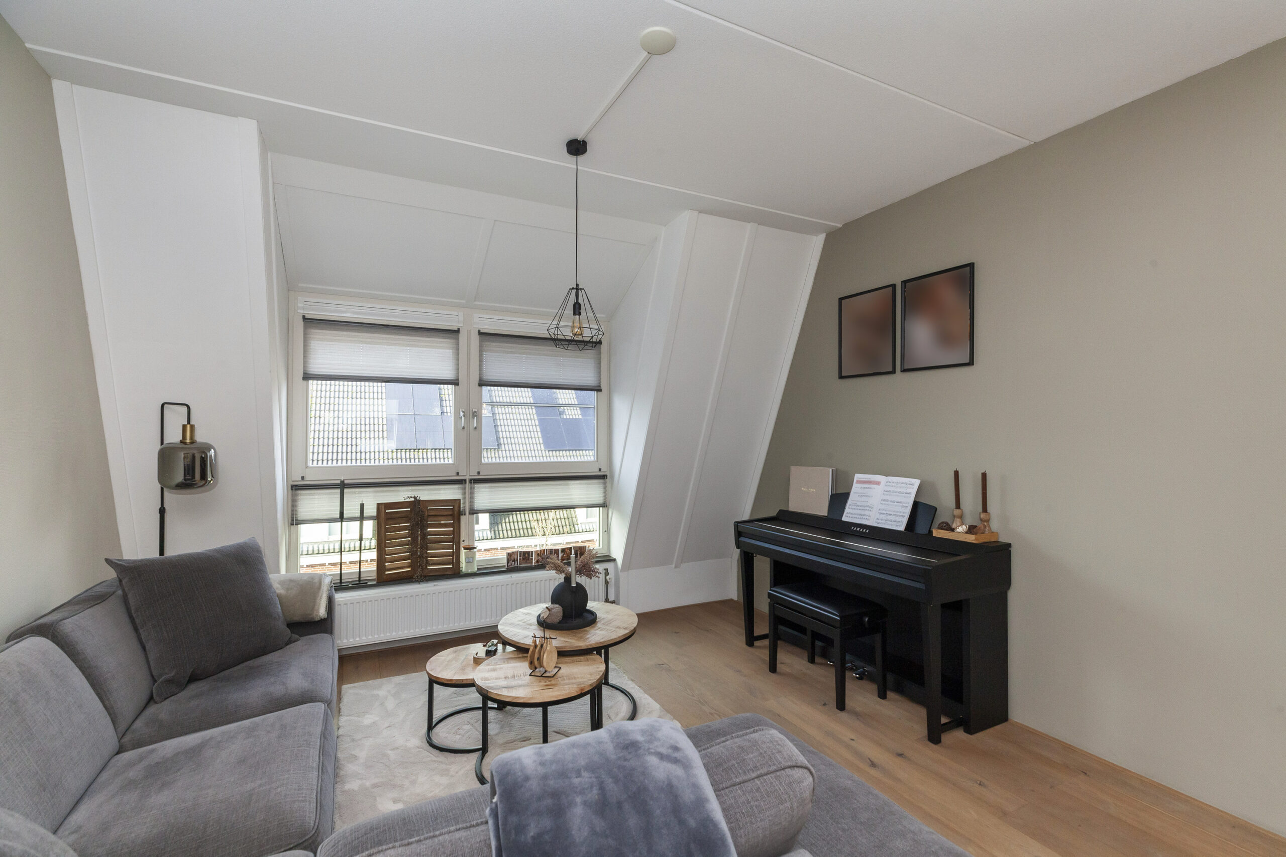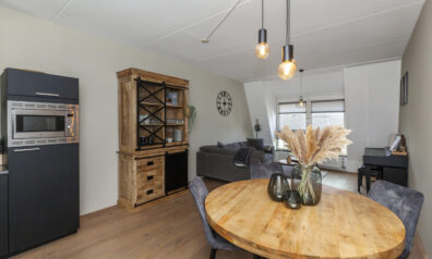 De woonkamer en open keuken vormen één geheel waar het heerlijk genieten is! Door het dakkapel kijkt u leuk weg over de straat. U heeft alle ruimte om een gezellige zithoek en eethoek te creëren.