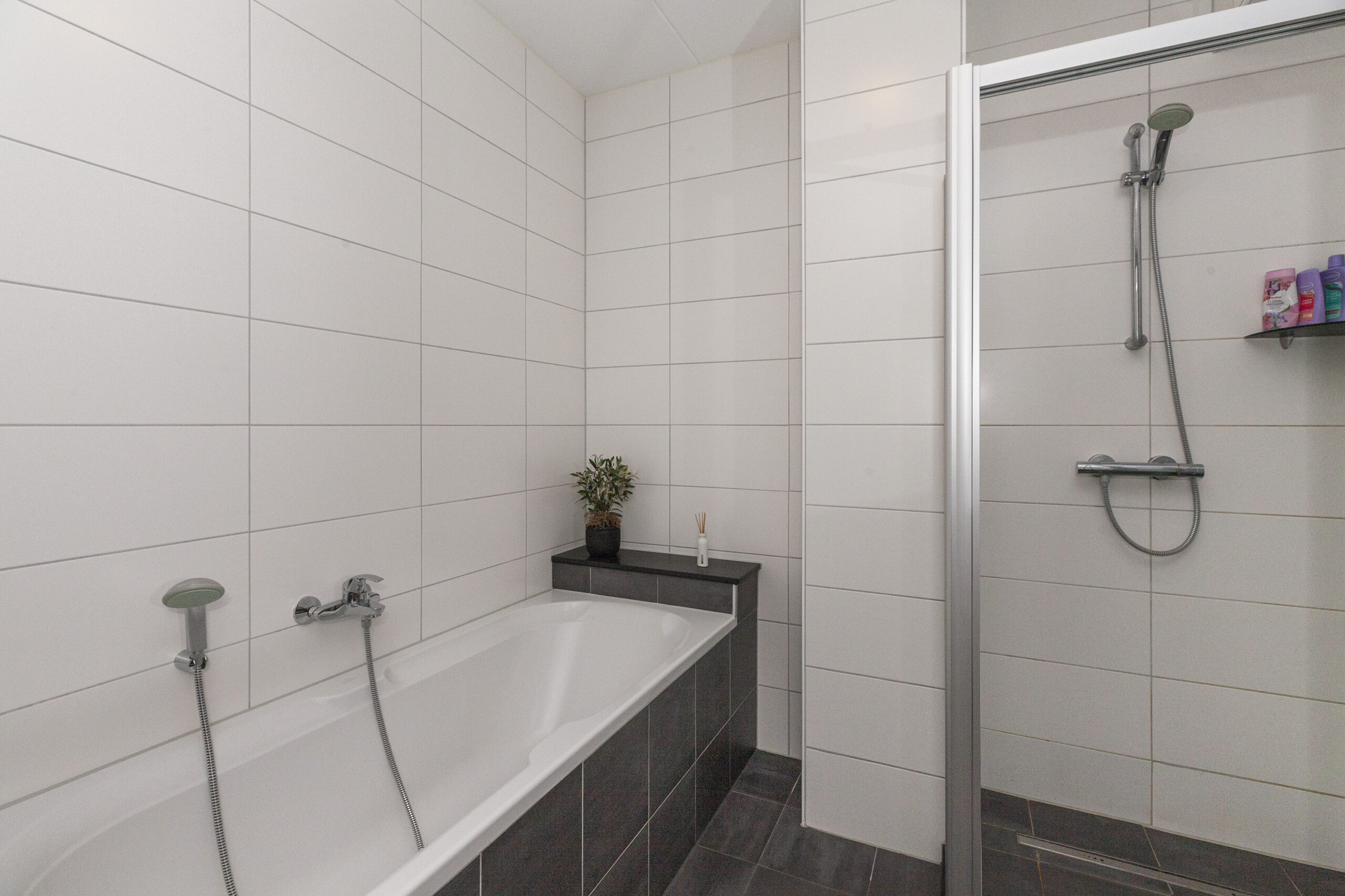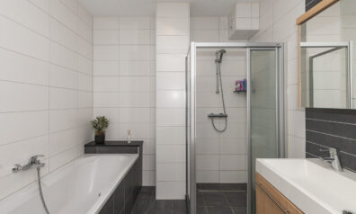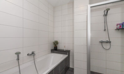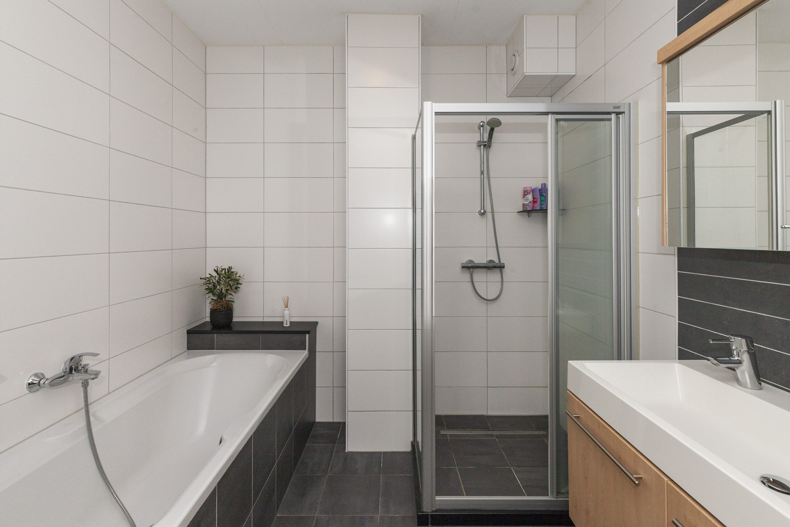 De badkamer is uitgevoerd in een nette, lichte kleurstelling. Daarbij is deze ook nog eens van alle gemakken voorzien! Of u nu liever een ligbad heeft, of een douche, hier heeft u het beide! Verder is er een wastafelmeubel met dubbele kraan, spiegelkast en een designradiator.