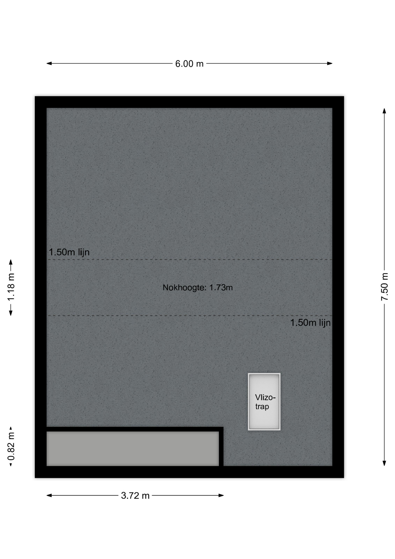 Via de vlizotrap vanuit de hal komt u op deze ruime bergzolder. De nokhoogte is 1.73m.