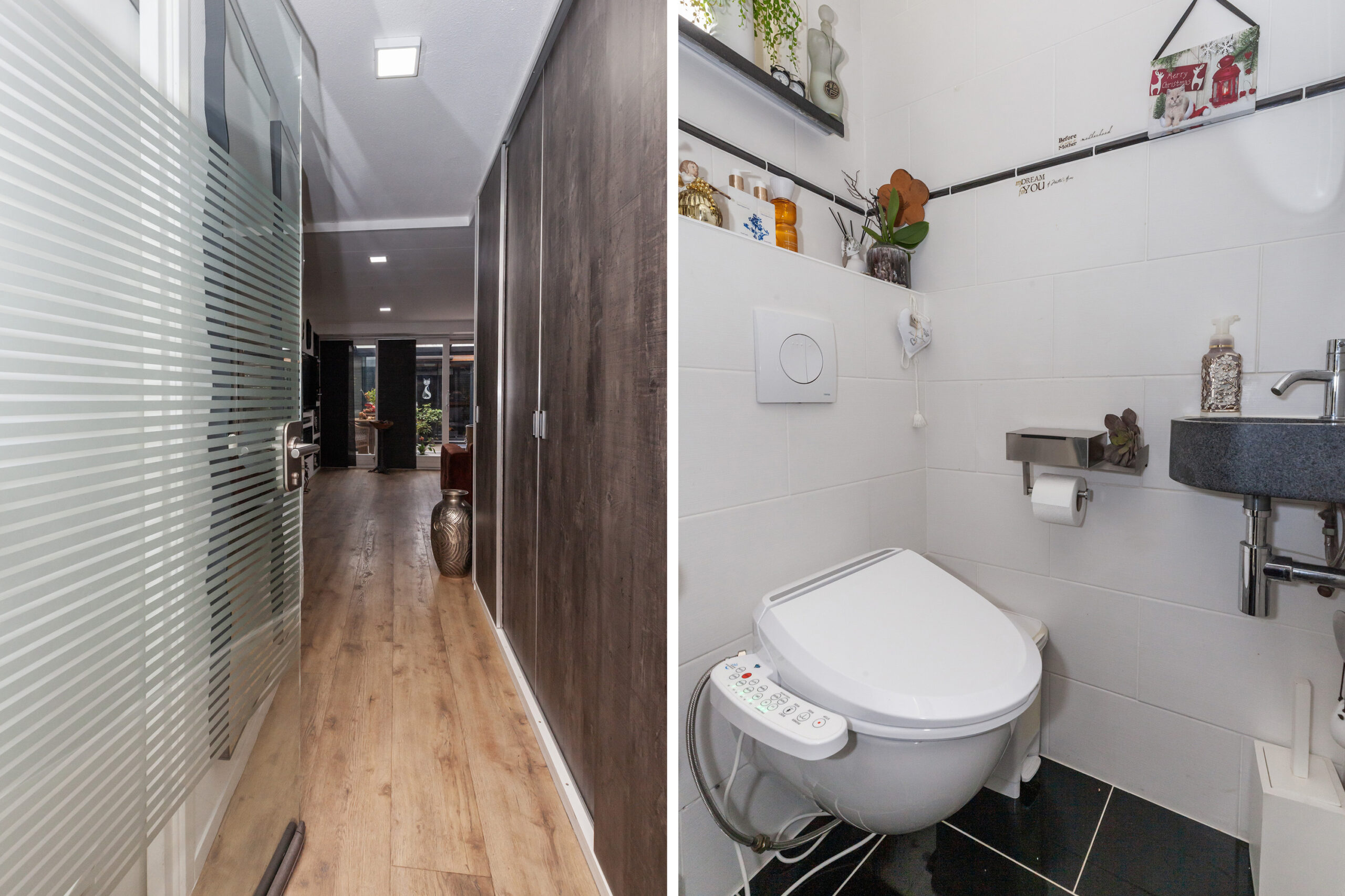 U komt binnen in de hal waar u aan de ene zijde de toiletruimte heeft en aan de andere zijde een praktische inbouwkast.