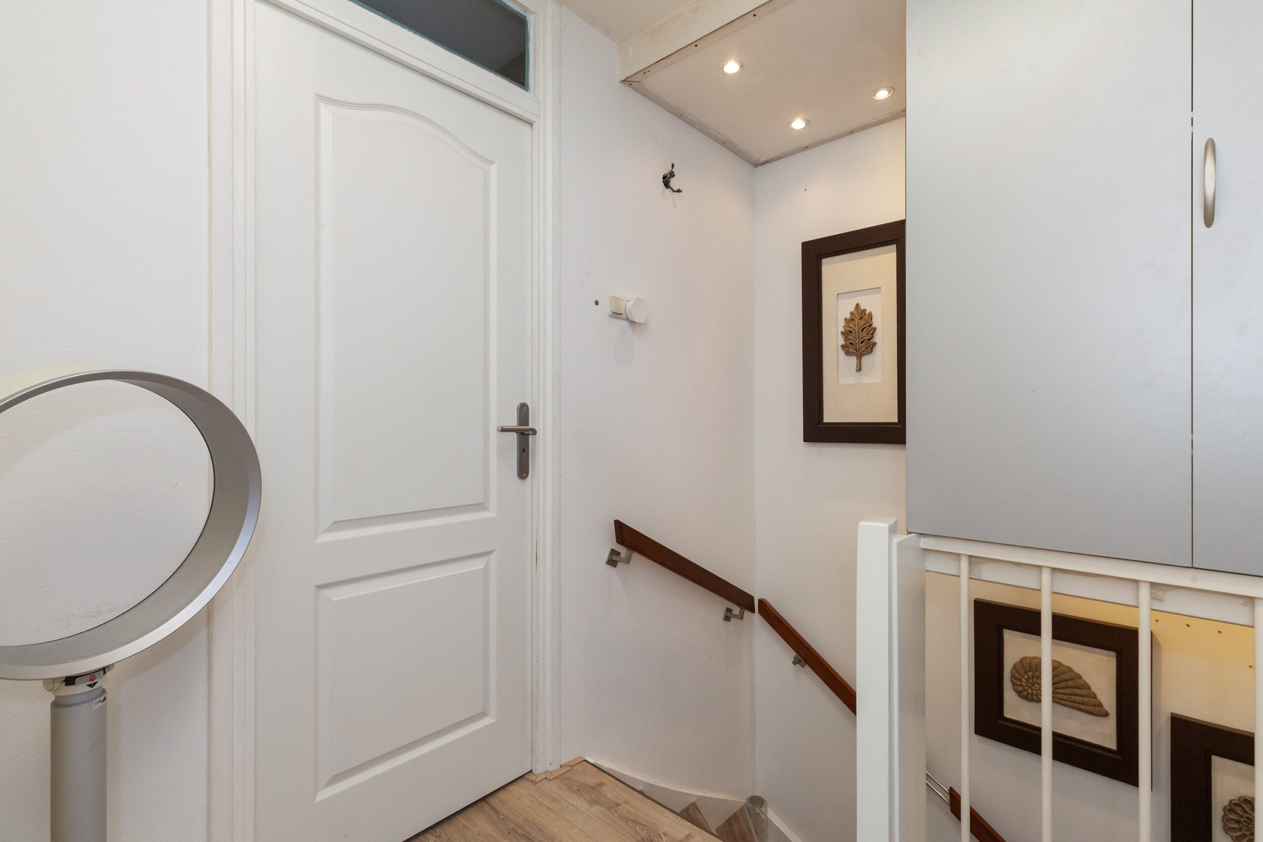 Vanaf de overloop is er toegang tot de twee slaapkamers en de badkamer. Daarnaast zijn er praktische vaste kasten gemaakt.