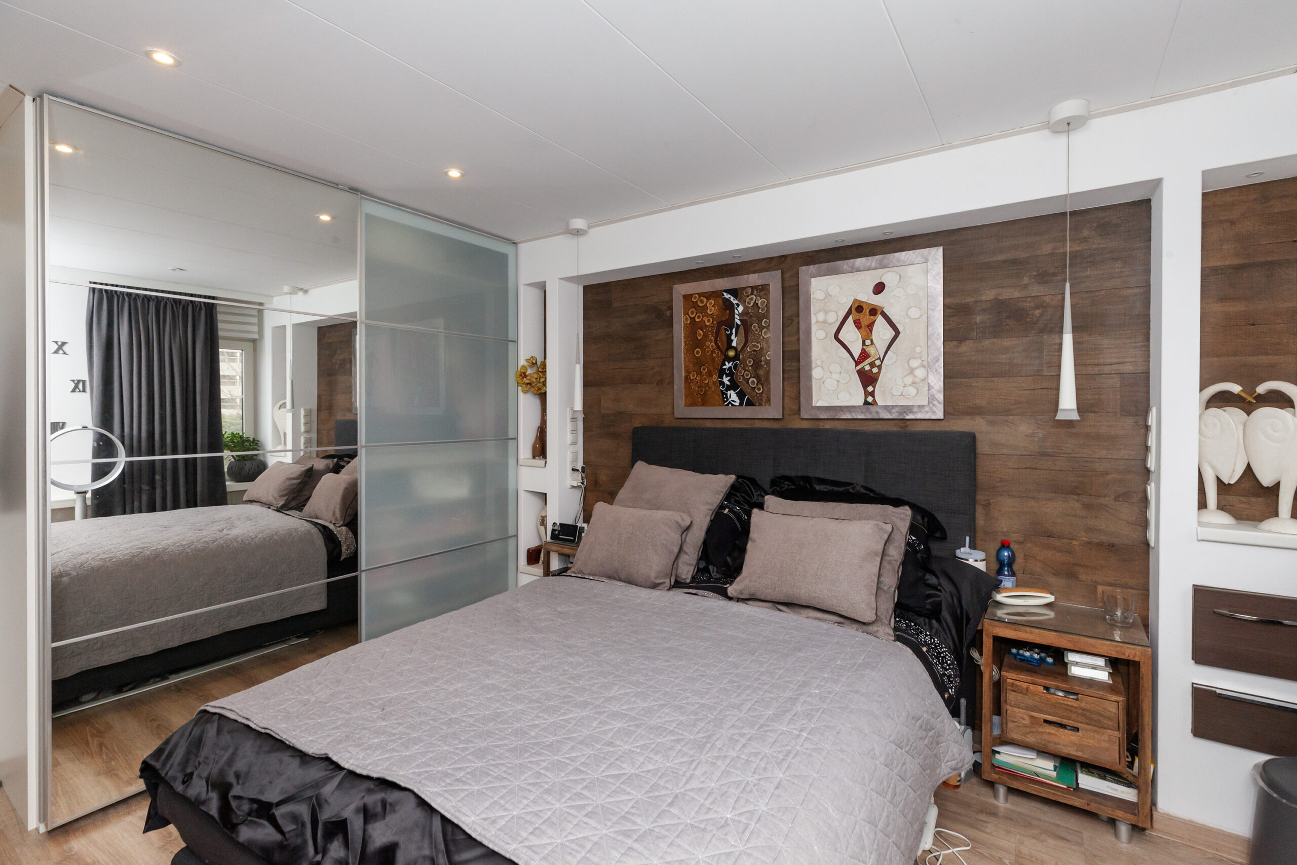 De (ouder) slaapkamer is aan de achterzijde gesitueerd en ingedeeld met een slaapgedeelte en een inloopkast. Daarbij is er een airco.