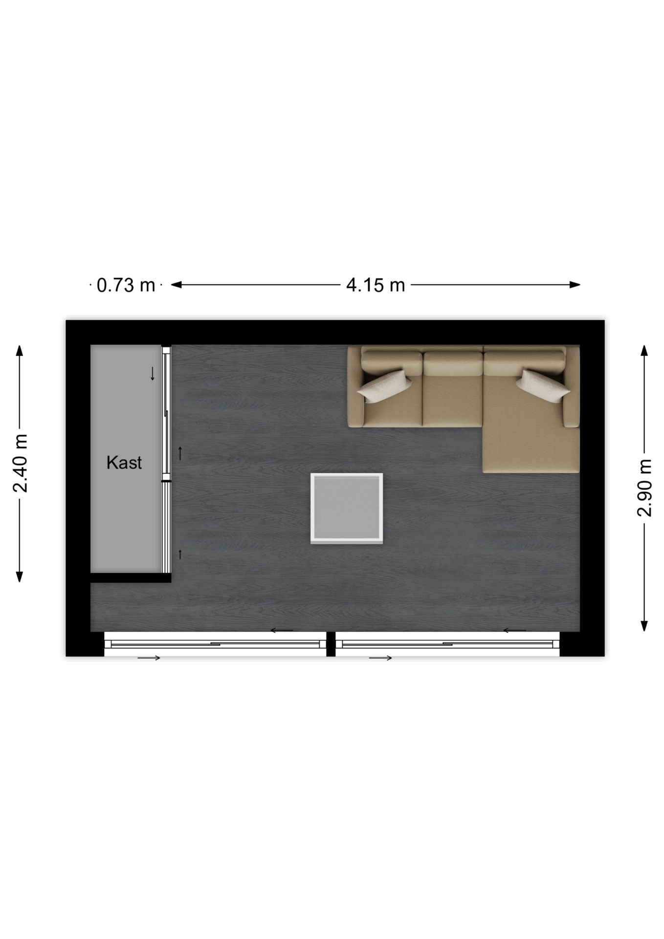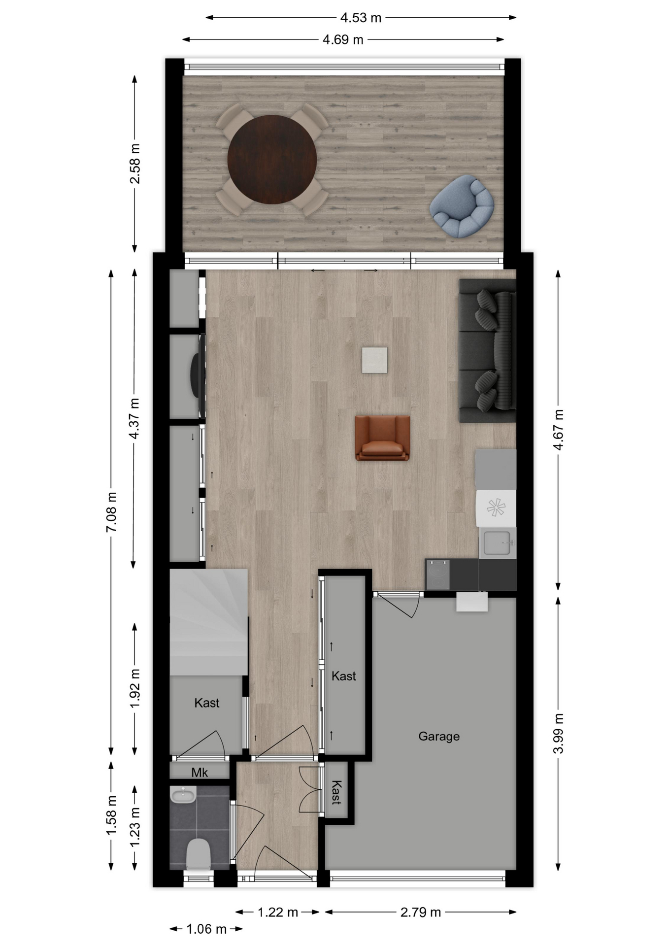 Maatvoering: Circa 4.69 x 2.58m