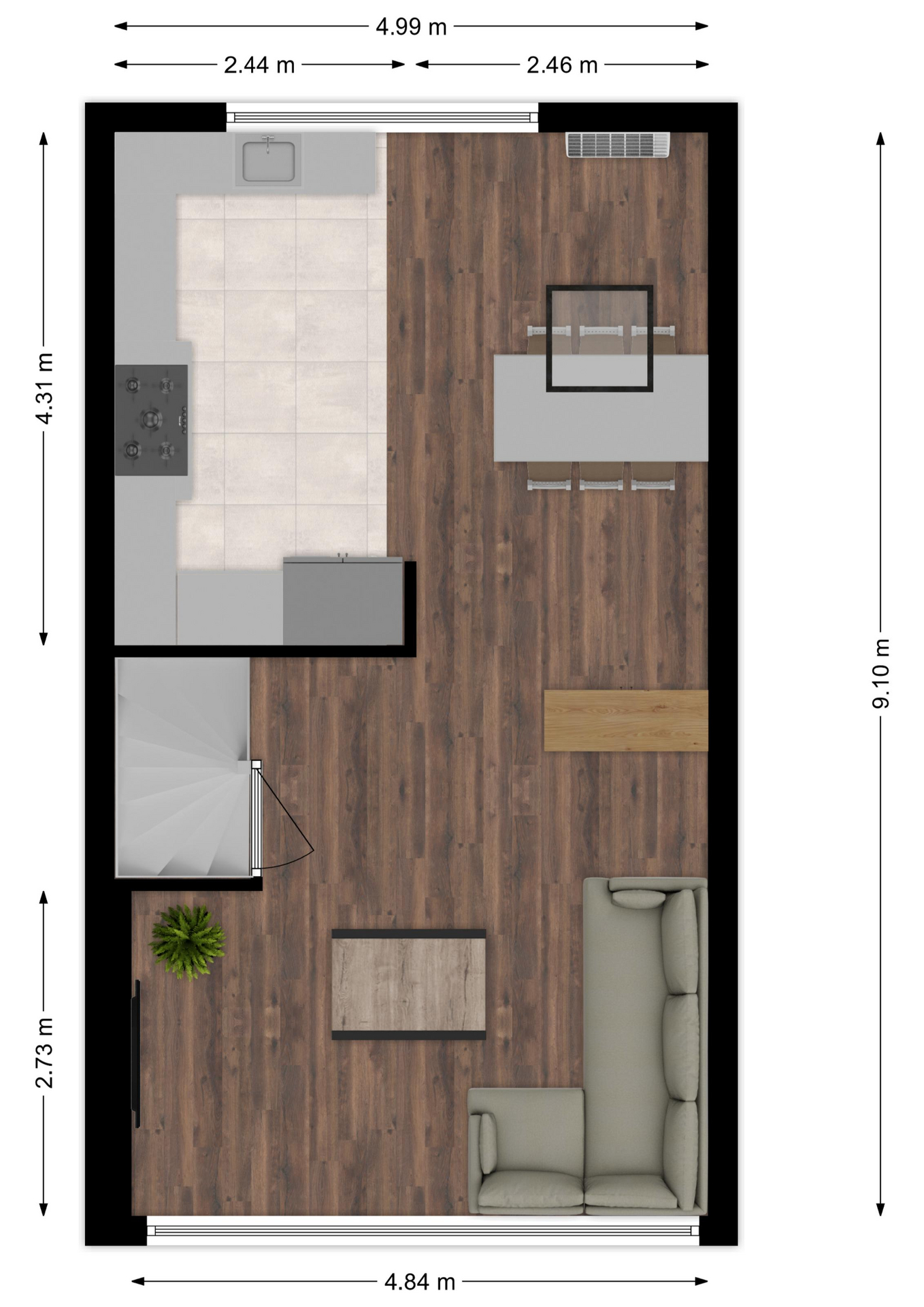 Maatvoering: Circa 4.99 x 4.31m