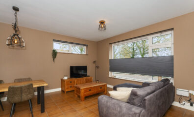 Aan de voorzijde is de gezellige woonkamer gesitueerd. Mede door de vele ramen is het fijn licht binnen, maar dit biedt ook leuk zicht over de voorgelegen straat en groenstrook. De ramen aan de voorzijde zijn voorzien van HR++-beglazing. De kamer is goed in te delen met een zit- en eethoek. Overigens geniet je hier van vloerverwarming.