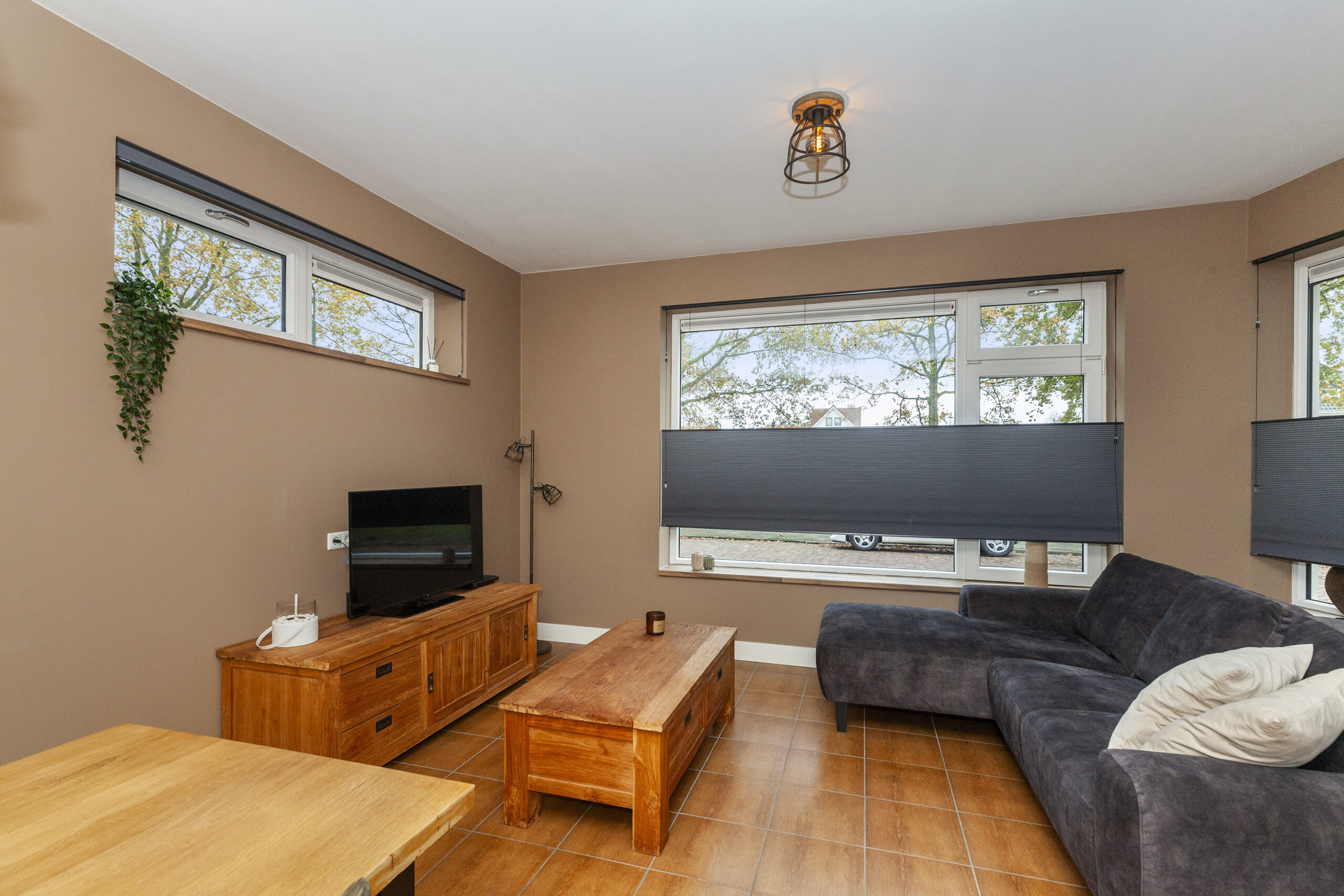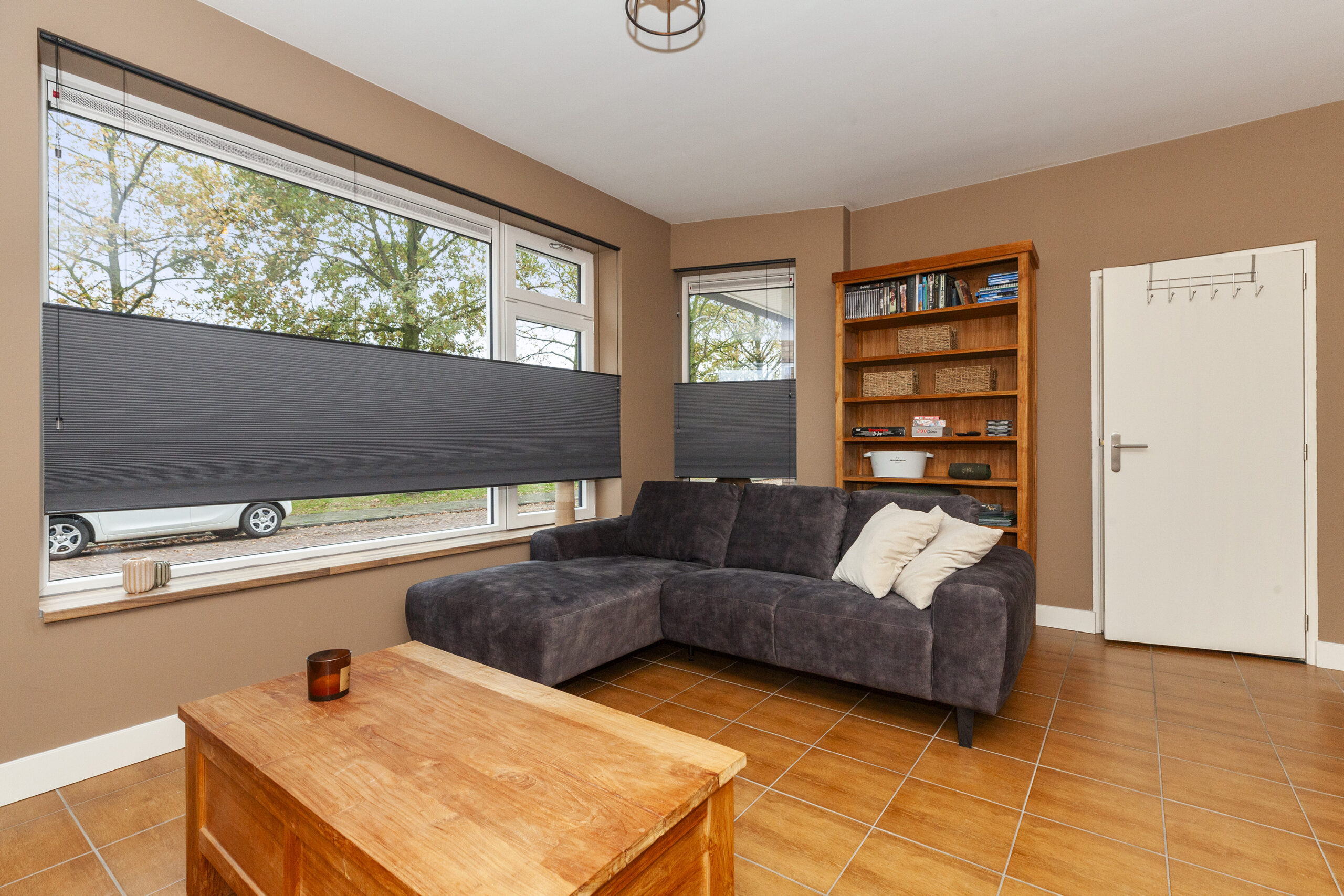 De ramen aan de voorzijde zijn voorzien van screens.