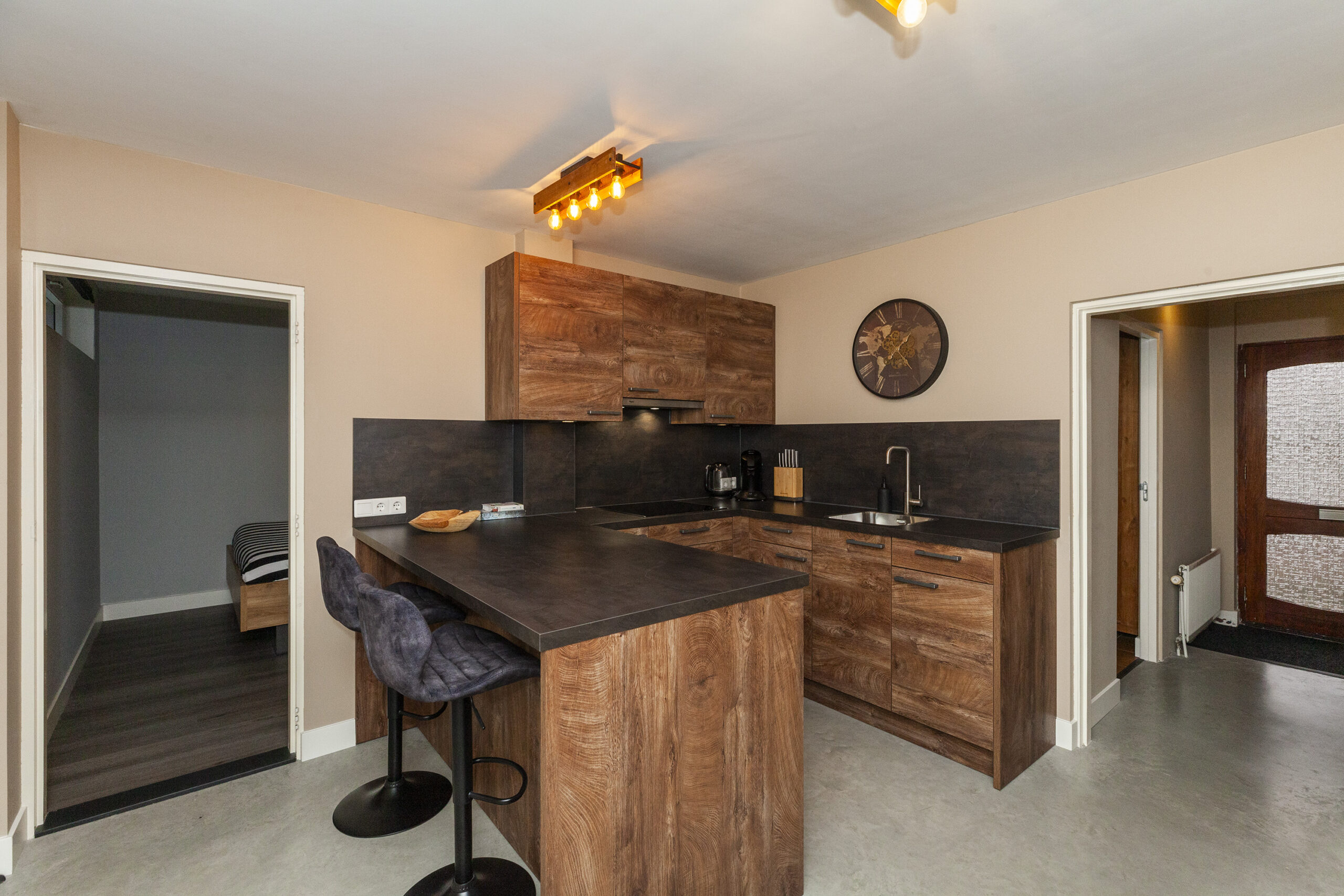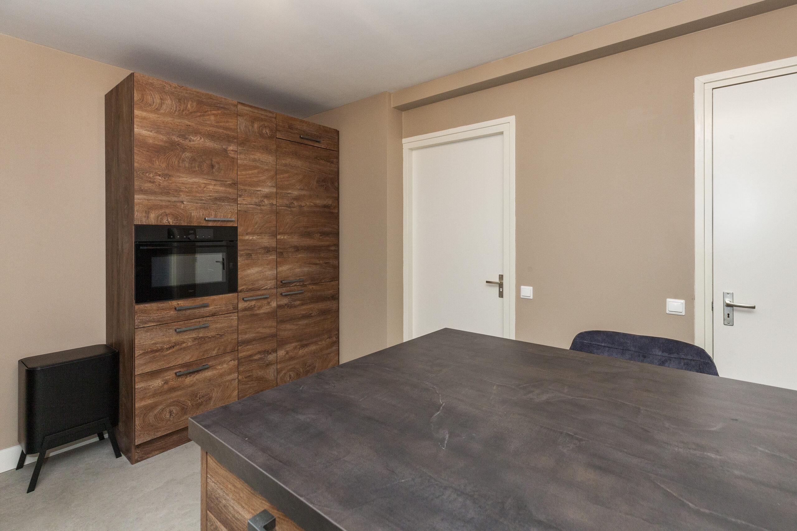 Centraal in het midden bevindt zich deze heerlijke woonkeuken, welke in 2024 is geplaatst. Aan de ruime U-opstelling kun je heerlijk kokkerellen, maar ook kun je een paar barkrukken aanschuiven. Aan inbouwapparatuur is er de beschikking over een inductiekookplaat, afzuigkap, combi-oven en een koel-/vriescombinatie. Daarnaast is er een inloopberging waar ook de meterkast is gevestigd. Vanuit de keuken is er toegang tot de twee slaapkamers en badkamer.