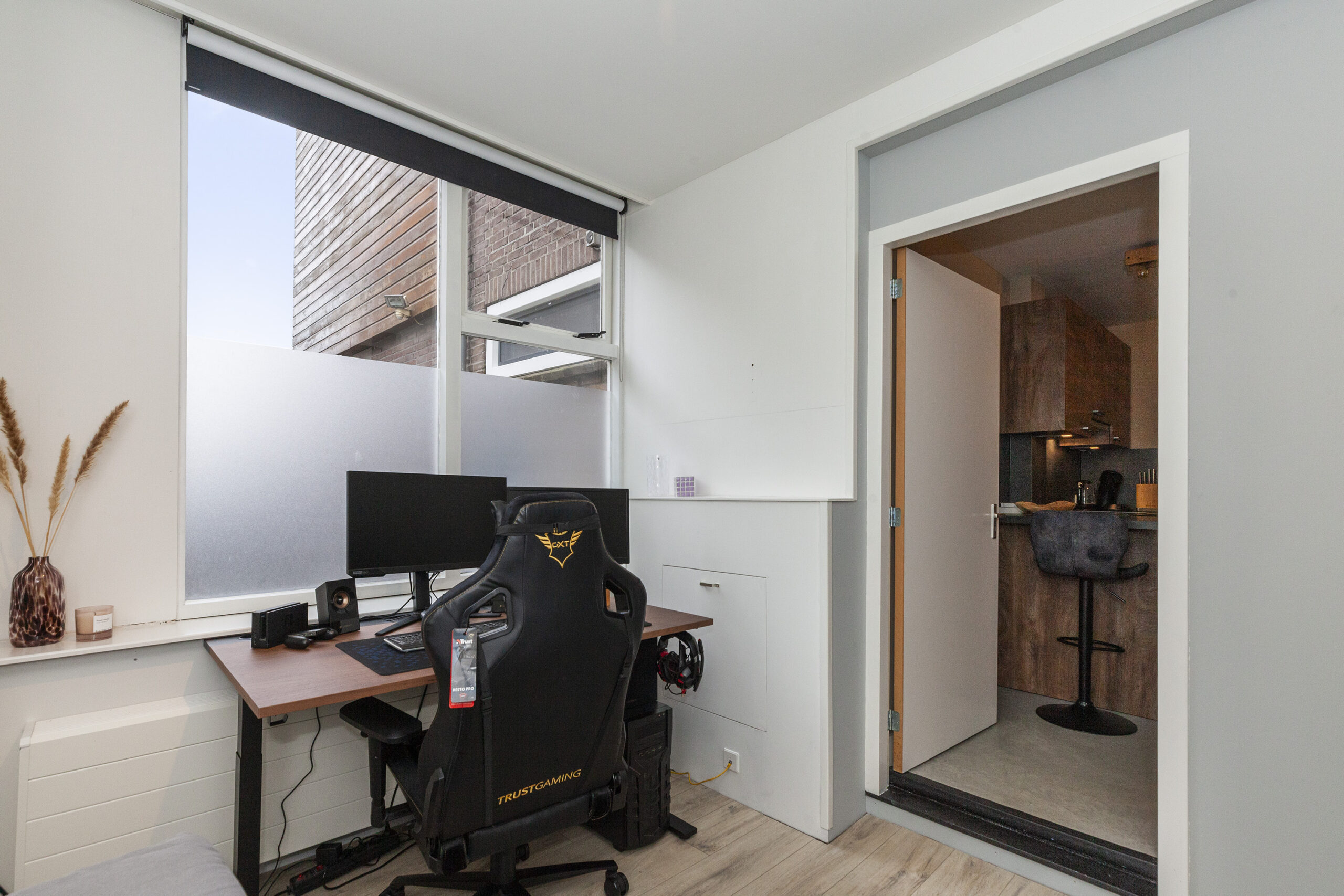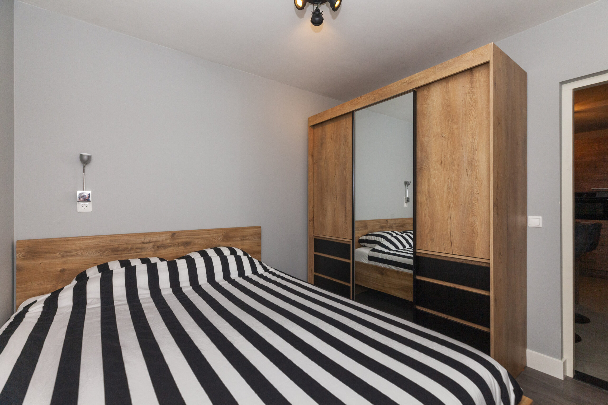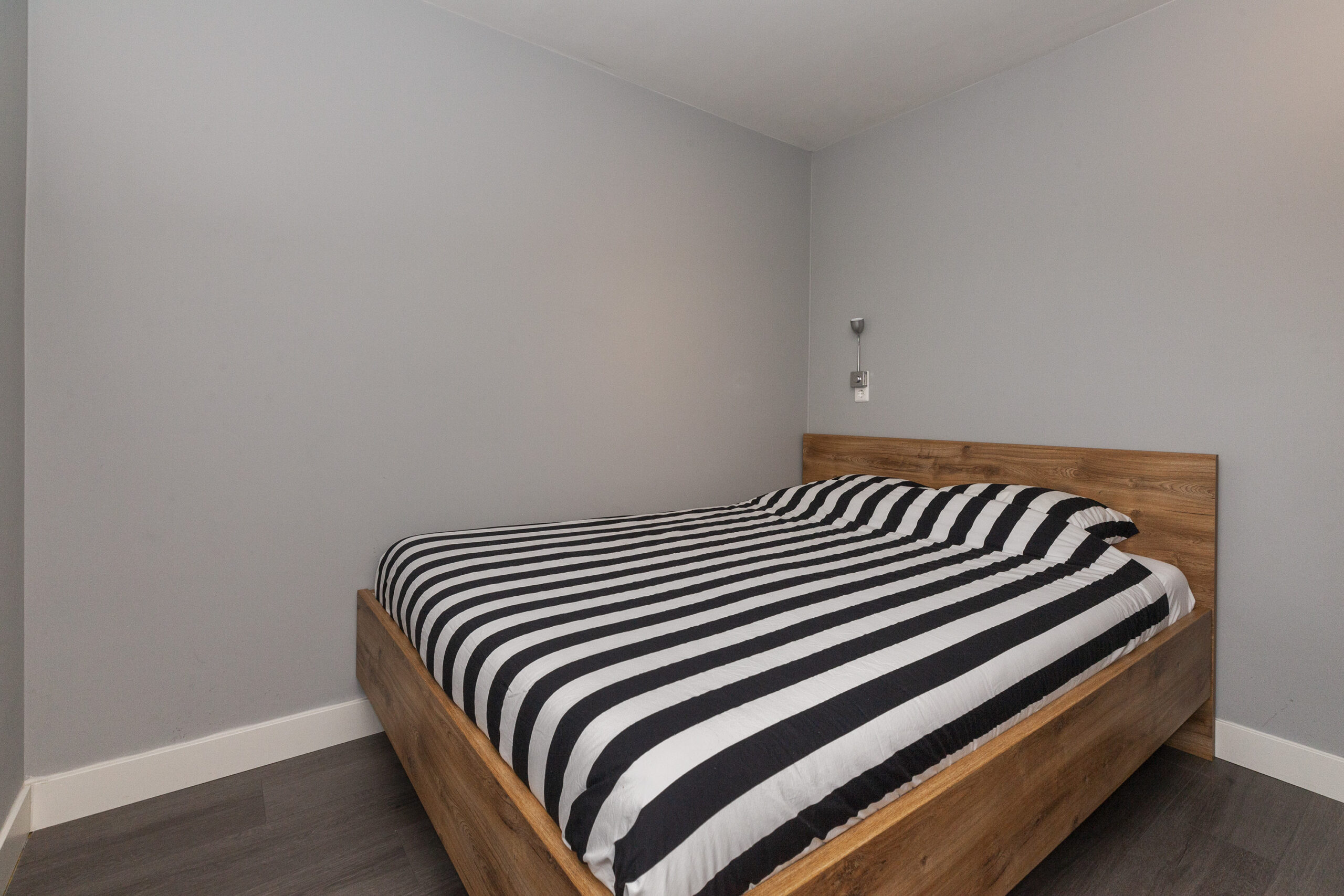 Deze slaapkamer is middels een open verbinding naast de woonkeuken gesitueerd.
