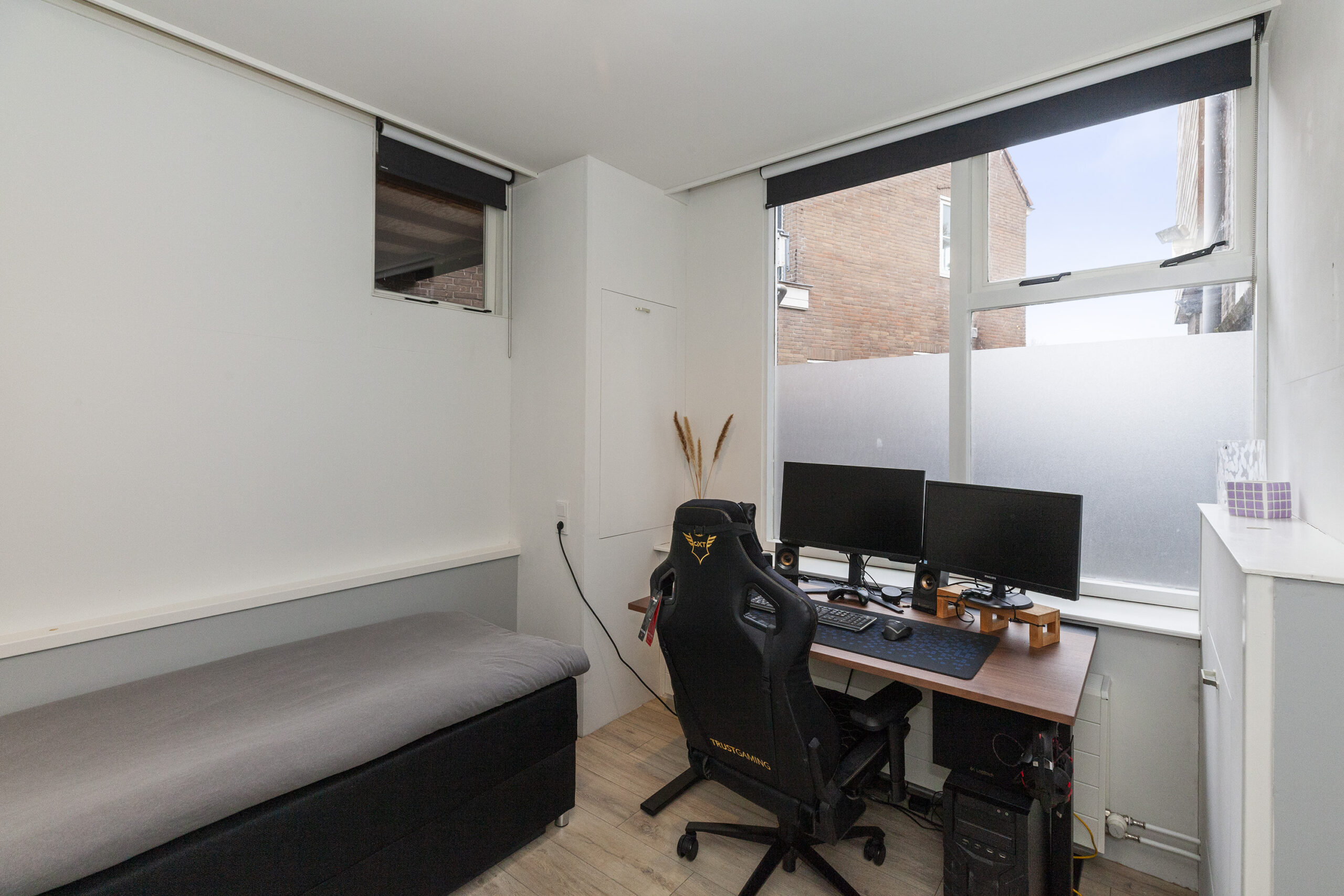 De tweede slaapkamer tref je aan de achterzijde en in de inbouwkast is de opstelling van de C.V.-ketel.