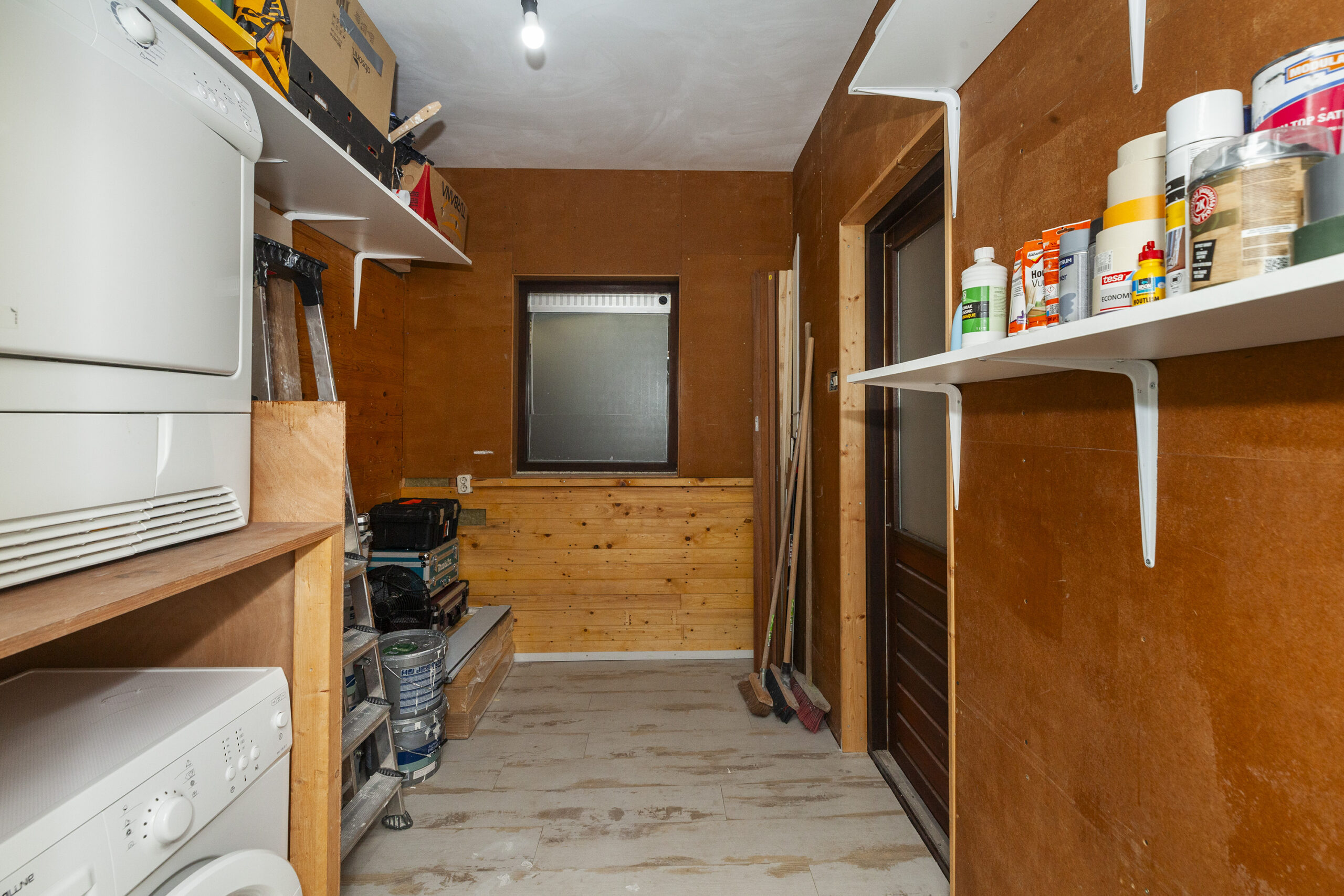 In deze berging, toegankelijk vanuit keuken kun je de wasmachine en droger plaatsen. Tevens bijvoorbeeld ook je fiets en overige spullen.