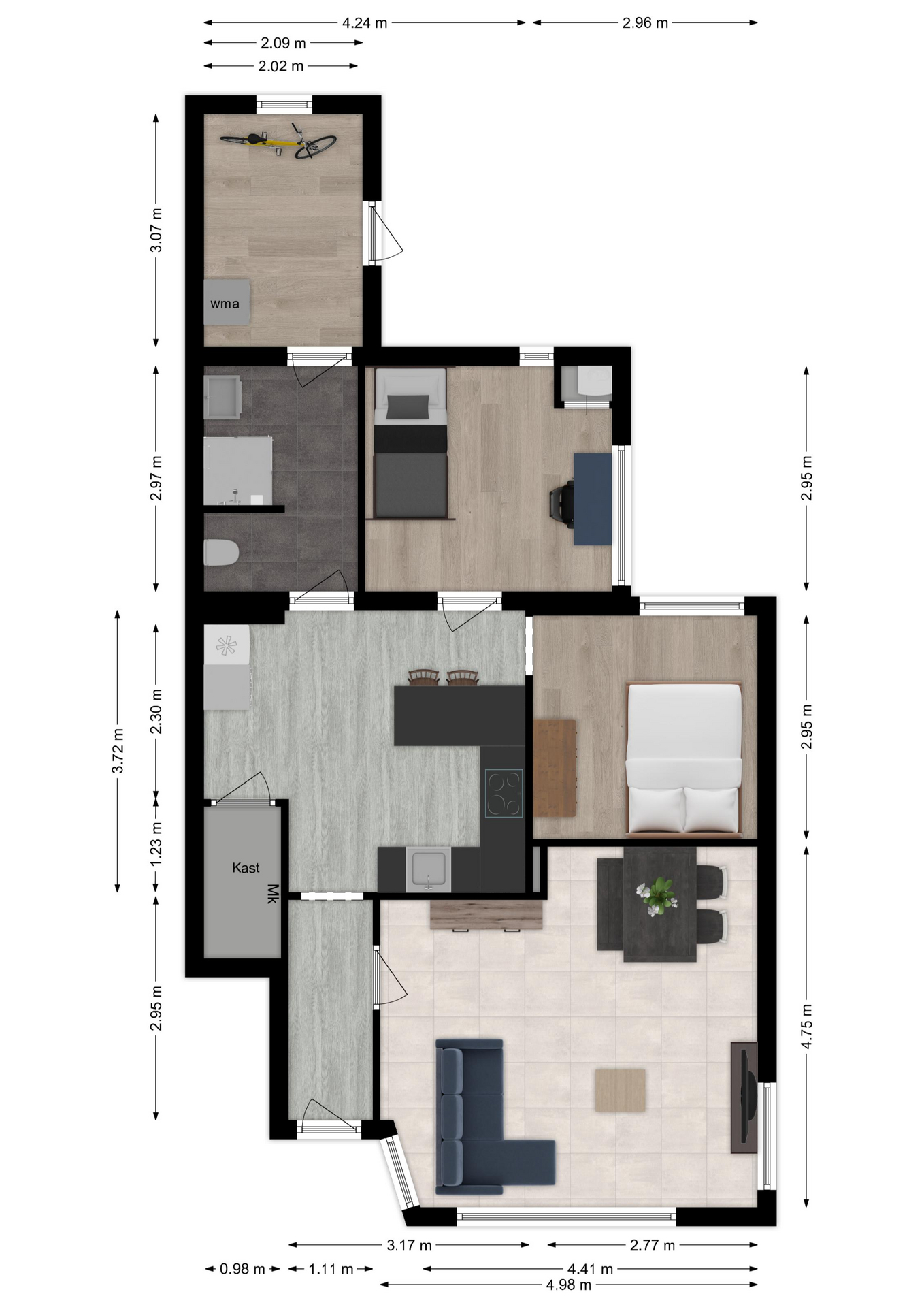 Maatvoering: Circa 2.97 x 2.02m