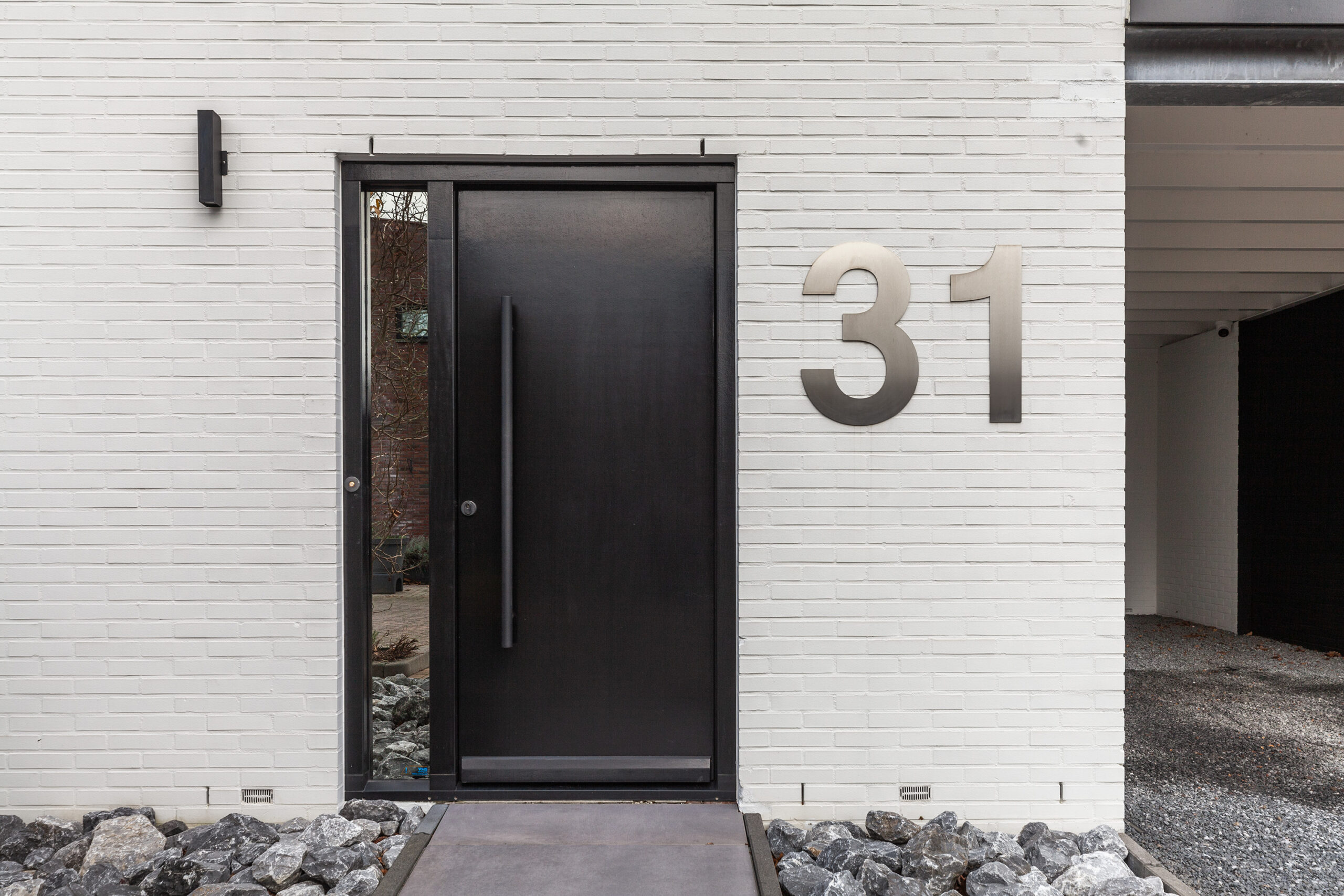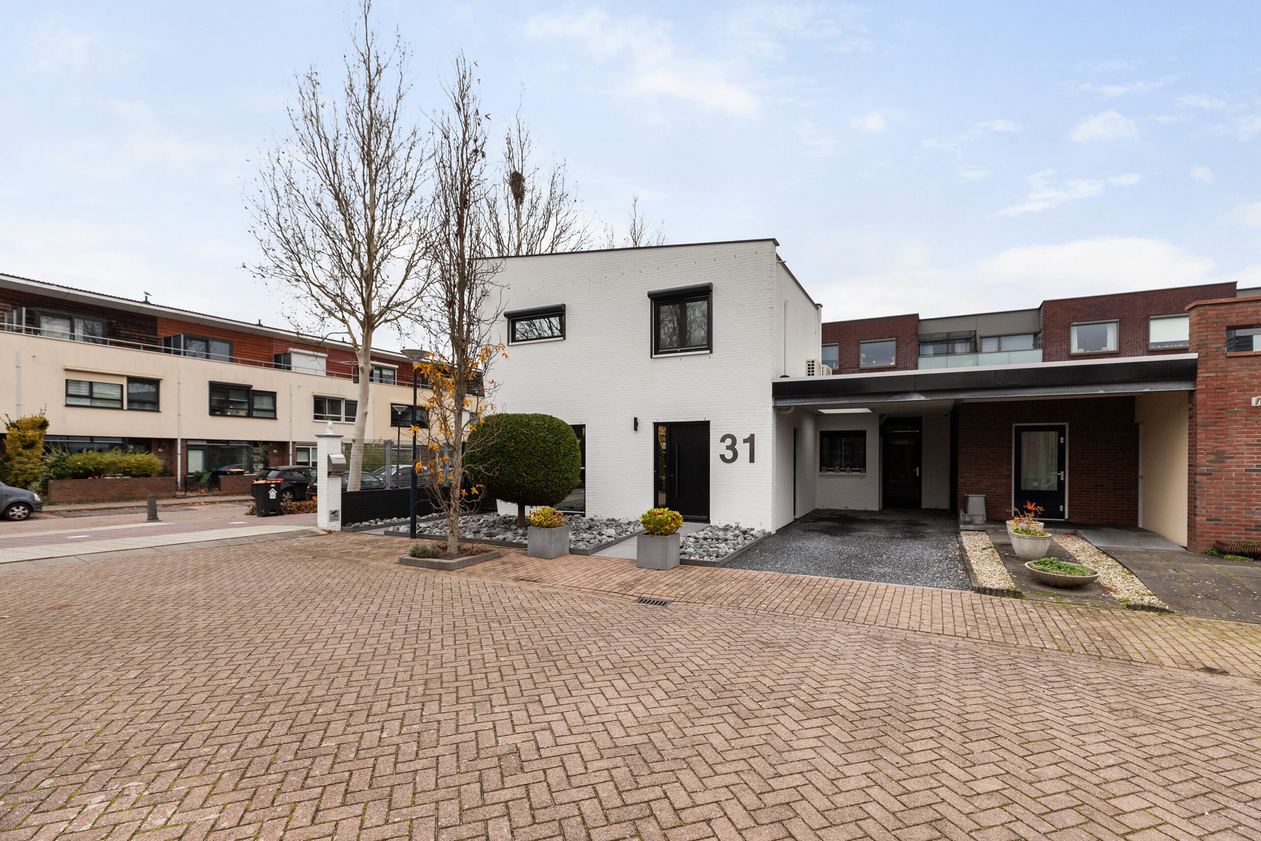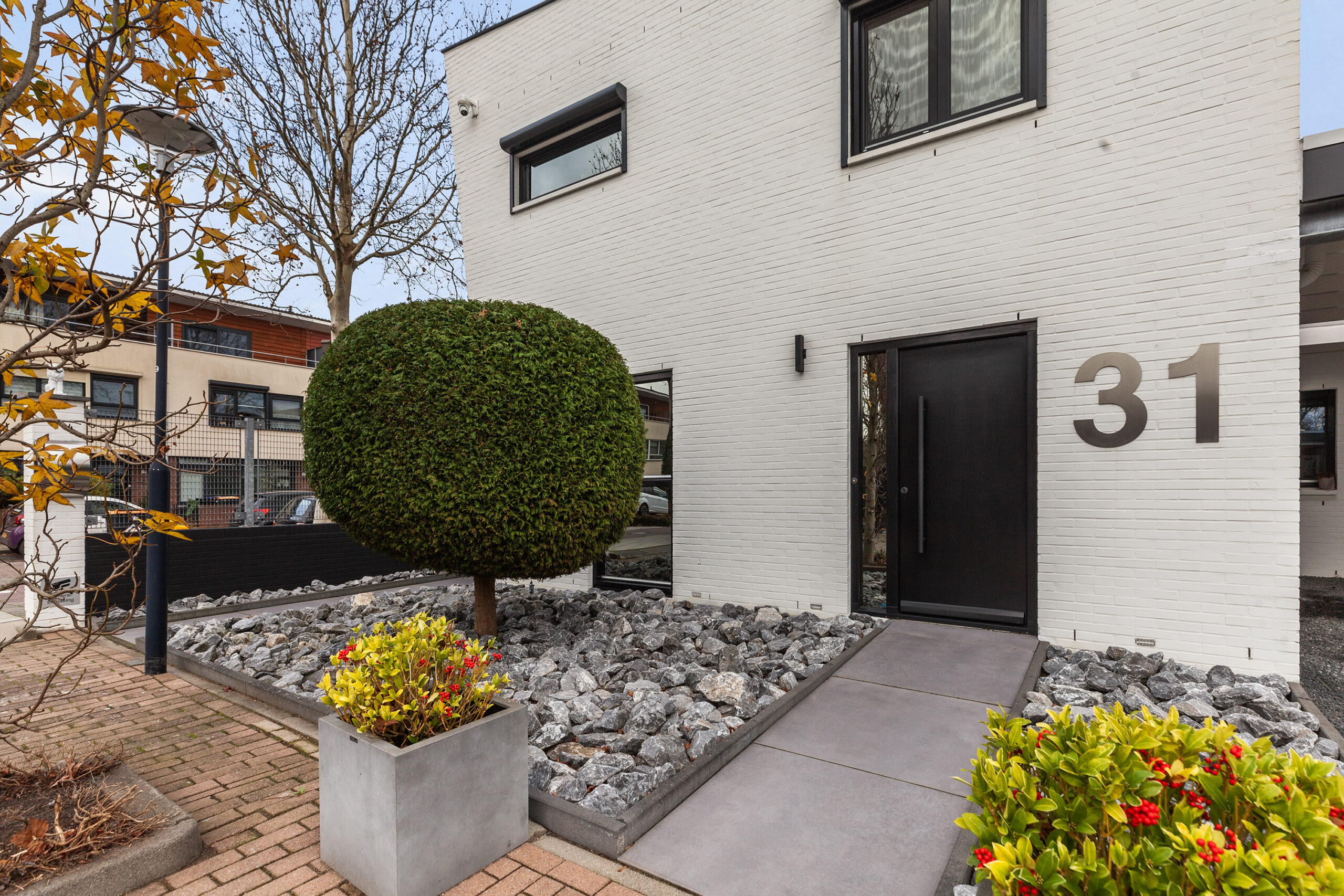 Parkeren doet u direct, gemakkelijk op uw eigen oprit. Ook de voortuin is net als de woning strak aangelegd en loopt door via de zijtuin naar achteren.