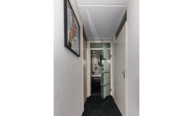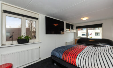 Deze strakke en modern vormgegeven woning maakt van buiten direct indruk en zet de eigentijdse lijn moeiteloos door naar binnen. Hier is alles netjes onderhouden en afgewerkt in een stijlvolle contrasterende kleurstelling. Op de begane grond bevindt zicht een gezellige woonkamer met open keuken en een praktische eetkamer, die door het plaatsen van een muur eenvoudig kan worden omgevormd tot een slaapkamer. De naastgelegen badkamer zorgt ervoor dat alle primaire voorzieningen gelijkvloers aanwezig zijn. Ook de eerste verdieping biedt volop mogelijkheden! Momenteel is er één grote slaapkamer met twee deuren, waardoor deze eenvoudig weer te splitsen is in twee slaapkamers en er is een tweede badkamer. Bovendien zijn er in het verleden vergunningen aangevraagd om uit te bouwen op o.a. het dakterras. De onderhoudsvriendelijk aangelegde tuin maak het geheel compleet.