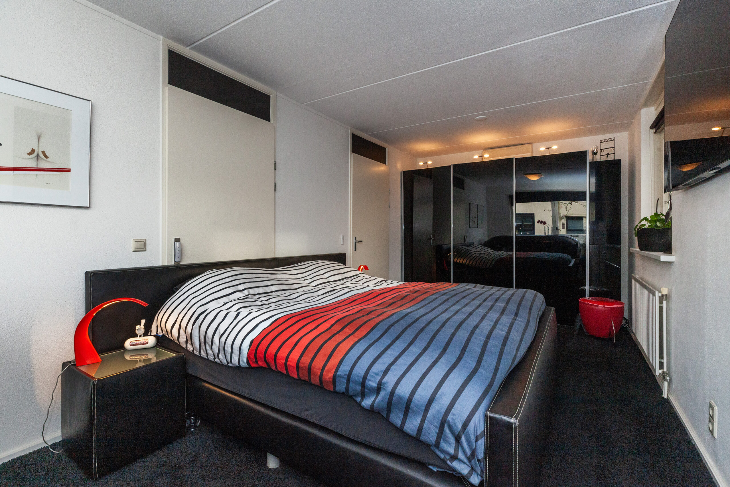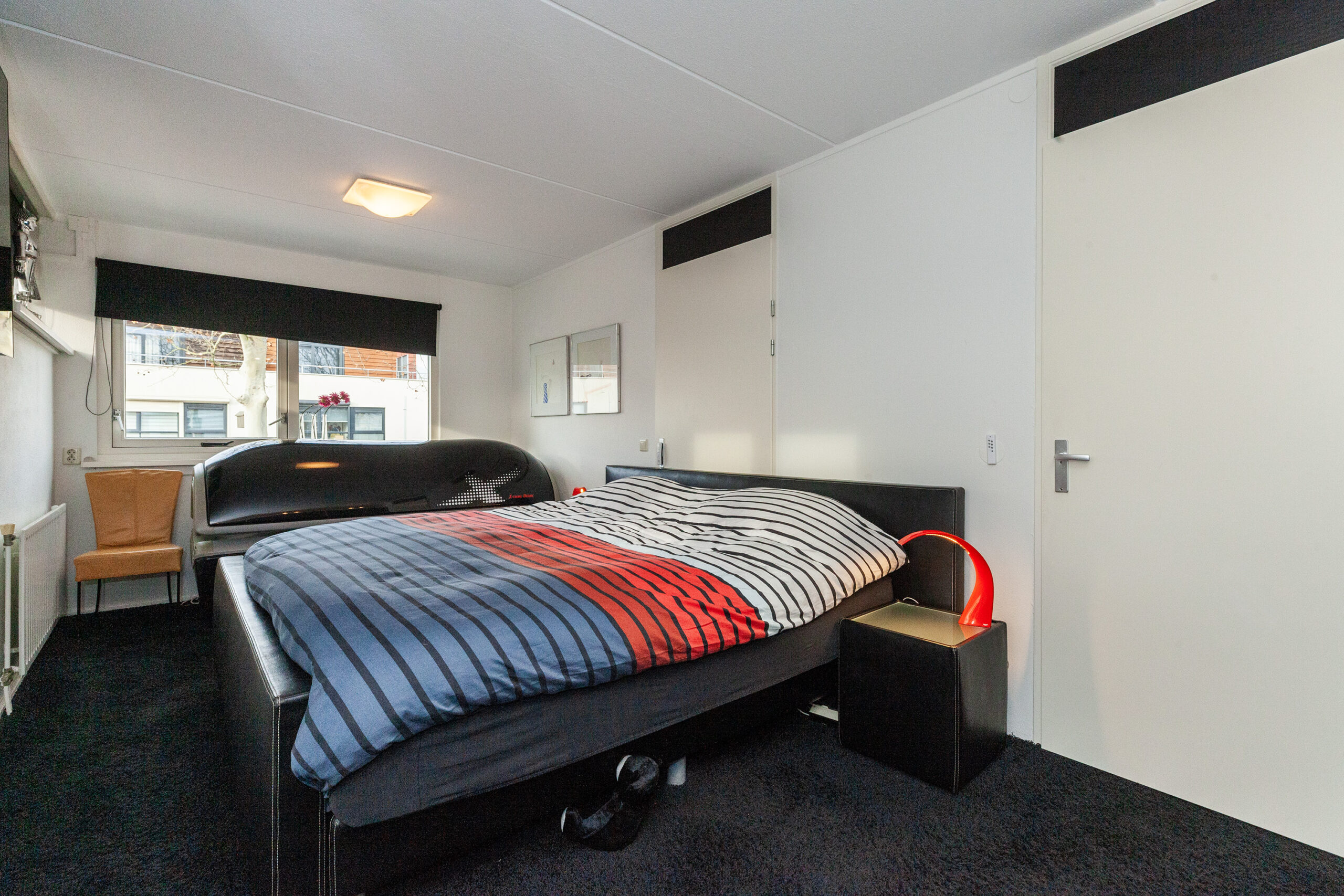 Wat een heerlijke, grote slaapkamer is dit! Er zijn een tweetal deuren gevestigd, waardoor u gemakkelijk hier een wand plaatst en u heeft twee slaapkamers. De kamer is ook voorzien van een airco en elektrische rolluiken.