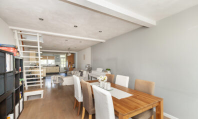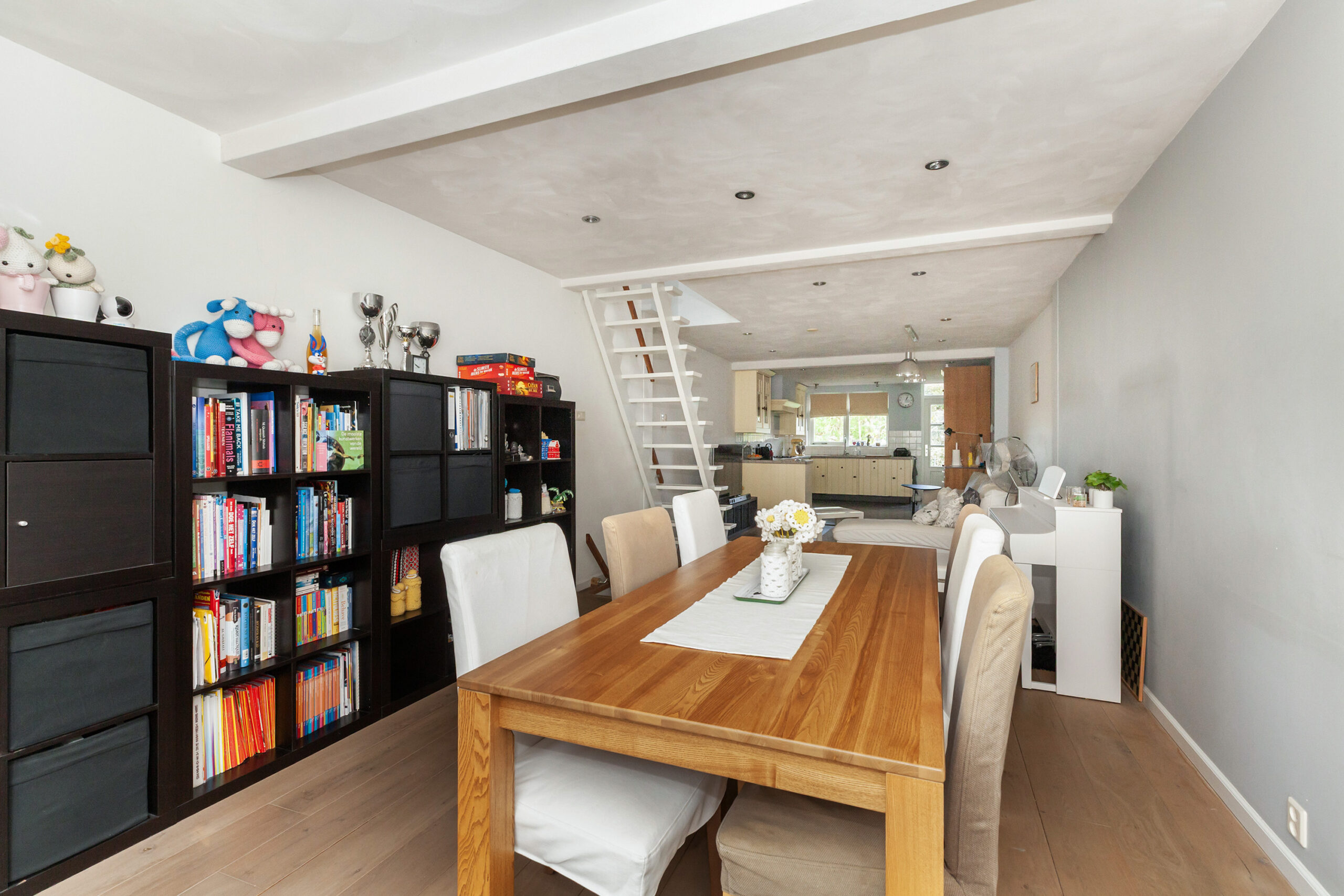 Home! Zodra u binnen bent krijgt u direct het gevoel van thuiskomen. De grote raampartijen met roede verdeling geven u volop licht binnenshuis. De trappen brengen u naar de eerste verdieping en het onderhuis. Aan de achterzijde vloeit de kamer over in de keuken.