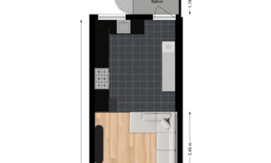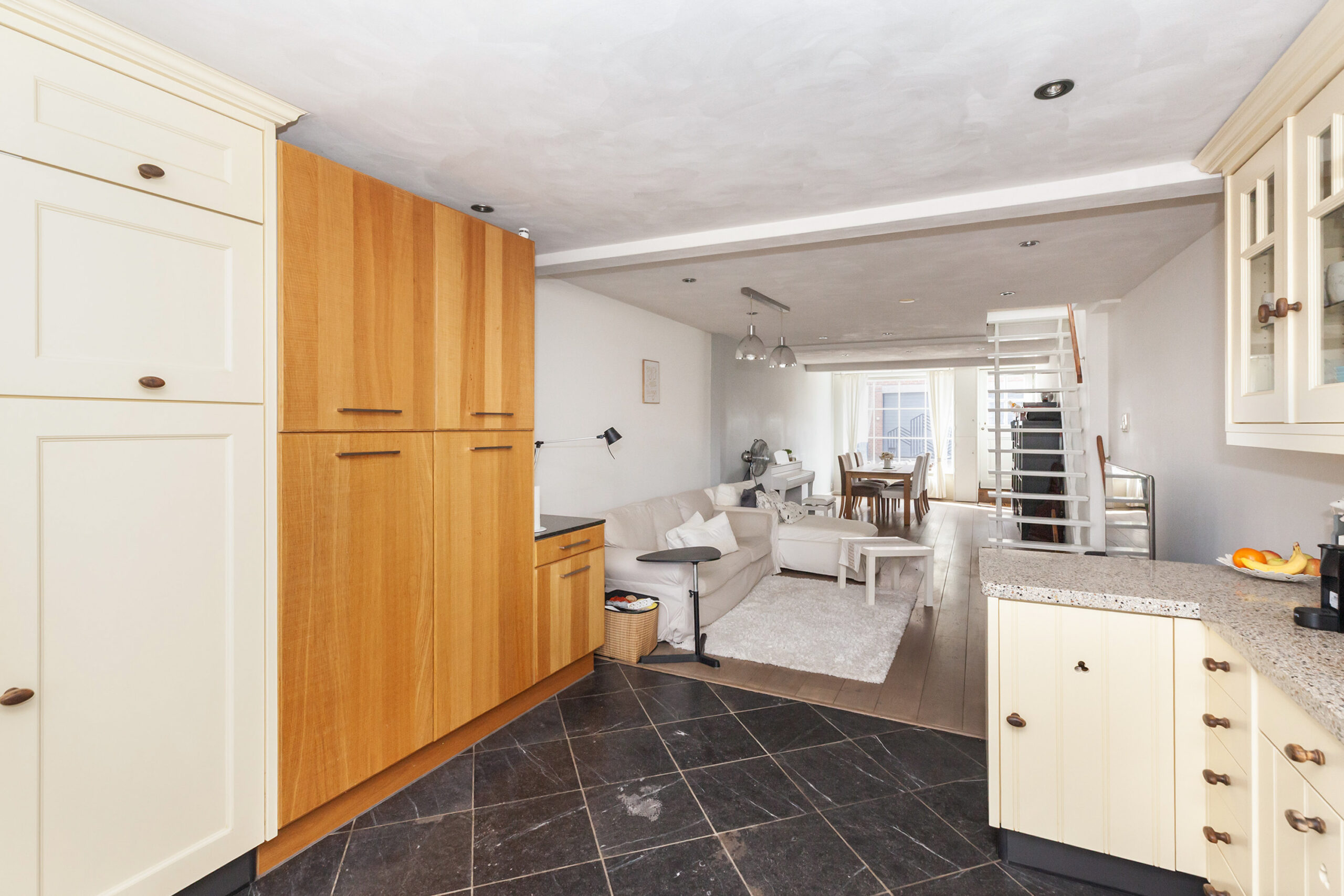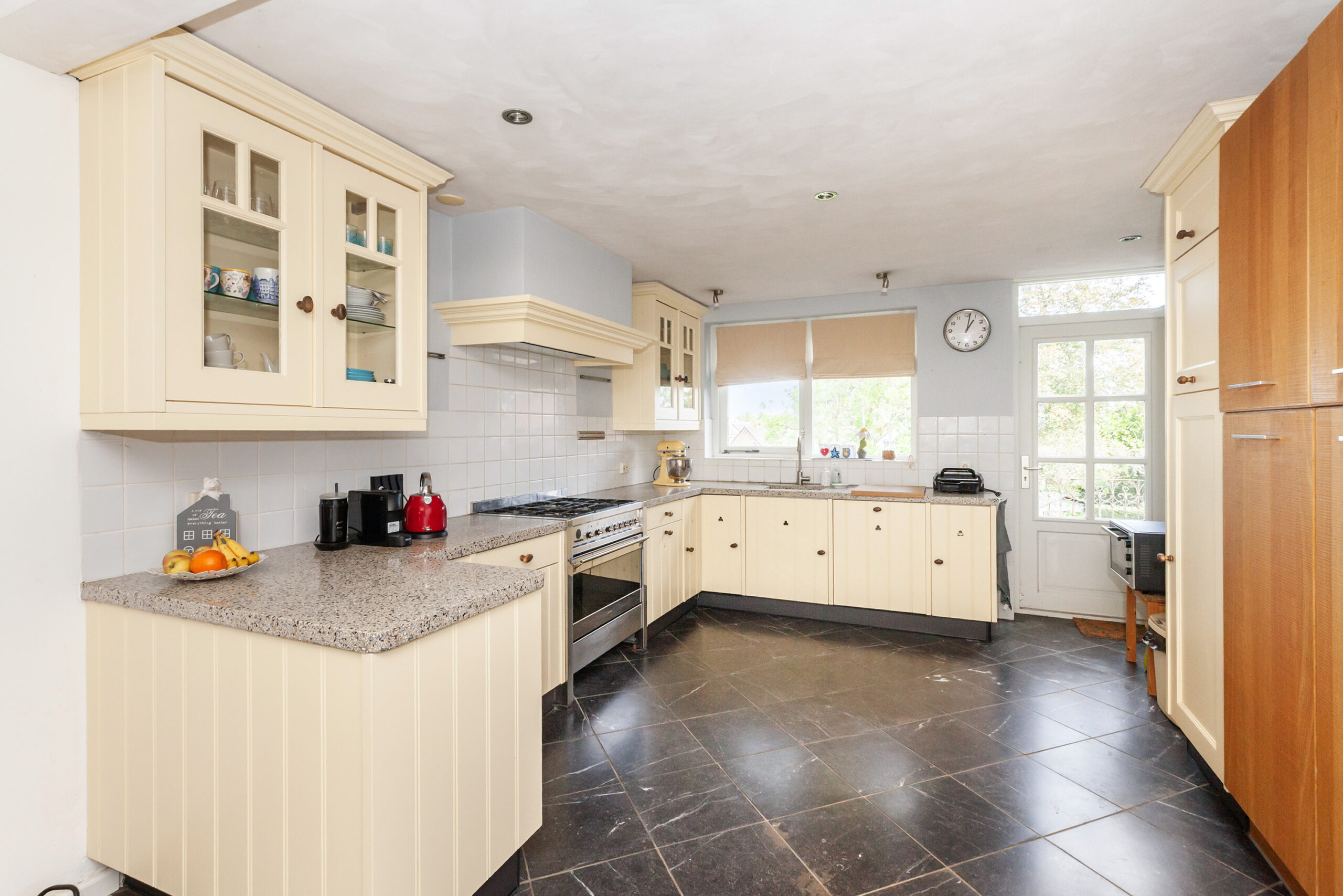 De keuken is aan de achterzijde gesitueerd en geeft leuk zicht over de tuin. Daarbij is er toegang tot het balkon van circa 2.15 x 1.19m. Aan de U-opstelling met graniet aanrechtblad kunt u heerlijk kokkerellen. Aan inbouwapparatuur is er een 6-pits gasfornuis, oven, afzuigkap, vaatwasser, magnetron en koelkast met vriesvak.