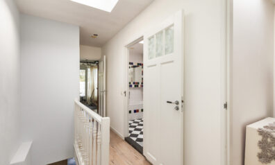 Doordat er een lichtkoepel is gevestigd in het plafond is het fijn licht. Vanaf de overloop komt u in de drie slaapkamers, badkamer en toiletruimte.
