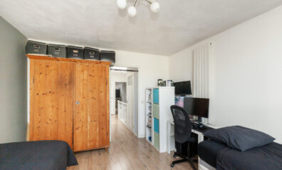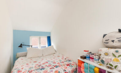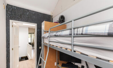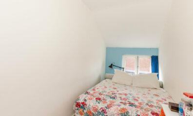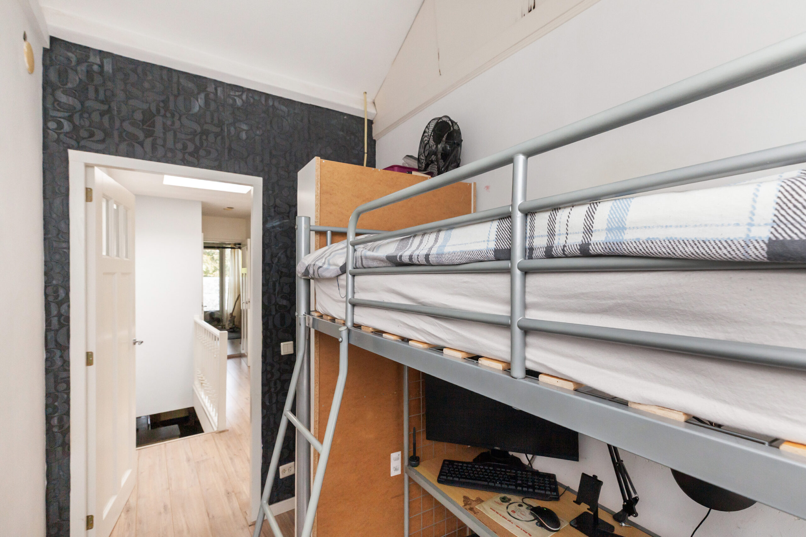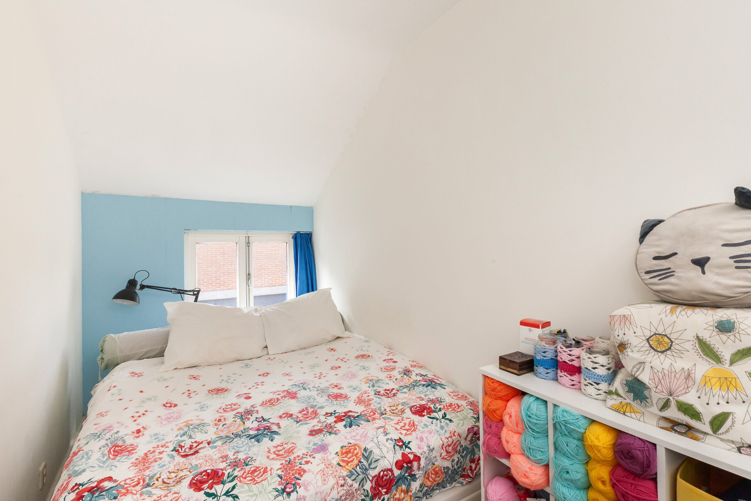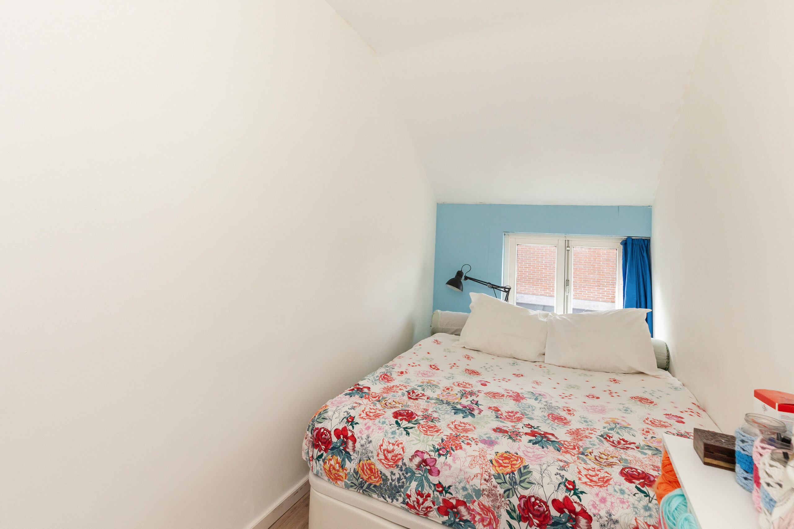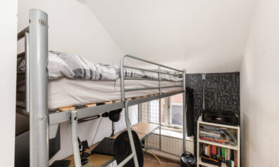 Ook deze slaapkamer is aan de voorzijde gesitueerd. Via het luik is de bergzolder boven slaapkamer II bereikbaar.