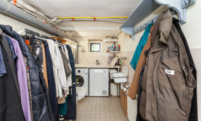 In wasruimte heeft u de aansluitingen voor uw wasapparatuur en er is een wasbakje.