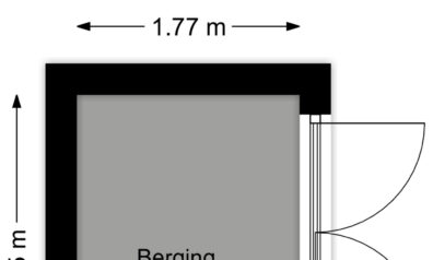 Achterin de tuin staat de houten berging van circa 2.75 x 1.77m. Loopt u langs de berging dan kunt u ook achterom komen.