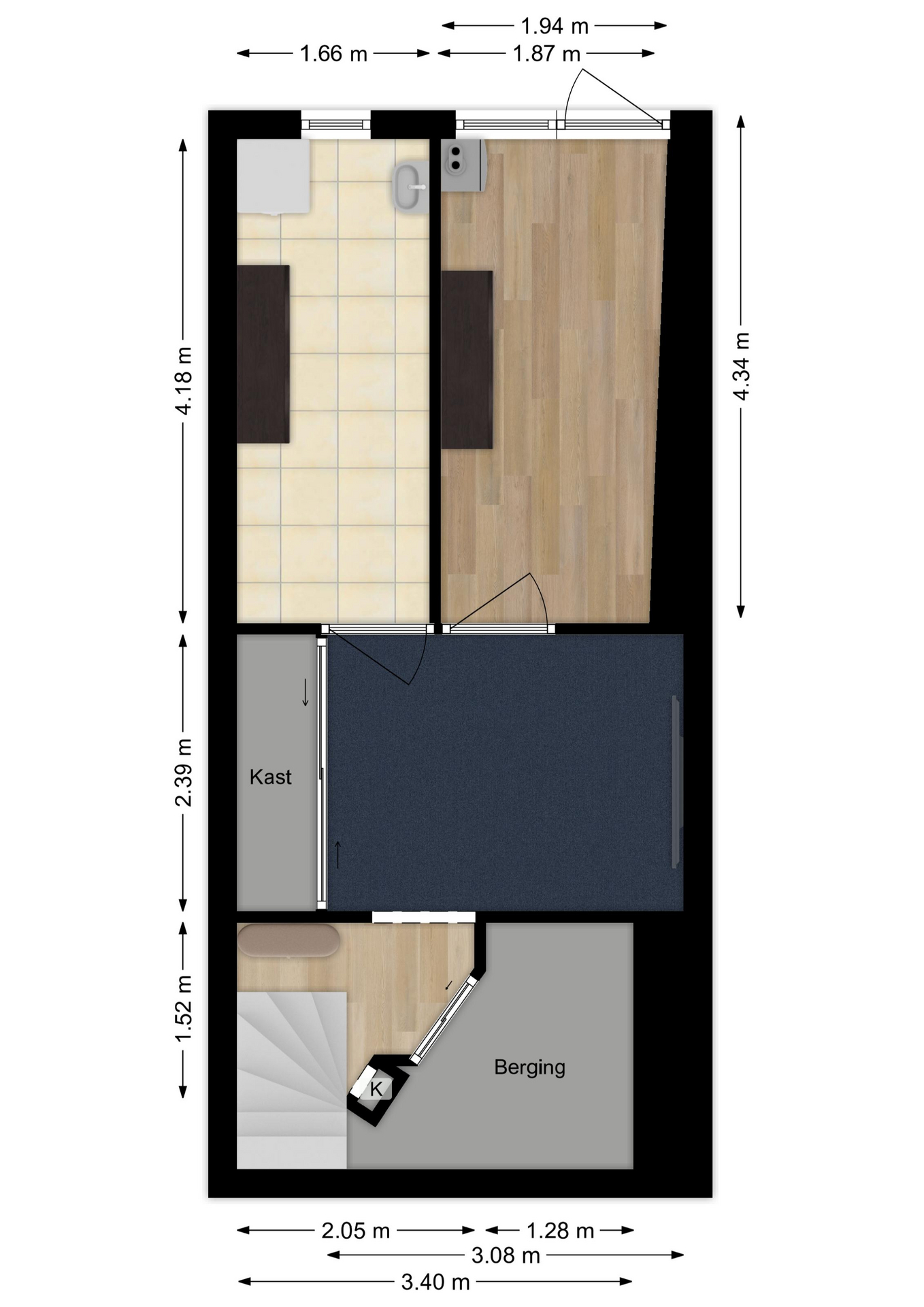 Maatvoering: Circa 4.34 x 1.94/1.87m