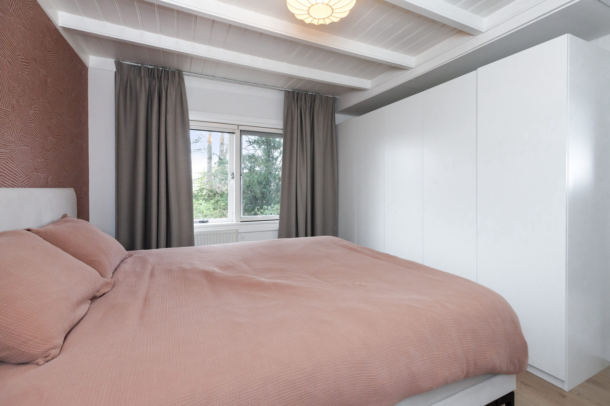 Eveneens aan de achterzijde is ook deze derde slaapkamer, welke toegang geeft tot het platte dak van de aanbouw.
