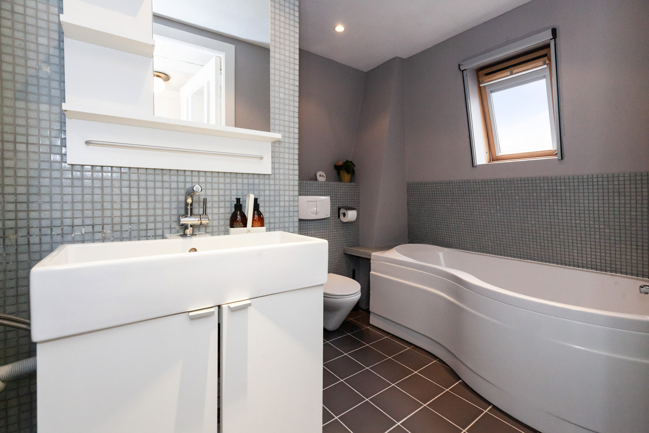 Nette toiletruimte voorzien van een vrijhangend closet.