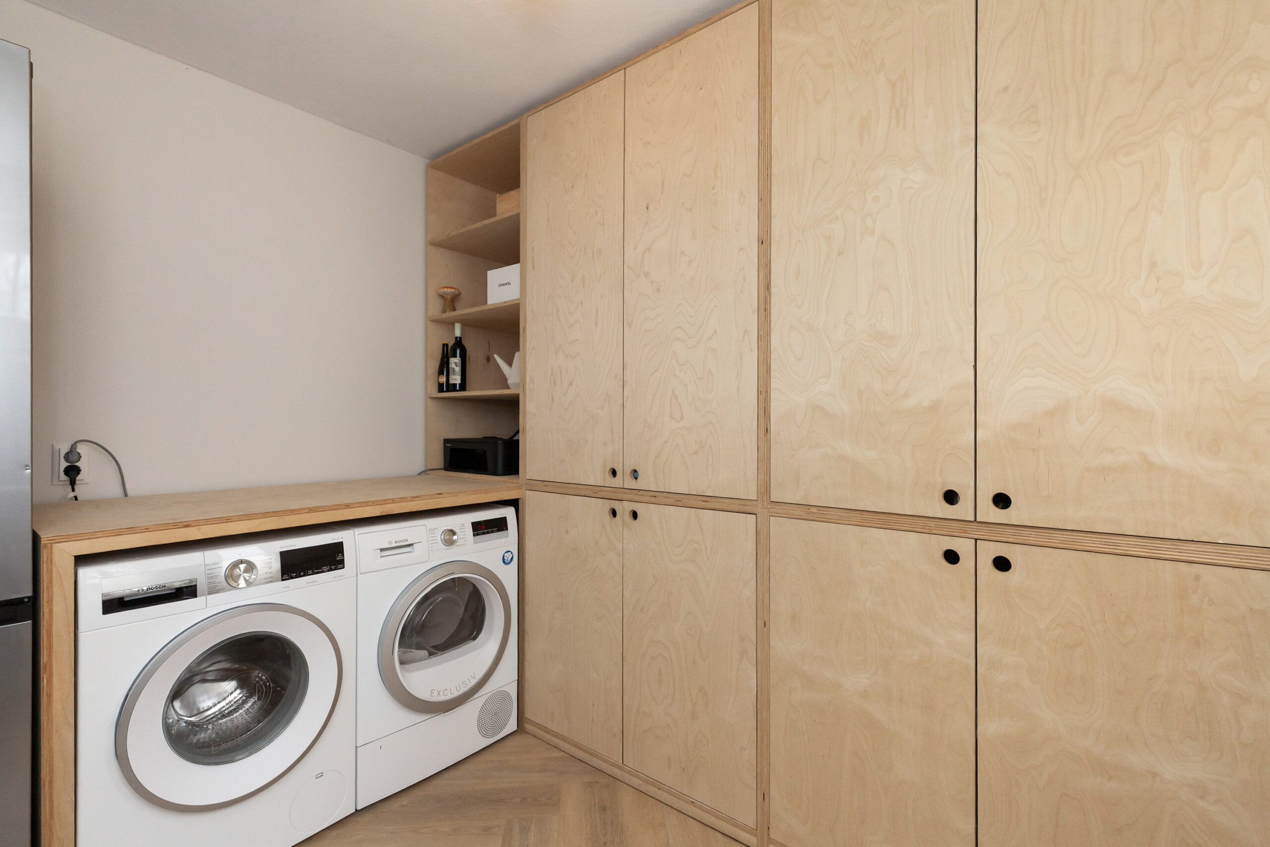 De bijkeuken geeft u veel praktisch gemak doordat er grote kasten staan en de aansluitingen hier zijn voor uw wasapparatuur. Tevens heeft u ook de buitendeur naar de tuin.