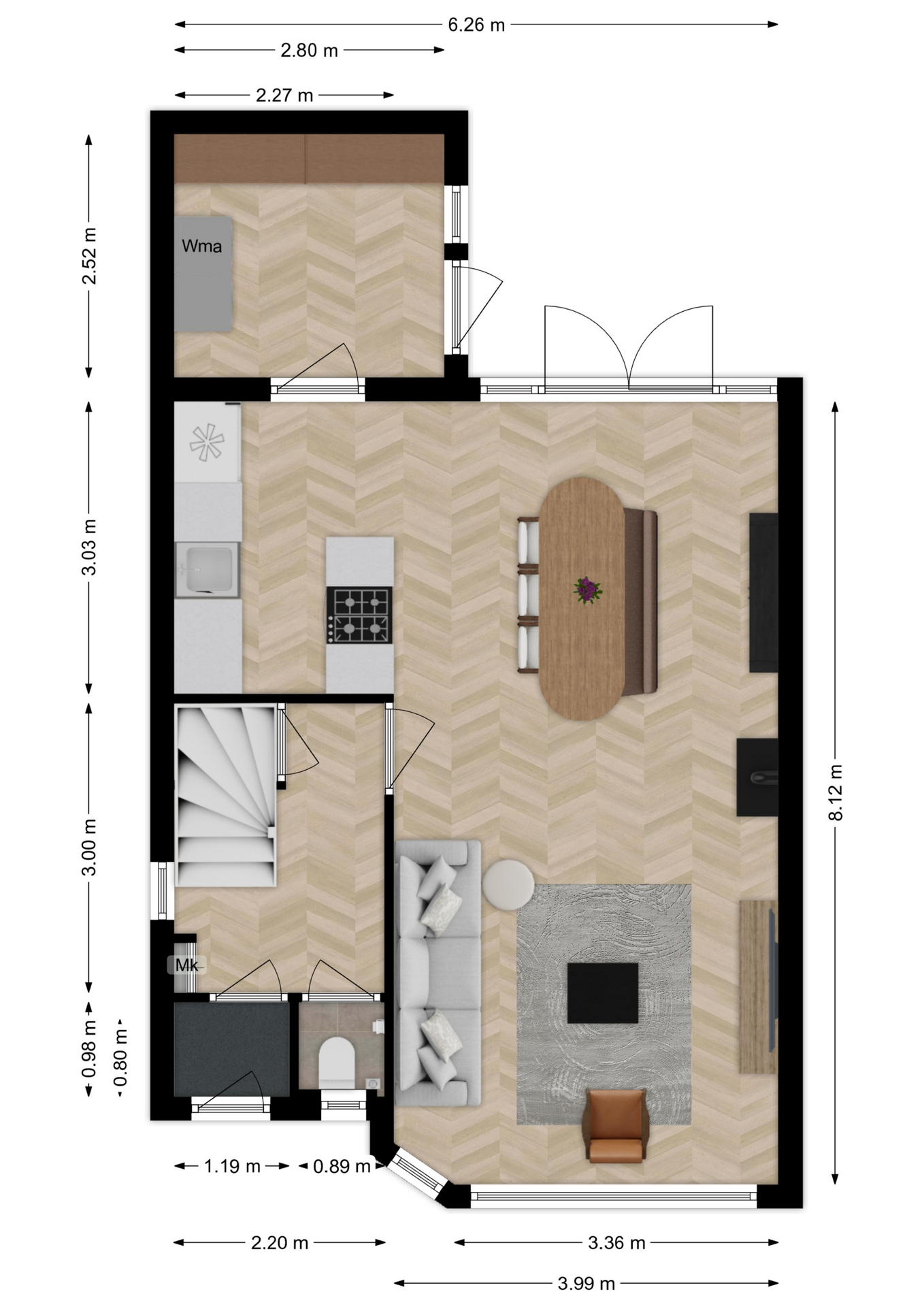 Maatvoering: Circa 8.12 x 3.99/3.36m