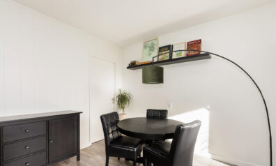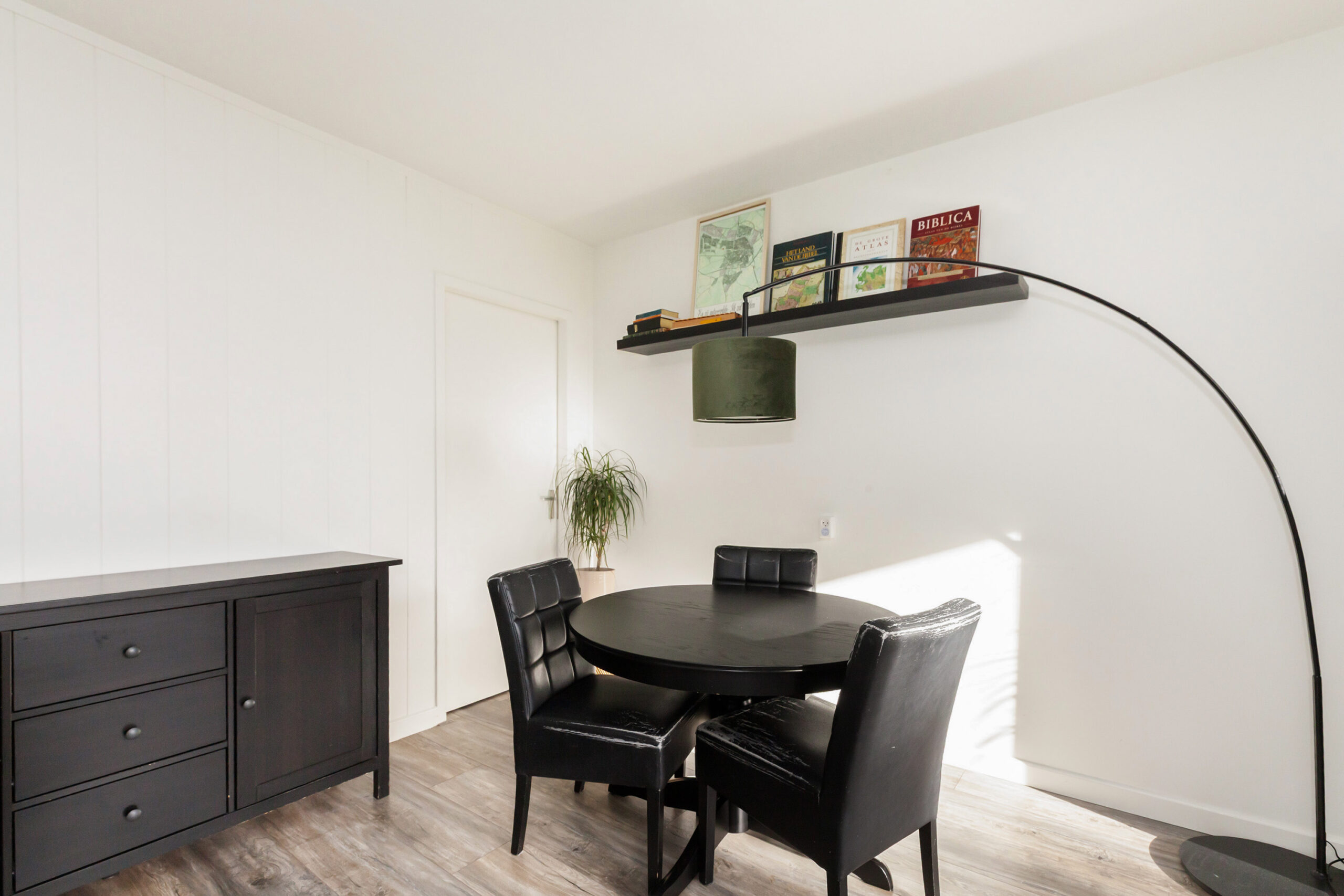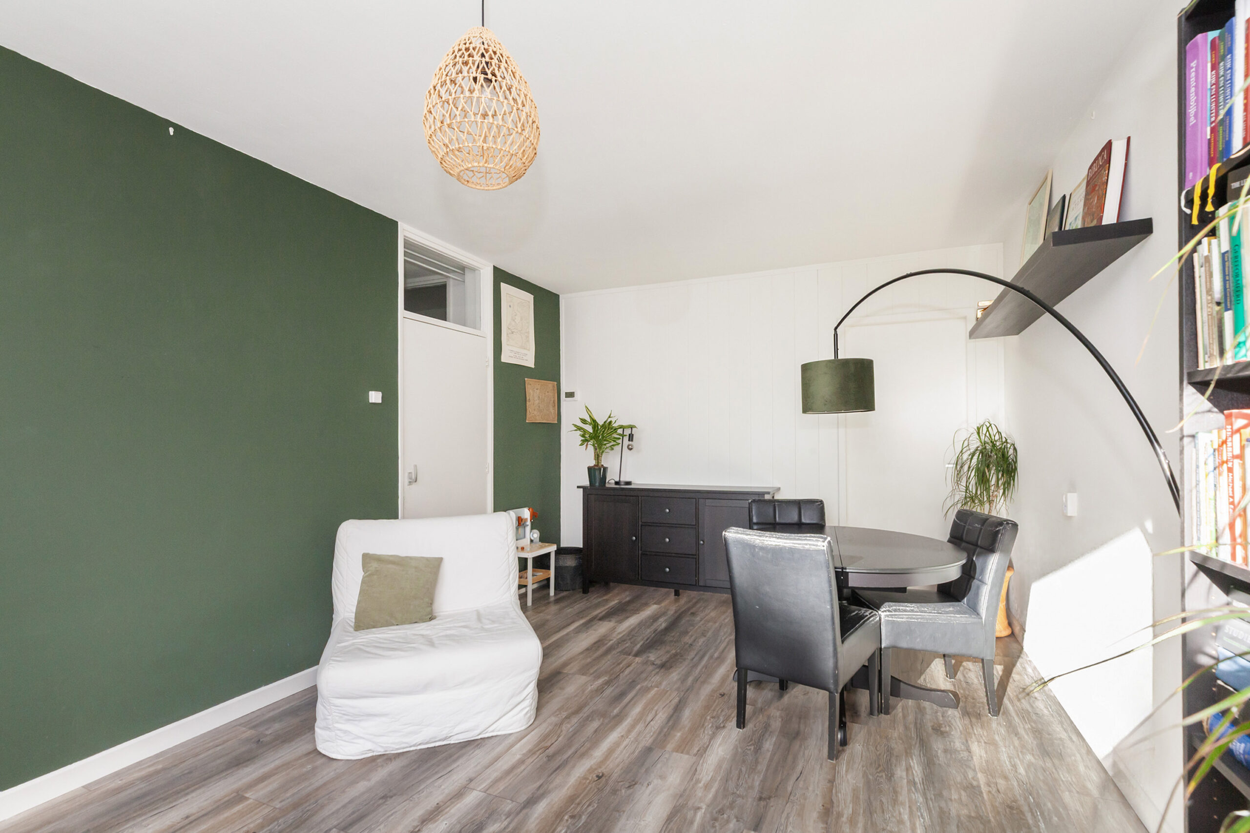 De woonkamer is knus en huiselijk ingericht. U kunt deze gemakkelijk indelen met een zit- en eethoek. Vanuit de woonkamer kunt u naar de achtergelegen slaapkamer.