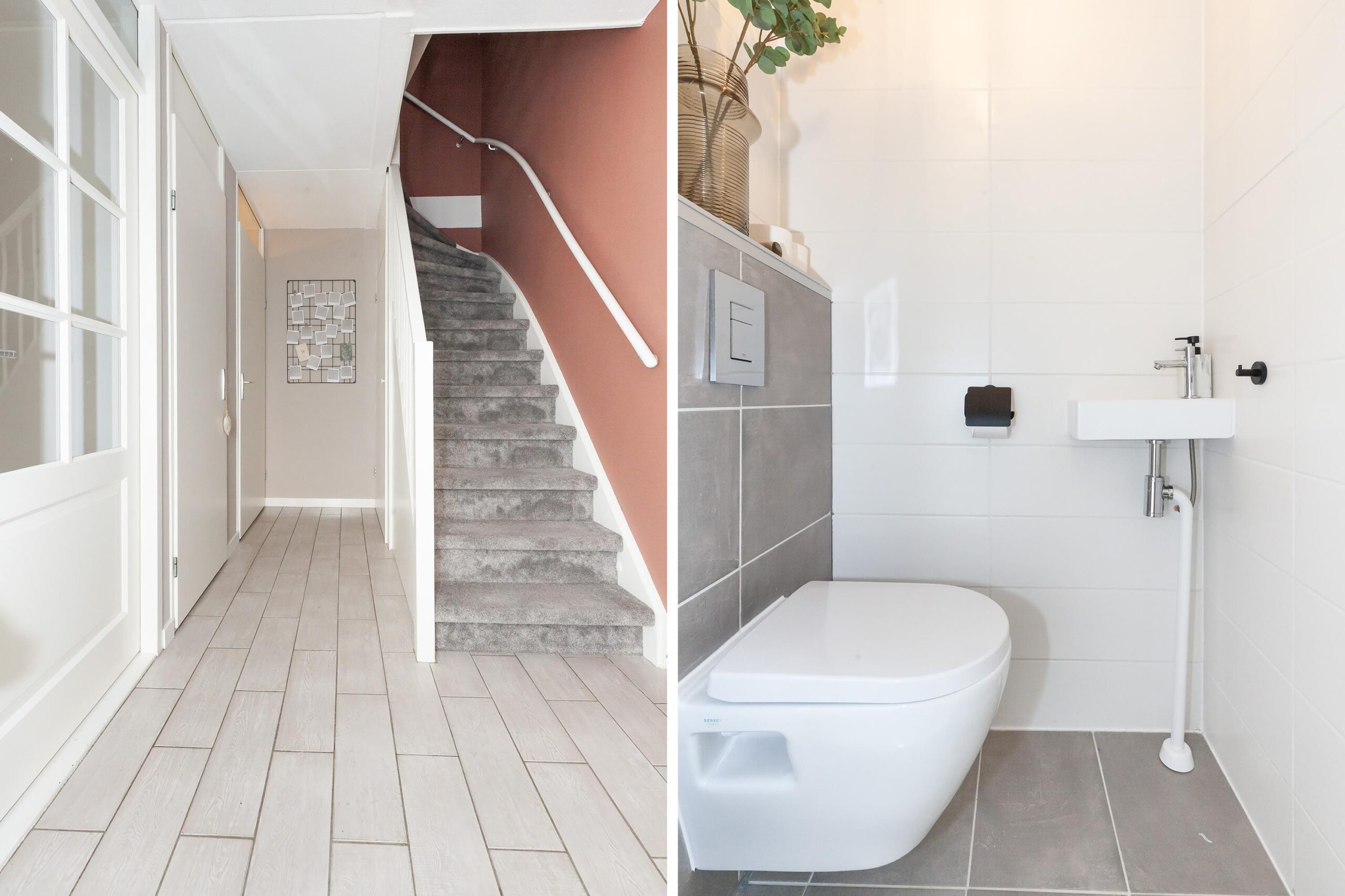 U zult al snel merken bij binnenkomst dat alle vertrekken ruim en licht zijn, zo ook in de hal. Aan de rechterzijde heeft u de meterkast en loopt u verder langs de trap dan heeft u de C.V.-kast en de toiletruimte. Tevens is er vanuit de hal toegang tot de woonkeuken.