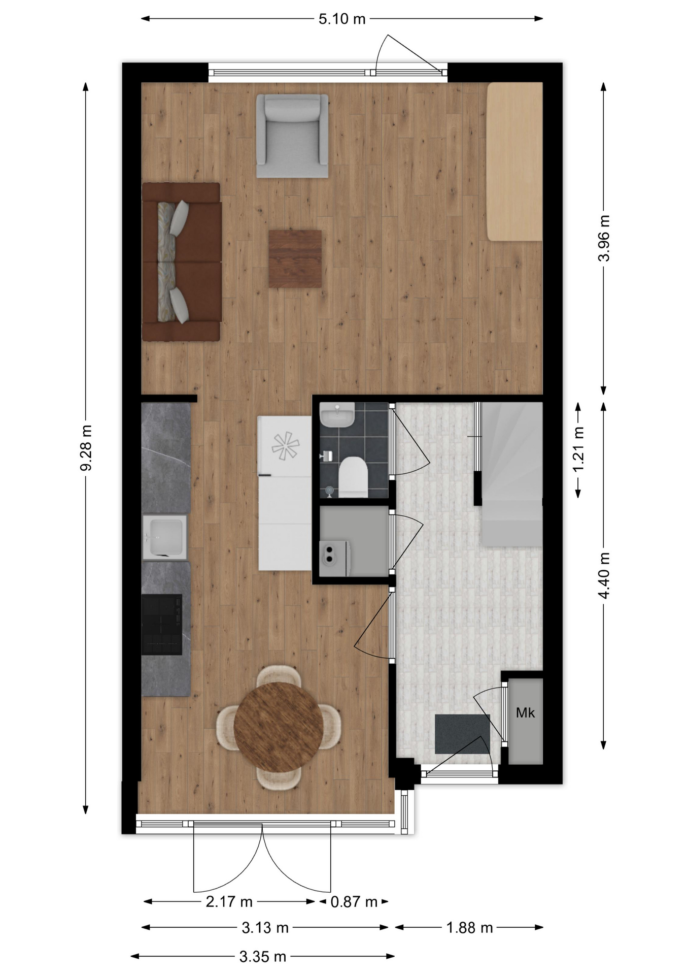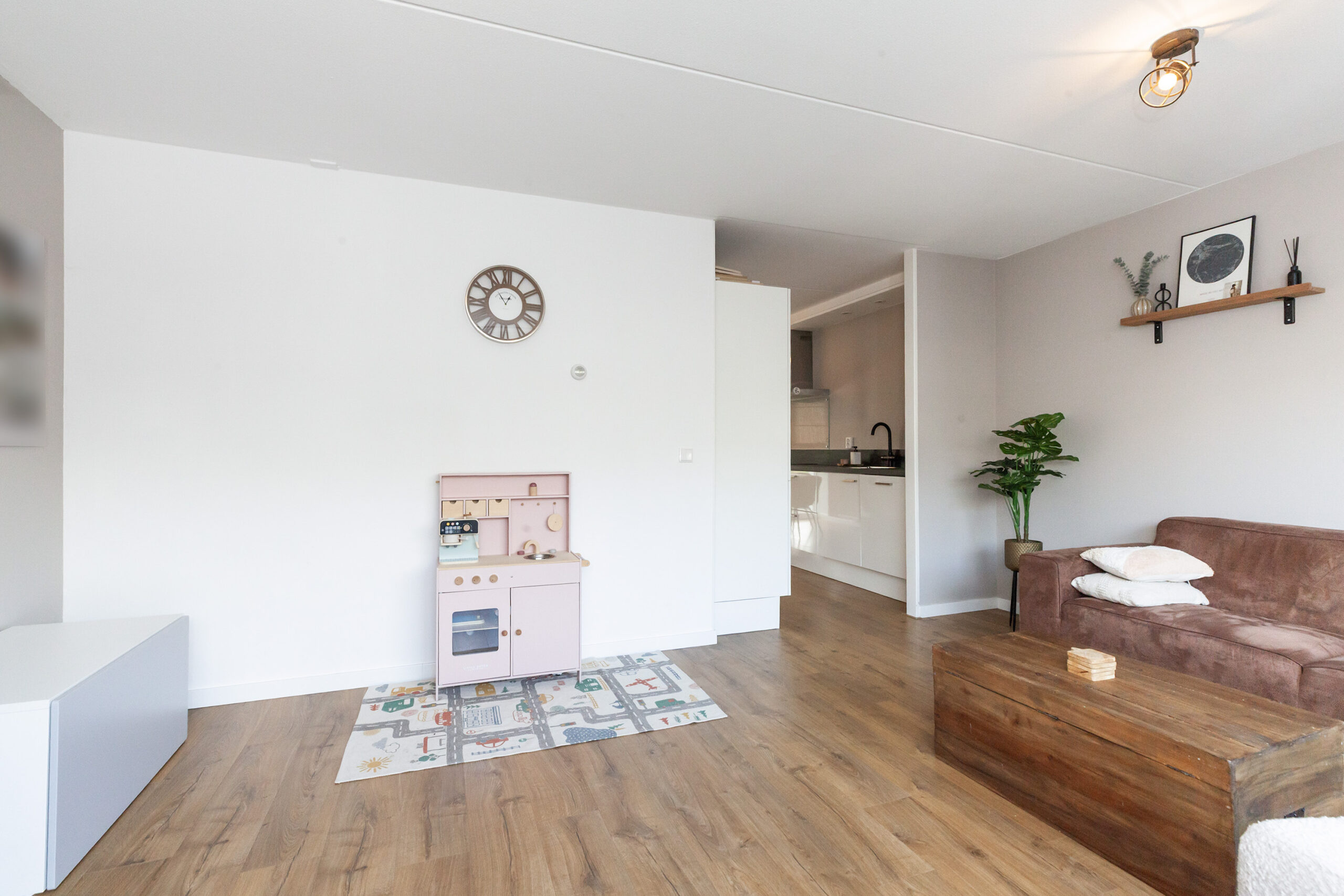 De woonkamer is tuingericht en praktisch in te delen. Ook hier geniet u van een prettig lichtinval door het grote raam. Via de achterdeur kunt u naar de tuin.