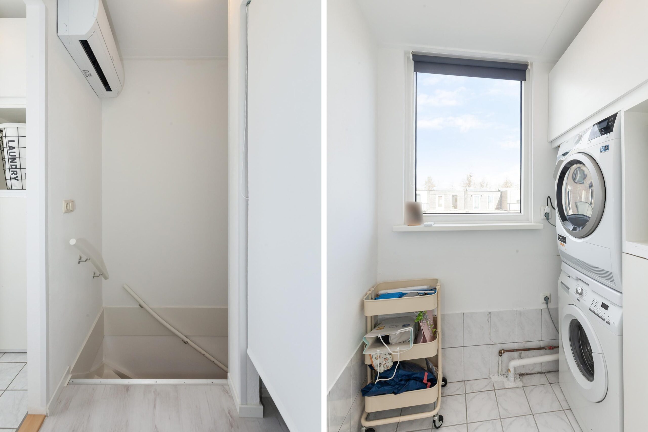 Vanaf de overloop is er een open toegang tot de wasruimte, slaapkamer en een inloopkast. Tevens hangt er een airco waar u op zowel deze, als de eerste verdieping veel plezier van zult hebben.