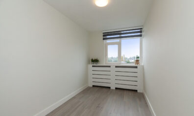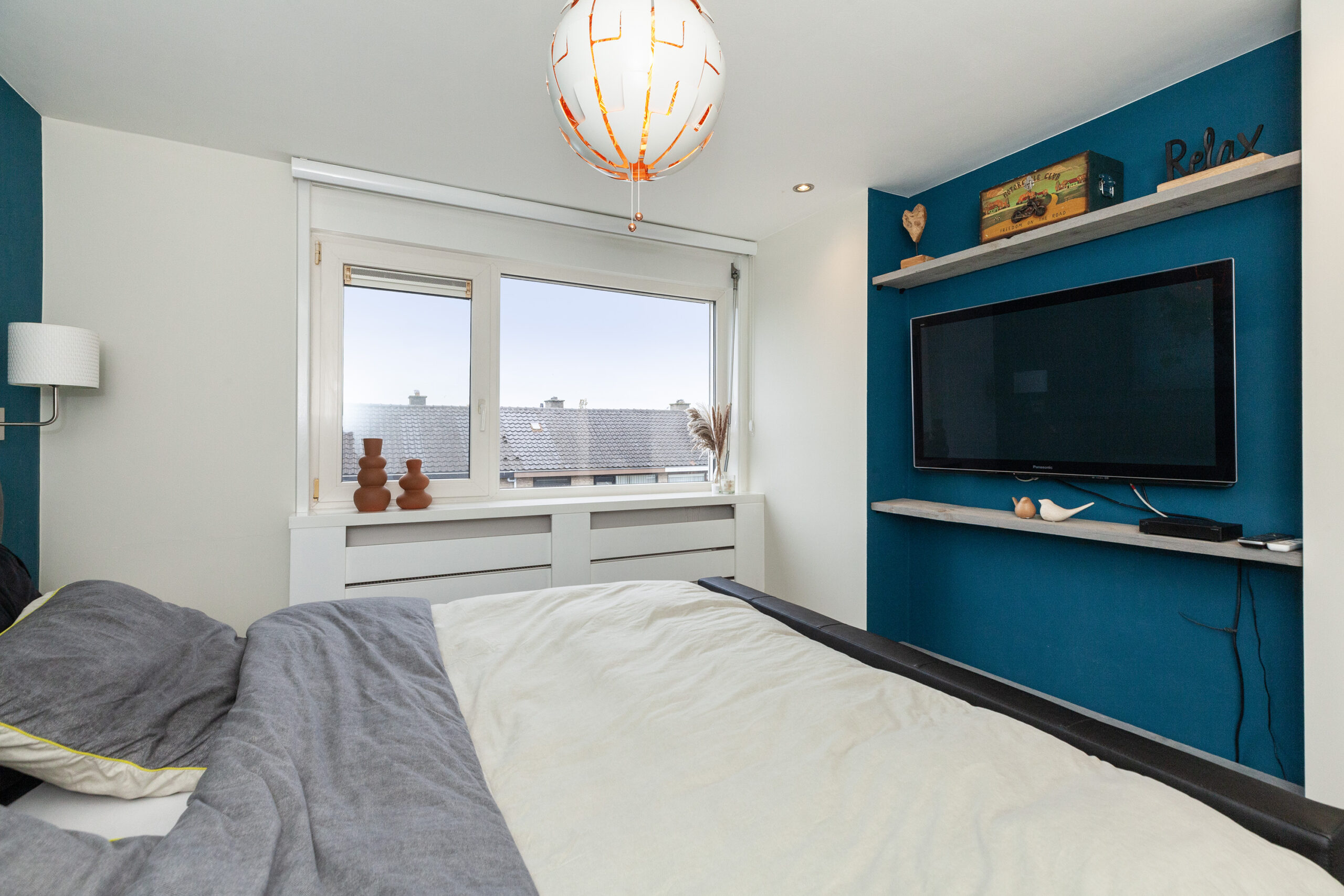 De zogeheten (ouder) slaapkamer bevindt zich aan de voorzijde. Een ruime kamer met een praktische nis voor bijvoorbeeld een tv-meubel.